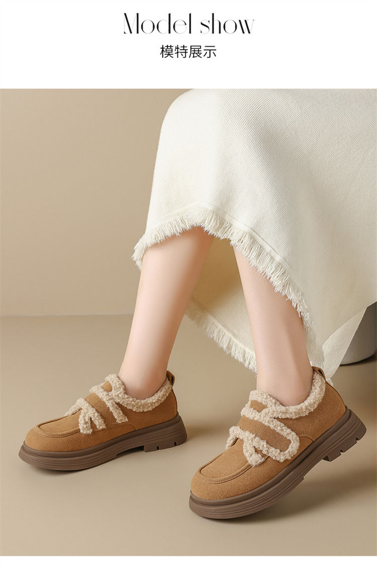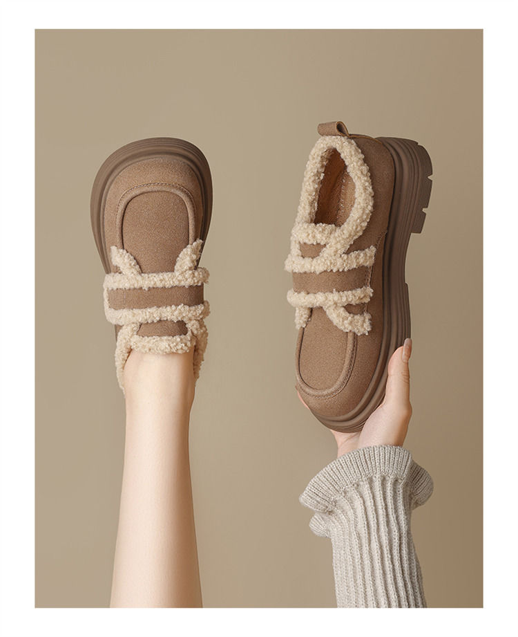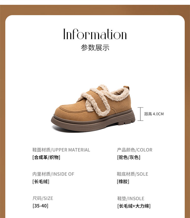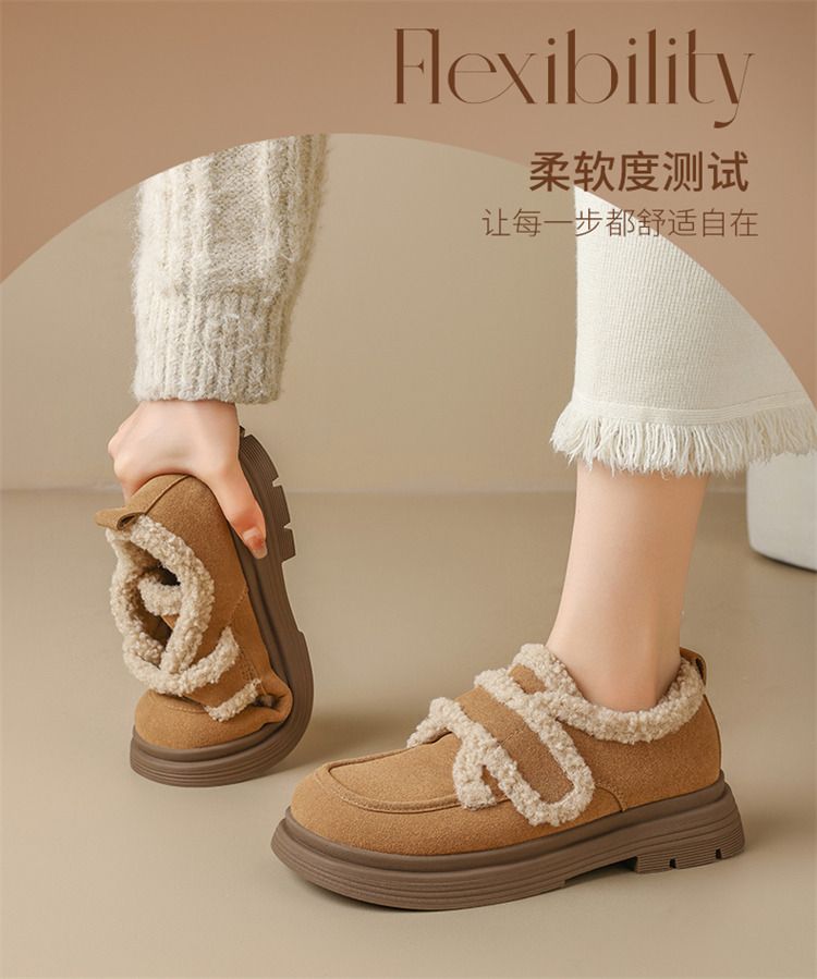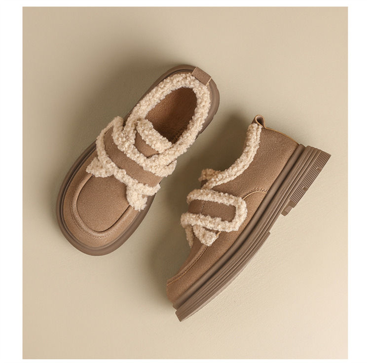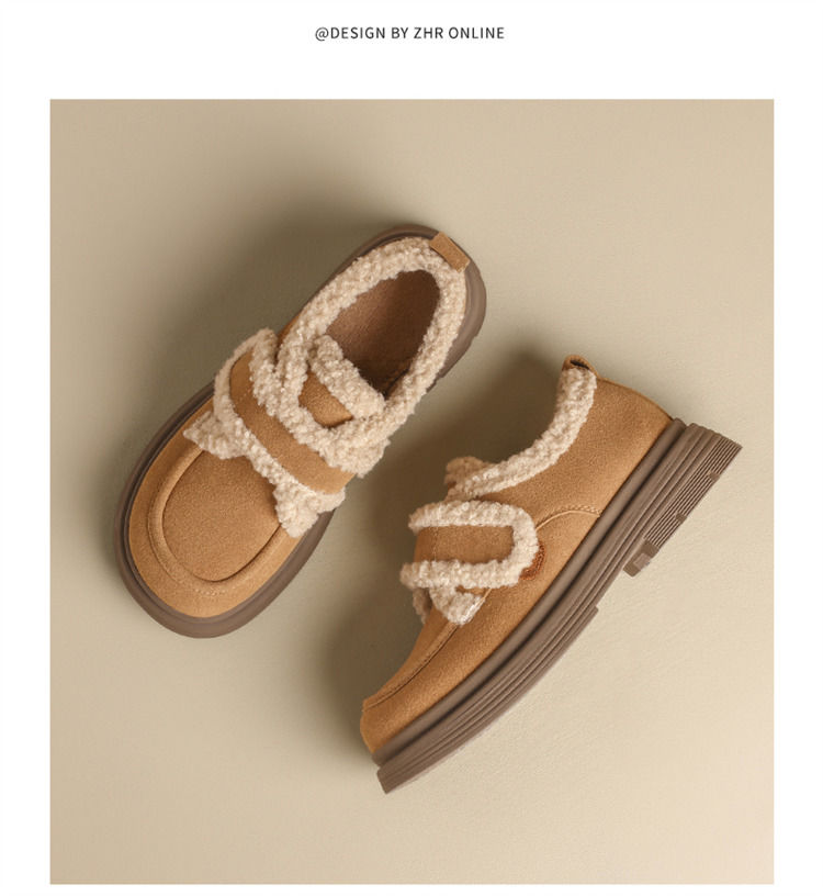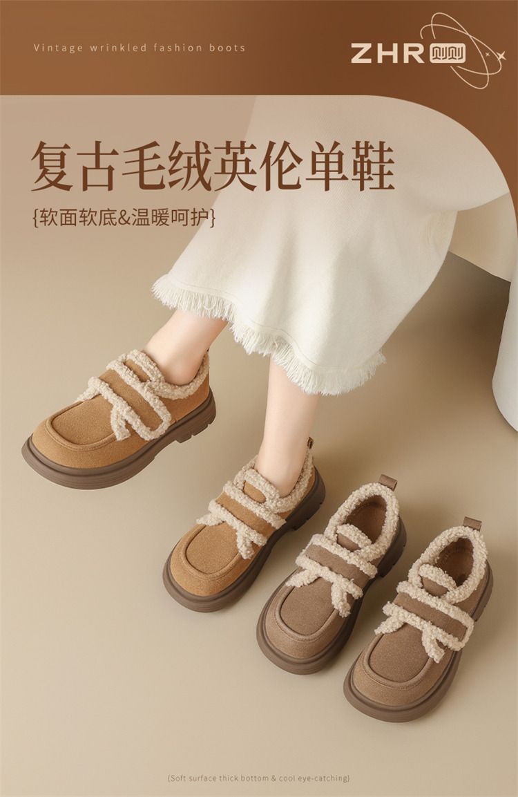 ZHR则则洋气保暖乐福鞋2024新款平底棉鞋美拉德加绒勃肯鞋毛毛鞋