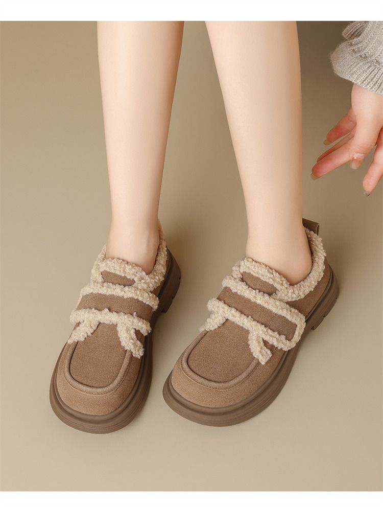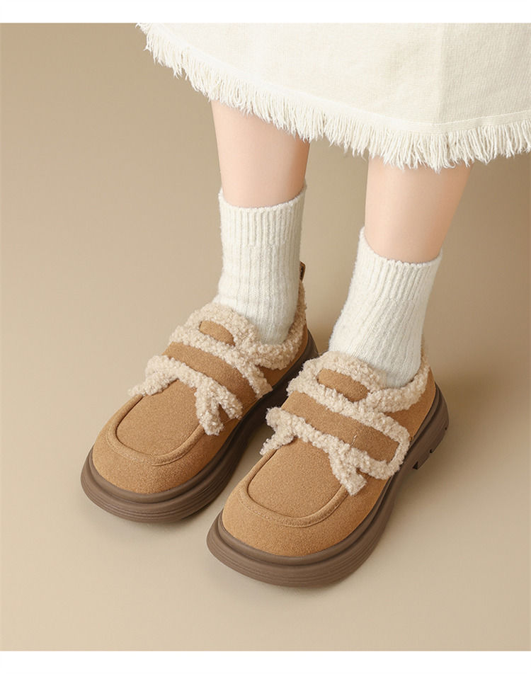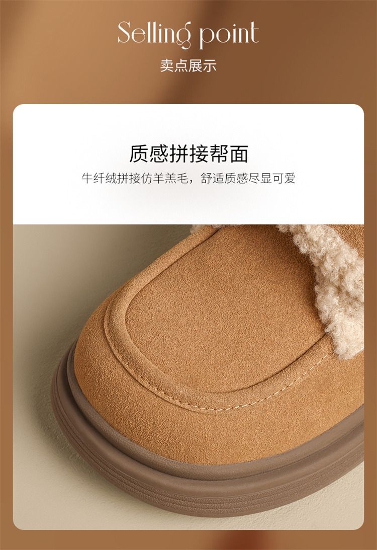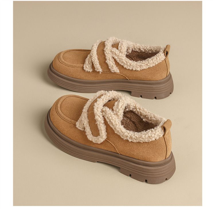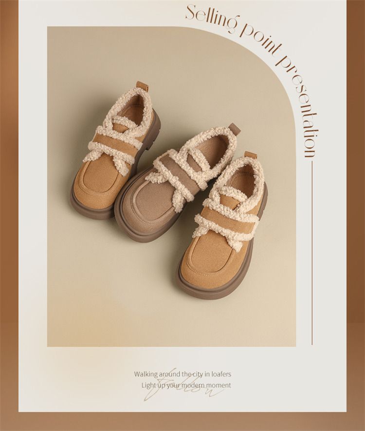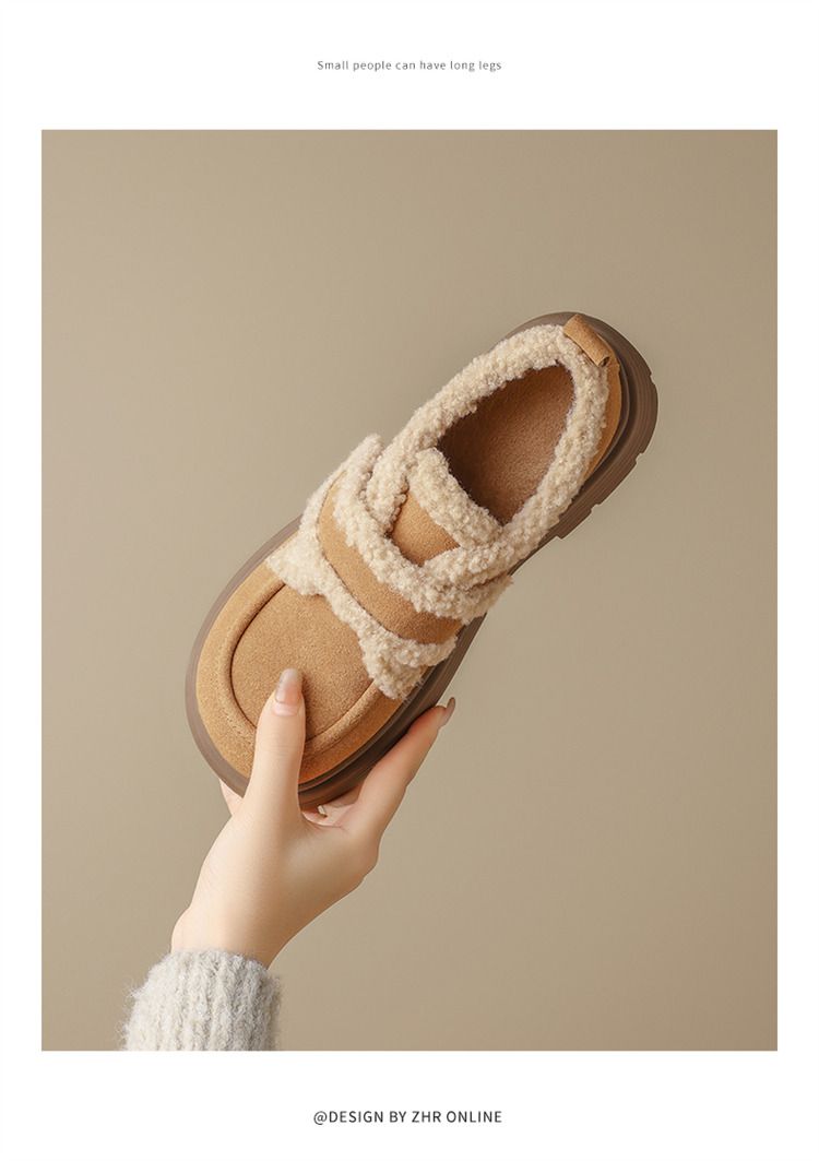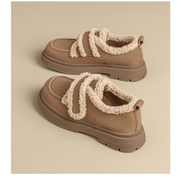 ZHR则则洋气保暖乐福鞋2024新款平底棉鞋美拉德加绒勃肯鞋毛毛鞋