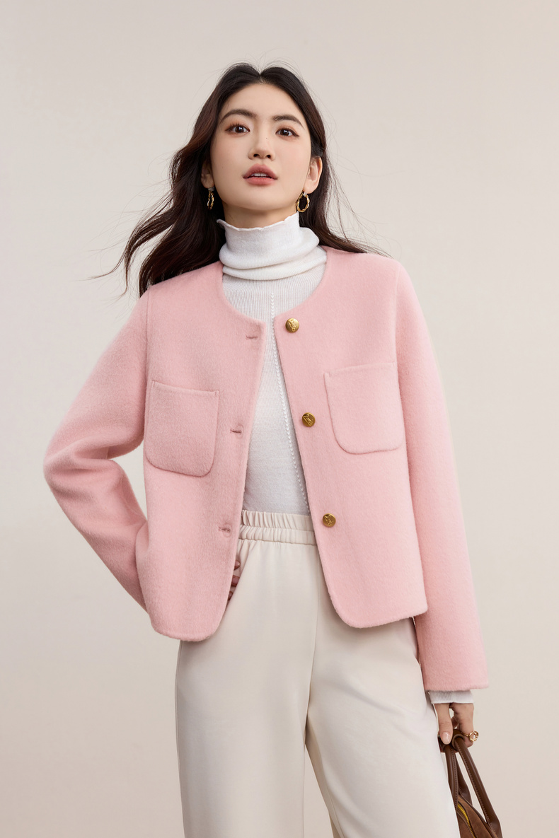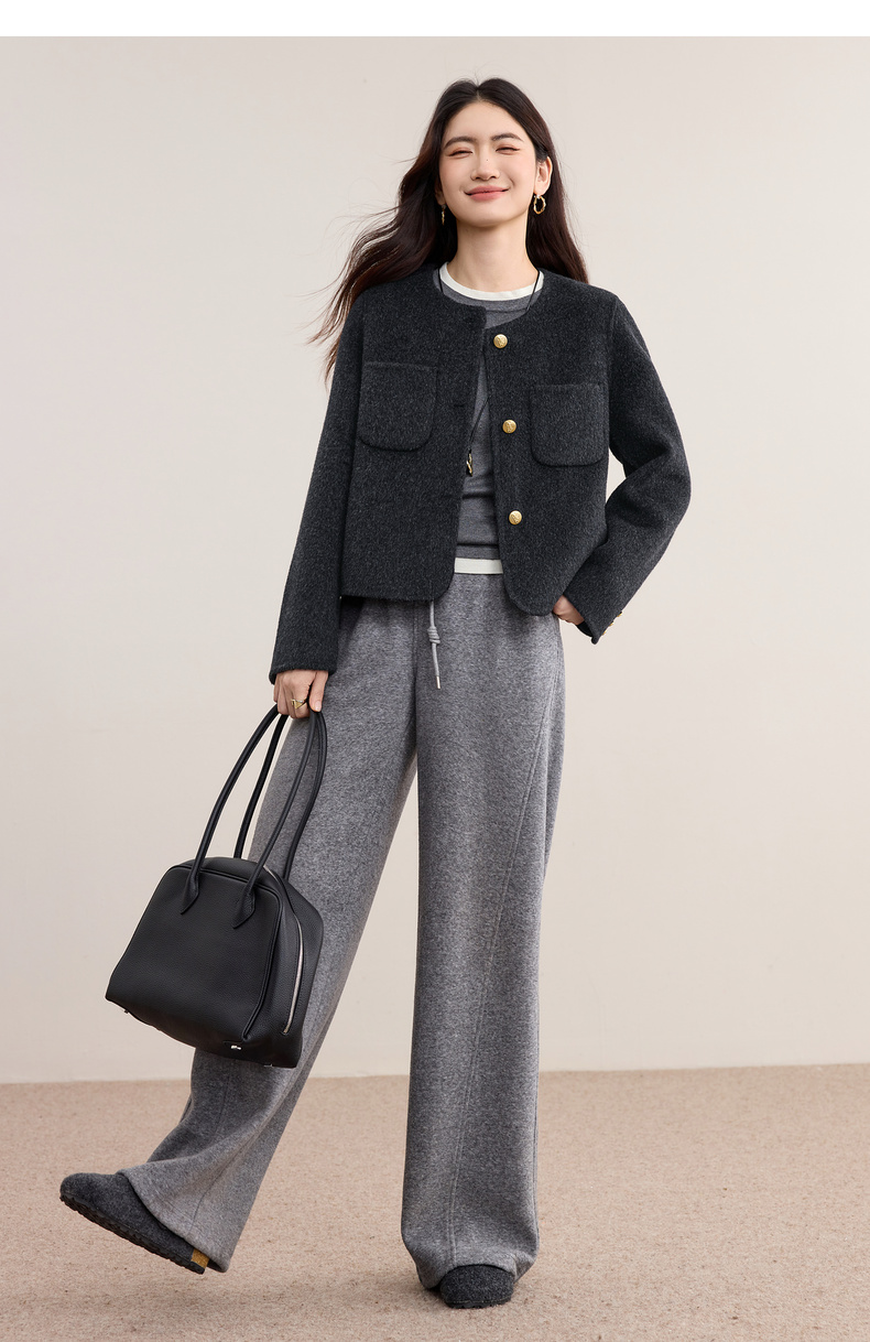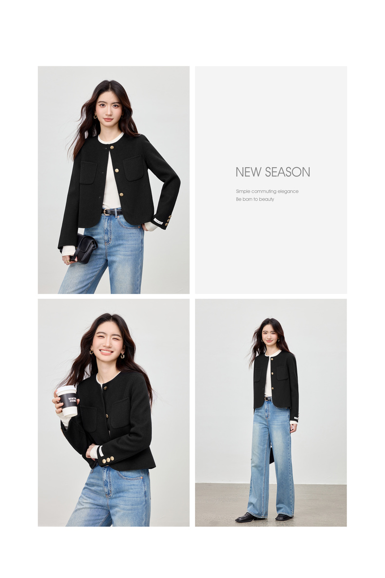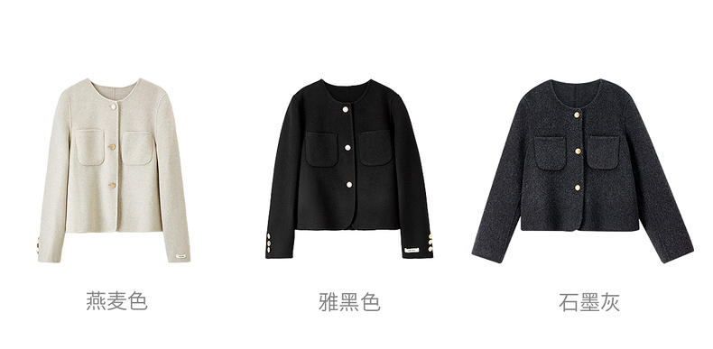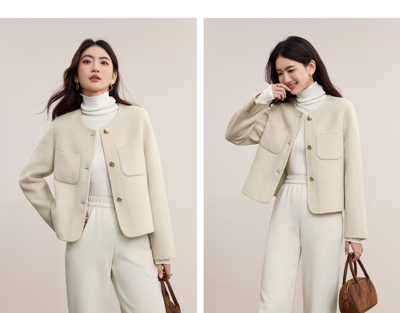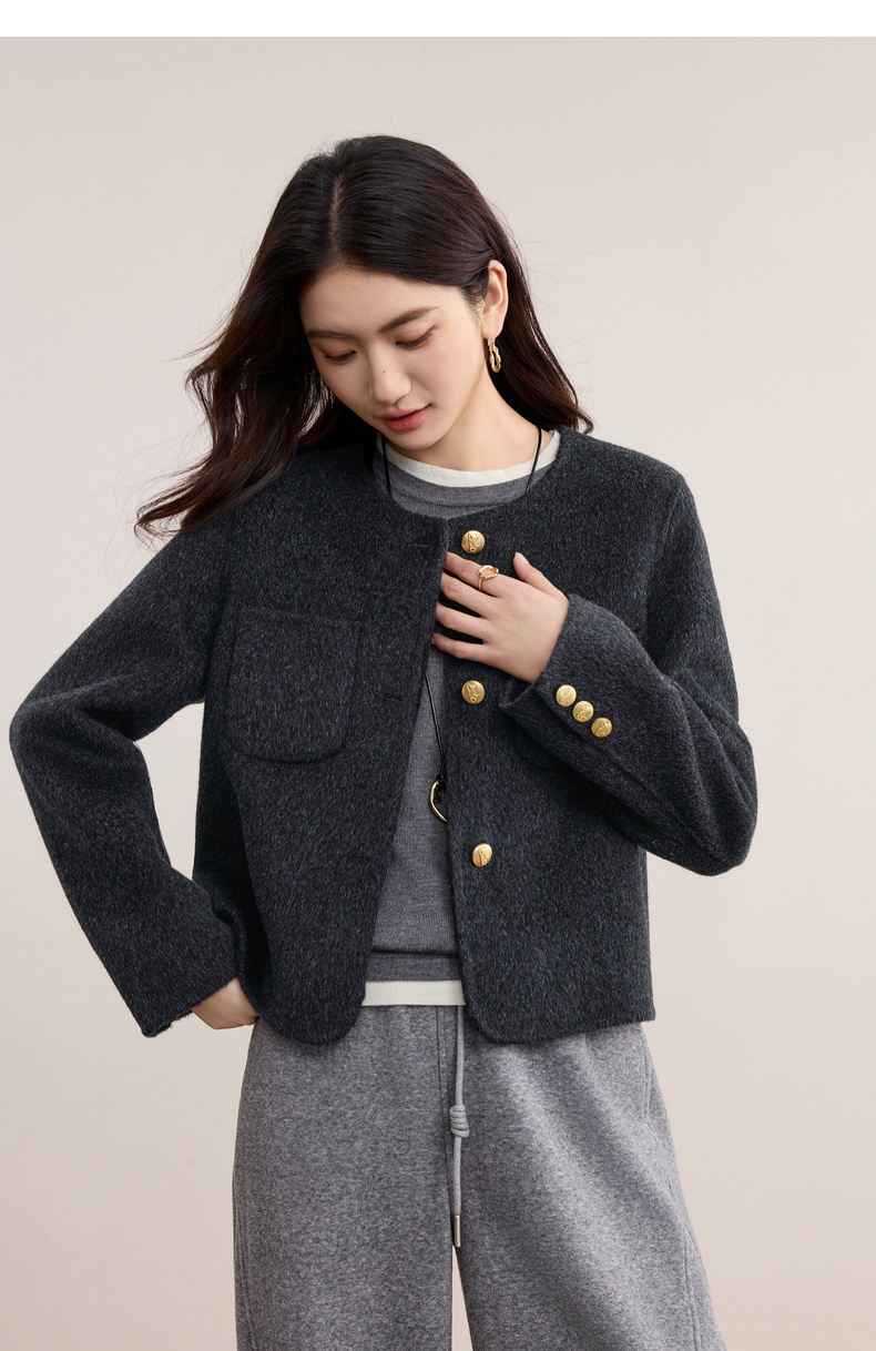 【内购】【100%绵羊毛】小个子通勤圆领金属扣合身保暖厚双面呢外套-W54OG3300X