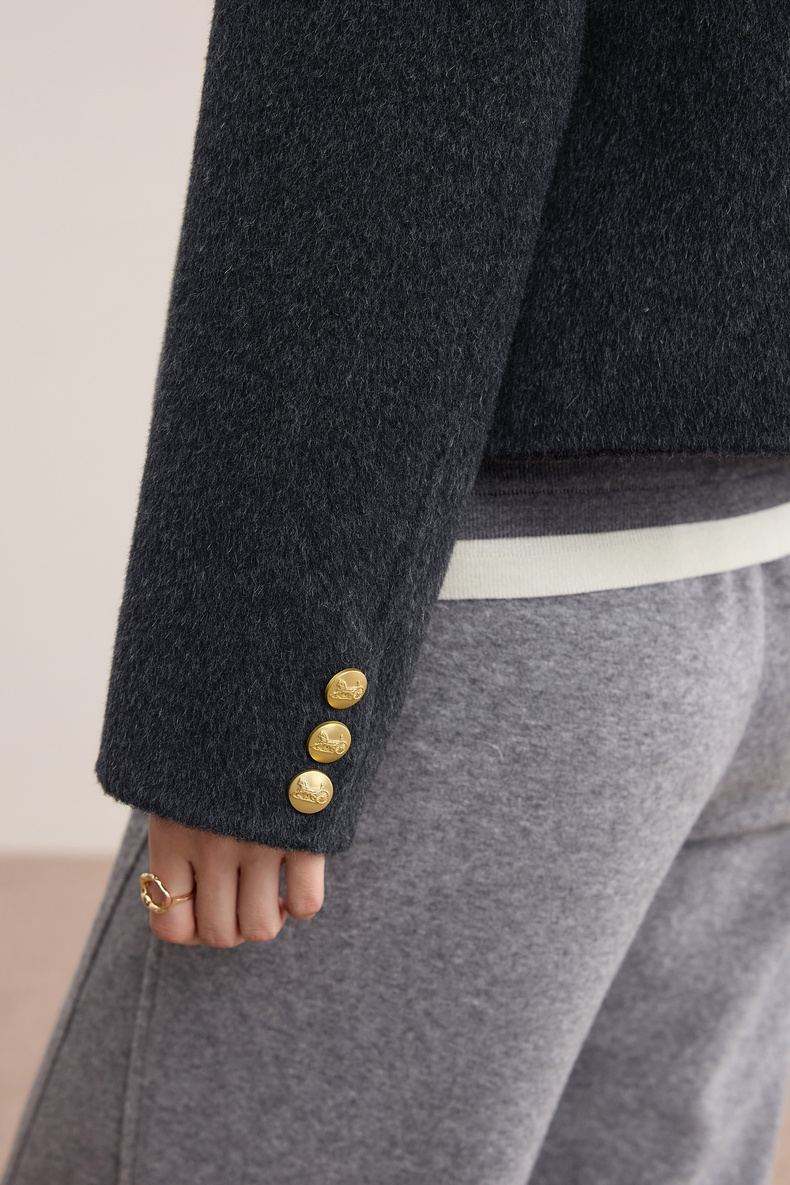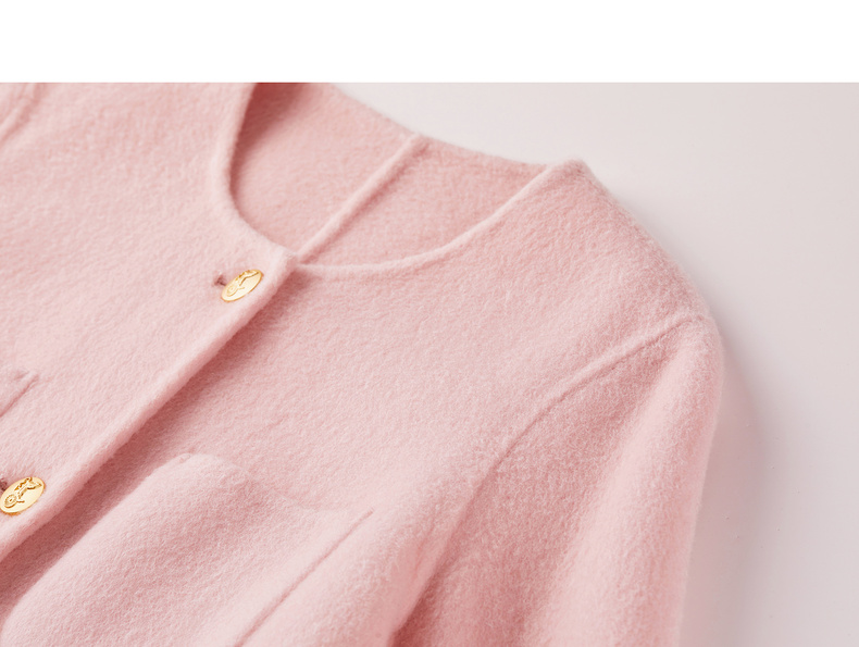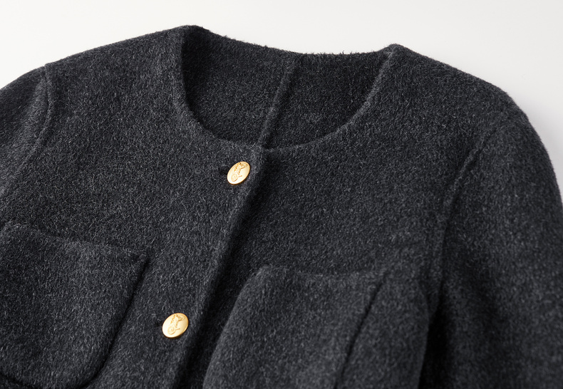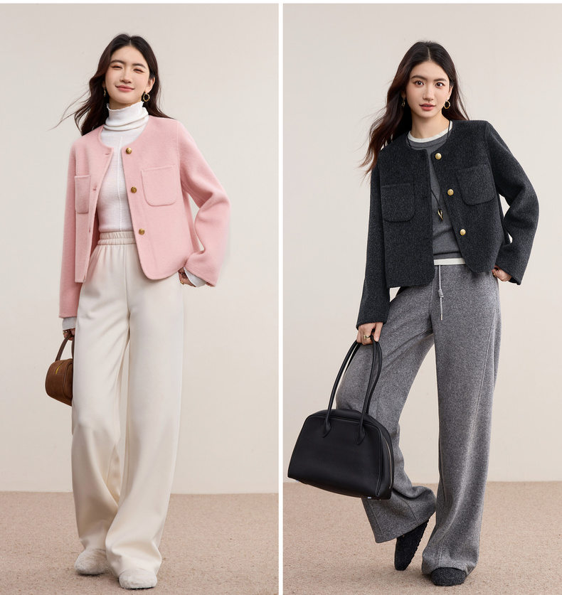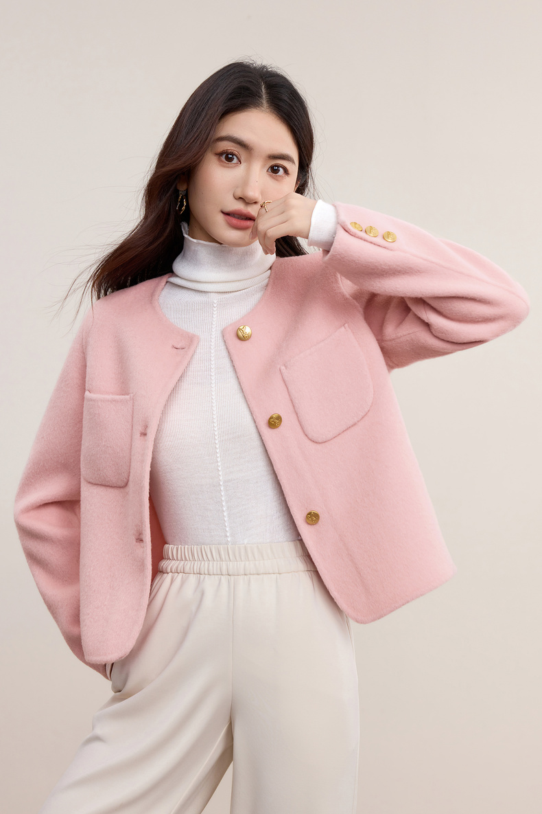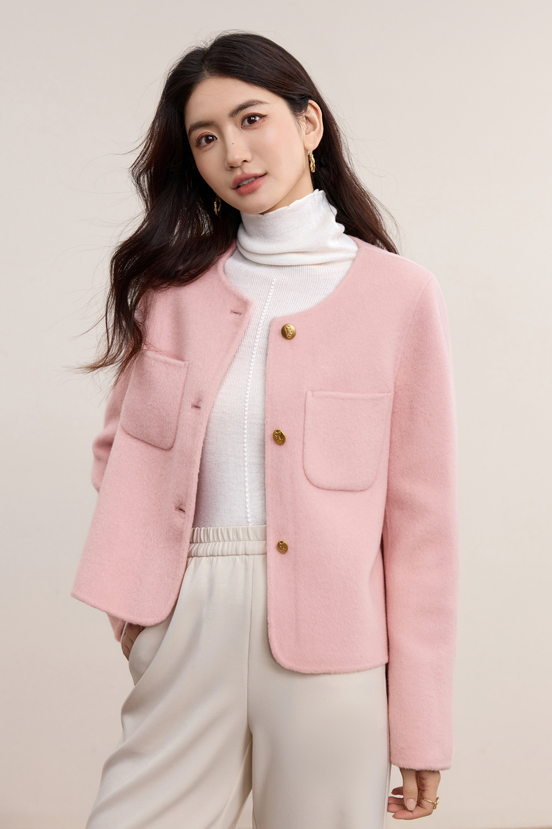 【内购】【100%绵羊毛】小个子通勤圆领金属扣合身保暖厚双面呢外套-W54OG3300X