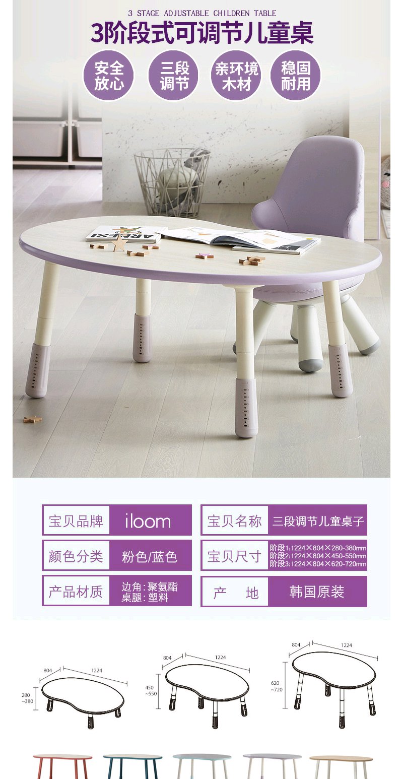 iloom韩国进口儿童学习桌(大花生)