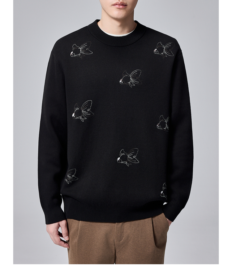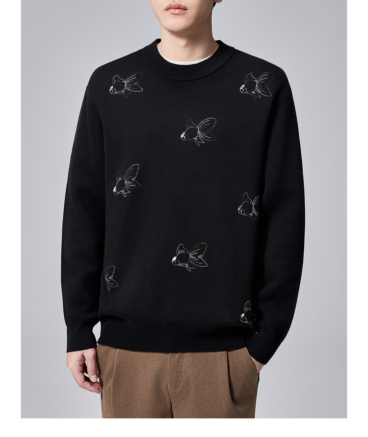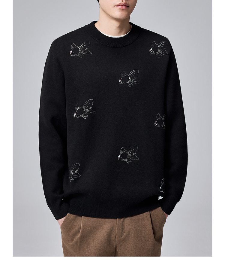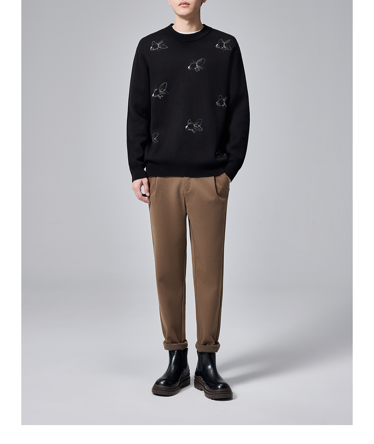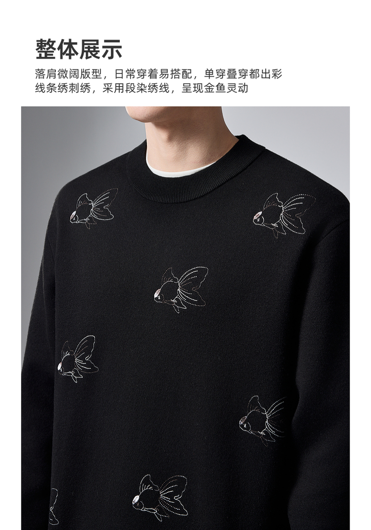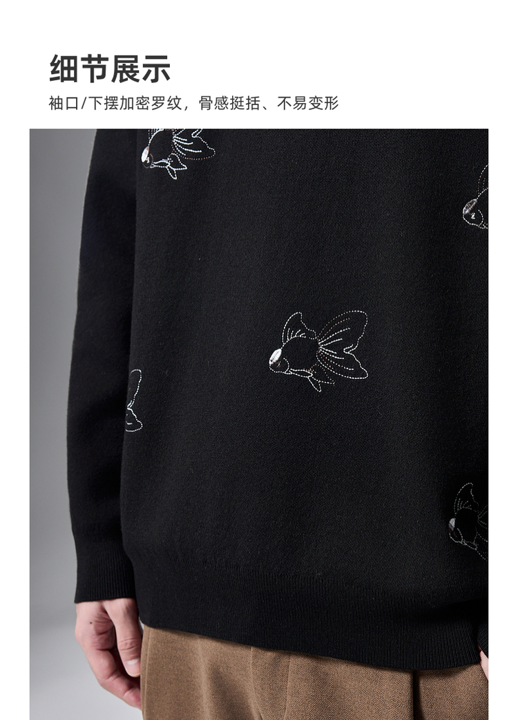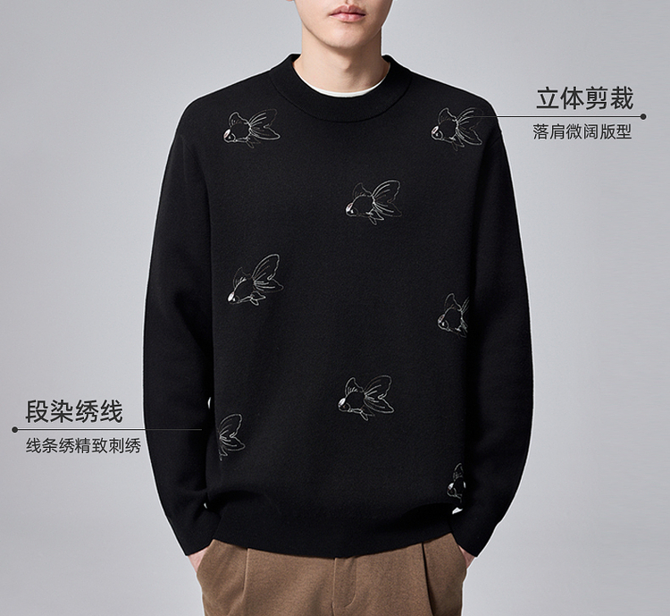 墨麦客男装2024年冬季加厚自发热圆领毛衣男士新中式刺绣针织衫男