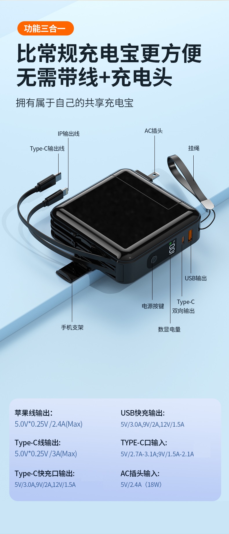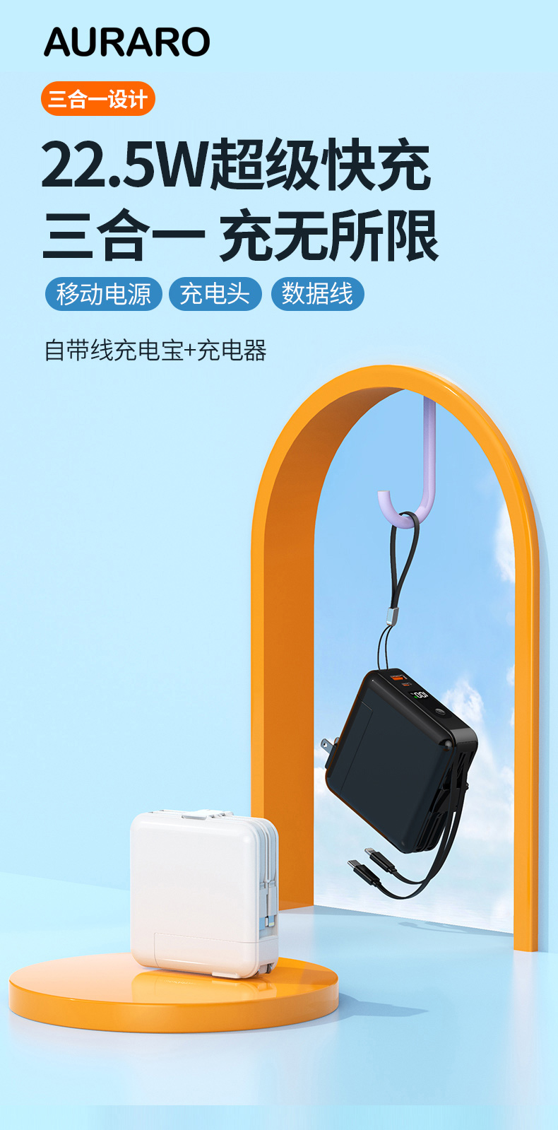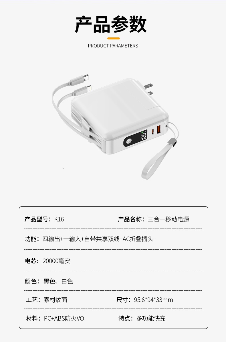 自带插座充电宝 1万毫安/2万毫安 自带快充K15/K16 A-5283 auraro