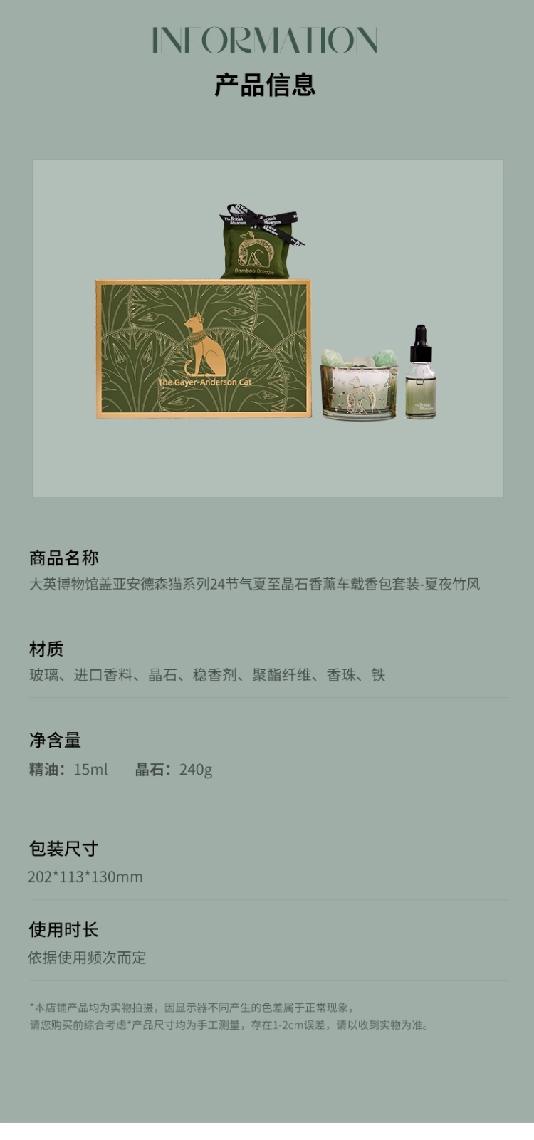大英博物馆 盖亚·安德森猫系列 24节气夏至晶石香薰车载香包套装