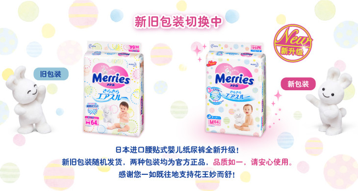 【保税仓】日本花王Merries纸尿裤 M64片(6-11kg)