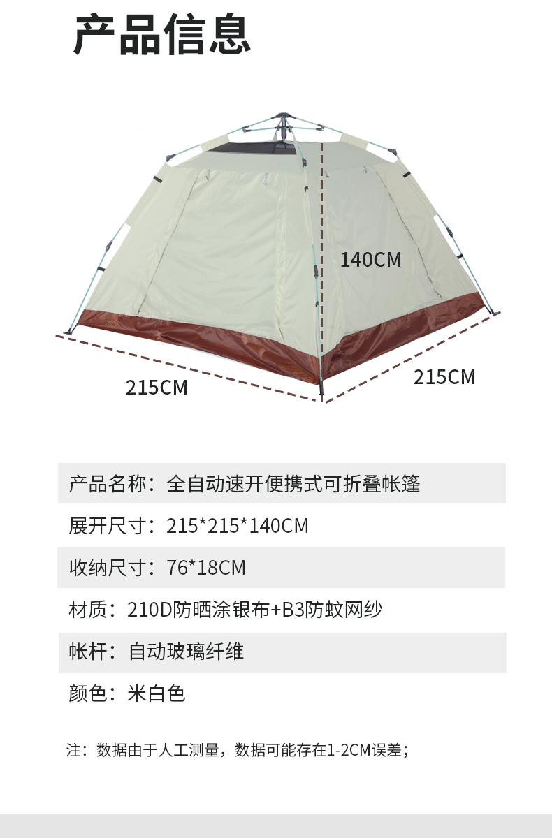 洛得兰德全自动速开4人帐篷LD-ZP103米白色