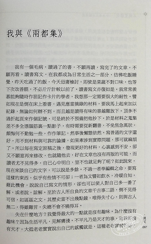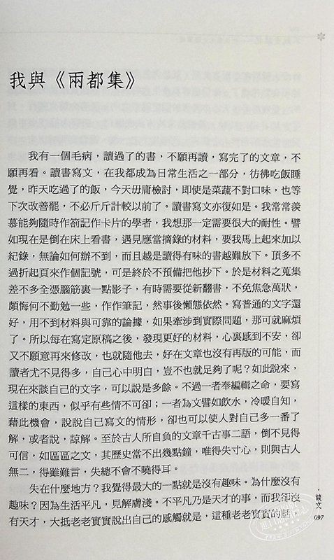 若寫散文而沒有思想學識作底子,恐怕是非常危險的,雖然說Sketch乃是瞬間的感觸,但這瞬間就要看你的根柢如何。由於一點的偏錯,或者造成很荒唐的論調也是可能的。這?須分明天才是一回事,識力又是一回事。憑了天才寫的文章,形式往往可愛,而質量則還在要看看學力的。—〈我與《兩都集》〉