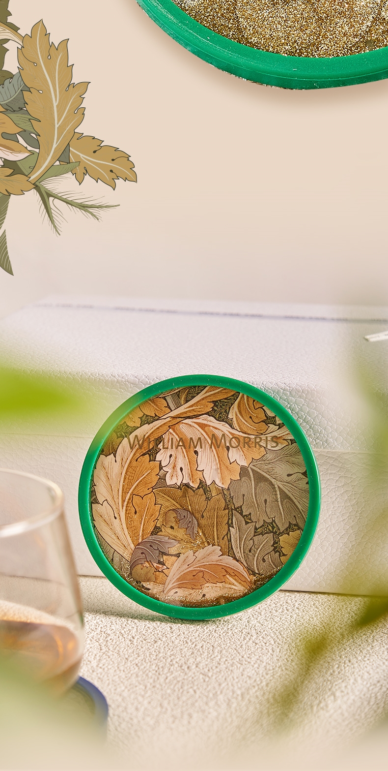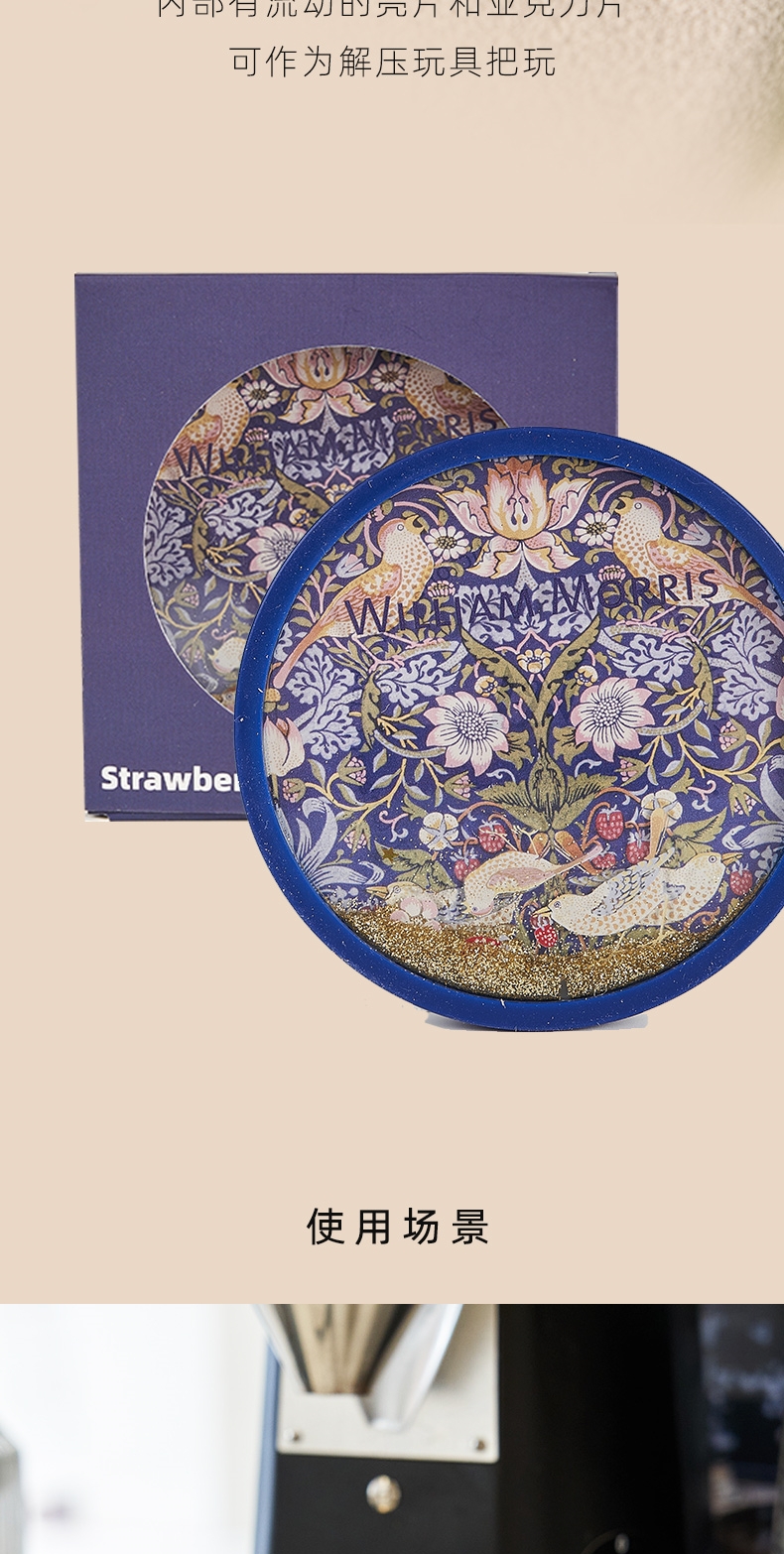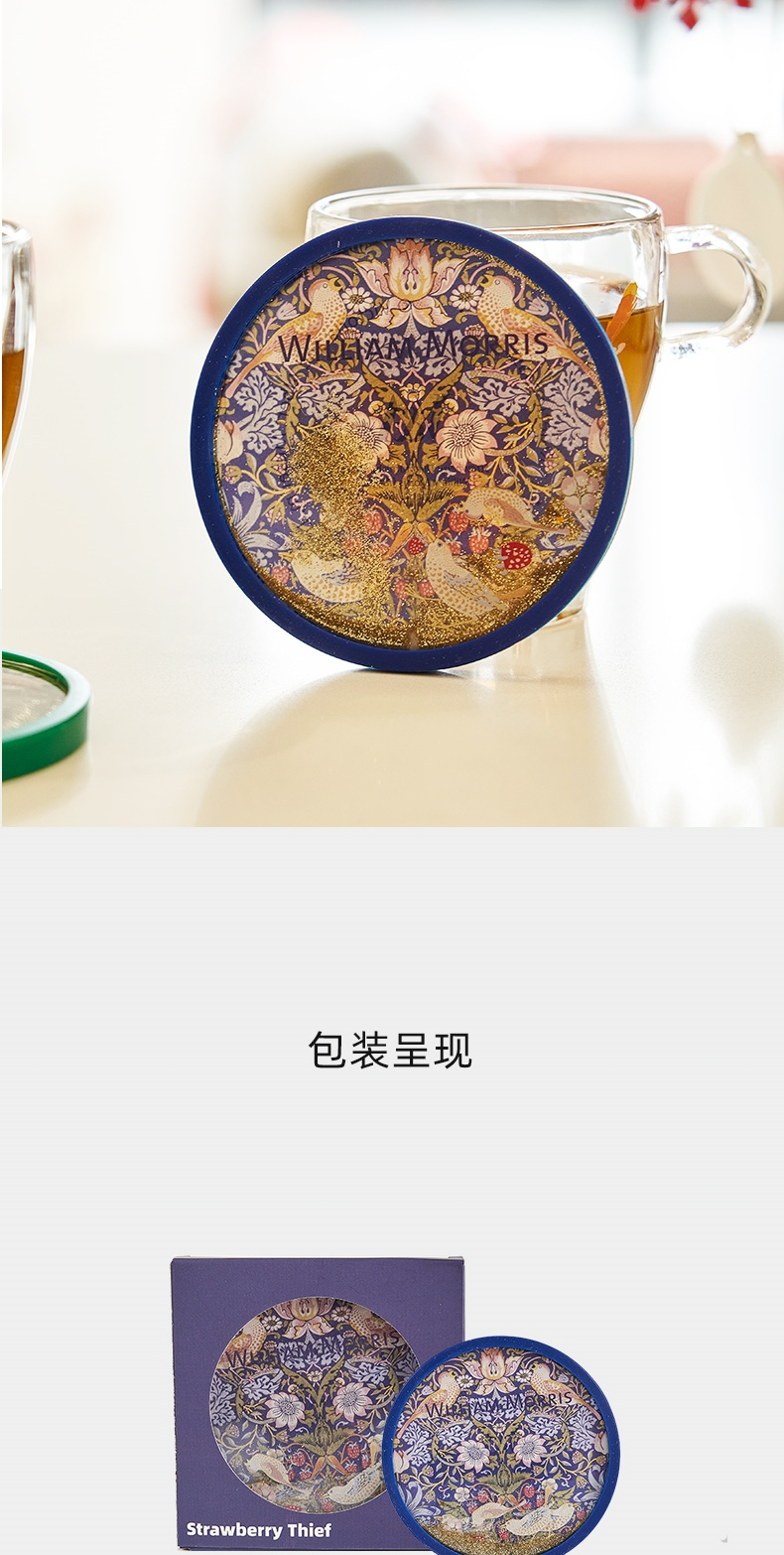 V&A博物馆威廉莫里斯系列 苕茛叶 草莓小偷流沙杯垫 文创礼物