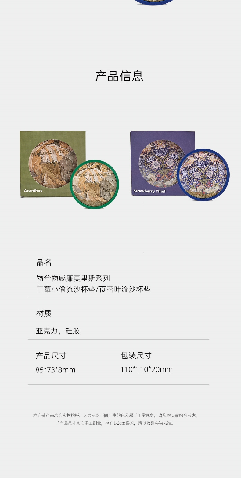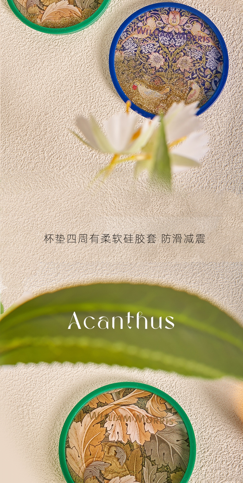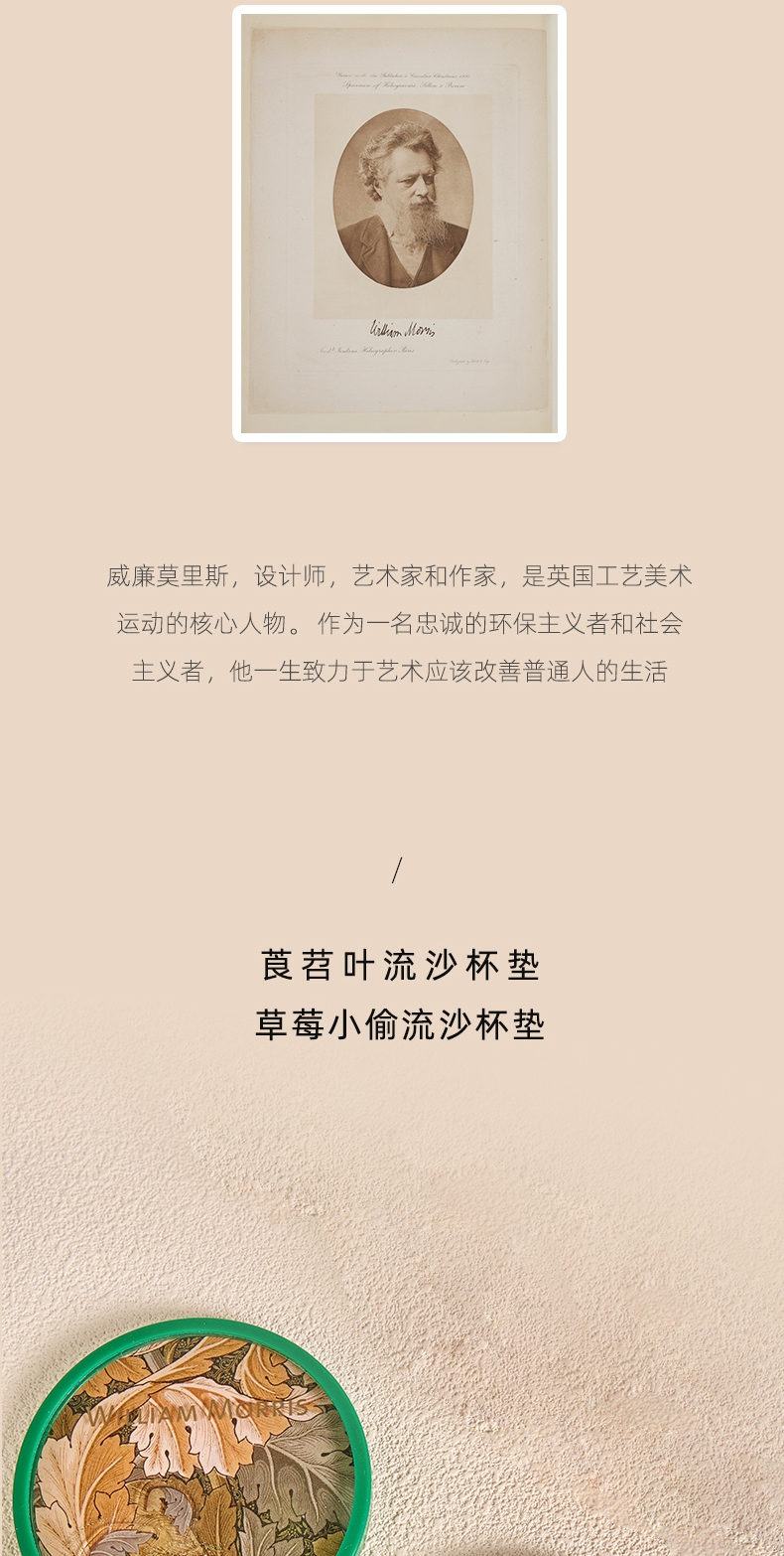 V&A博物馆威廉莫里斯系列 苕茛叶 草莓小偷流沙杯垫 文创礼物