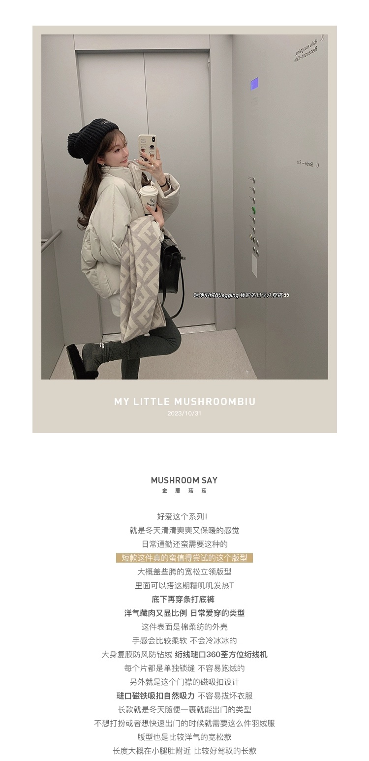 金蘑菇菇 septime热爱105 ℃ 办公室通勤羽绒/ 洋气藏肉长短款