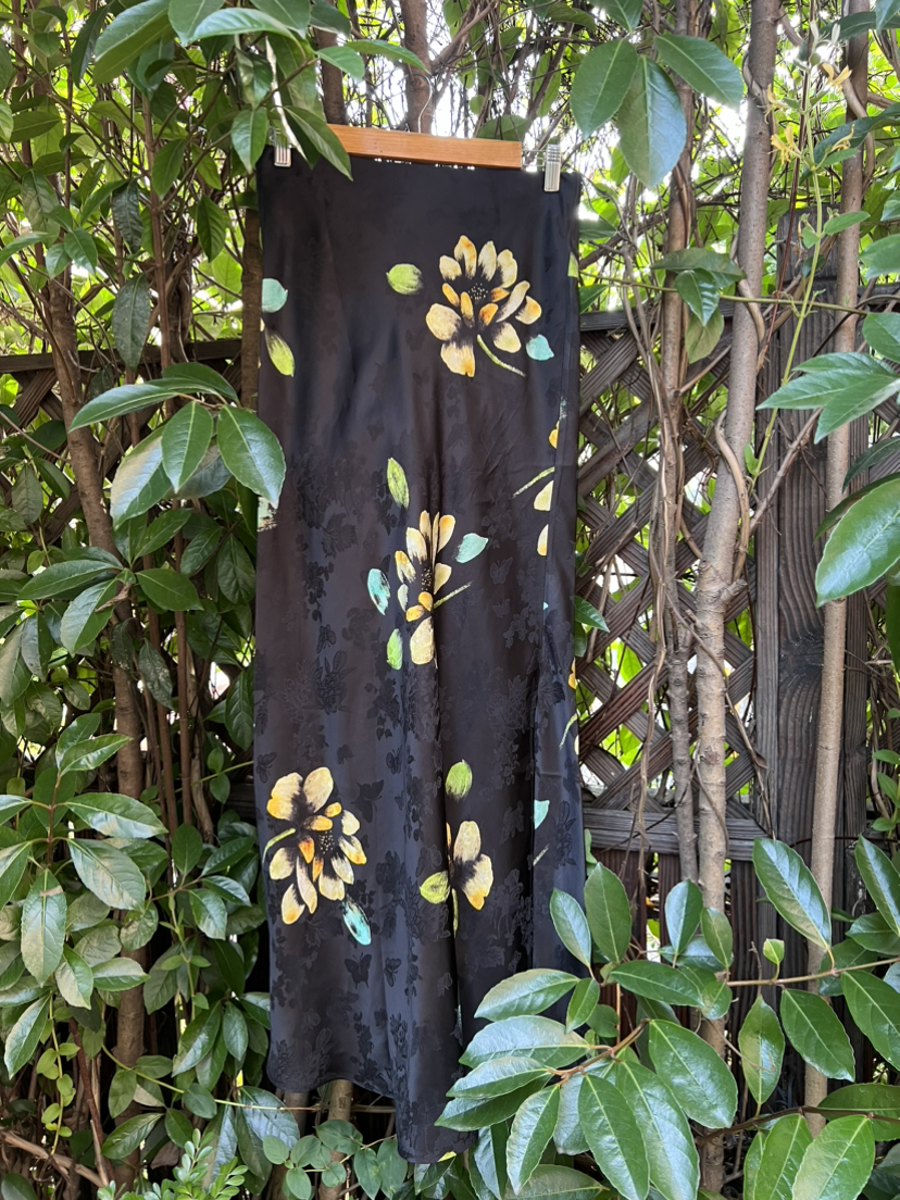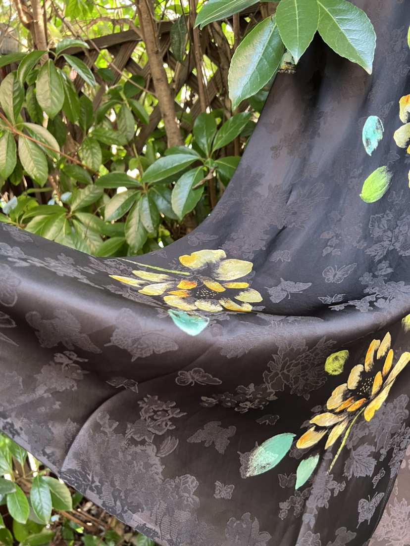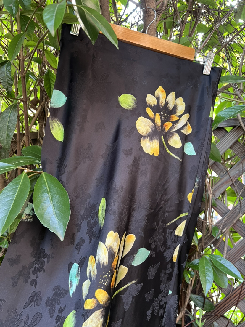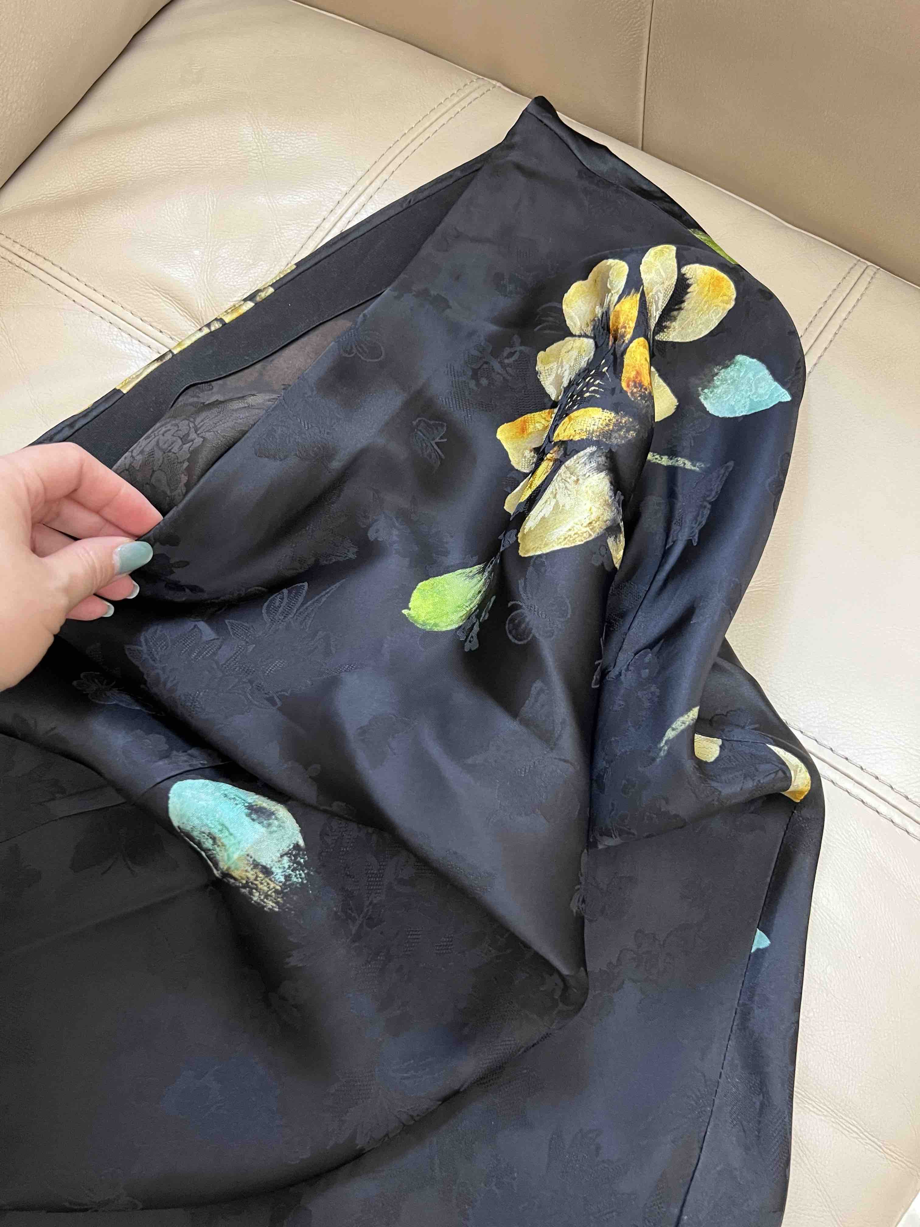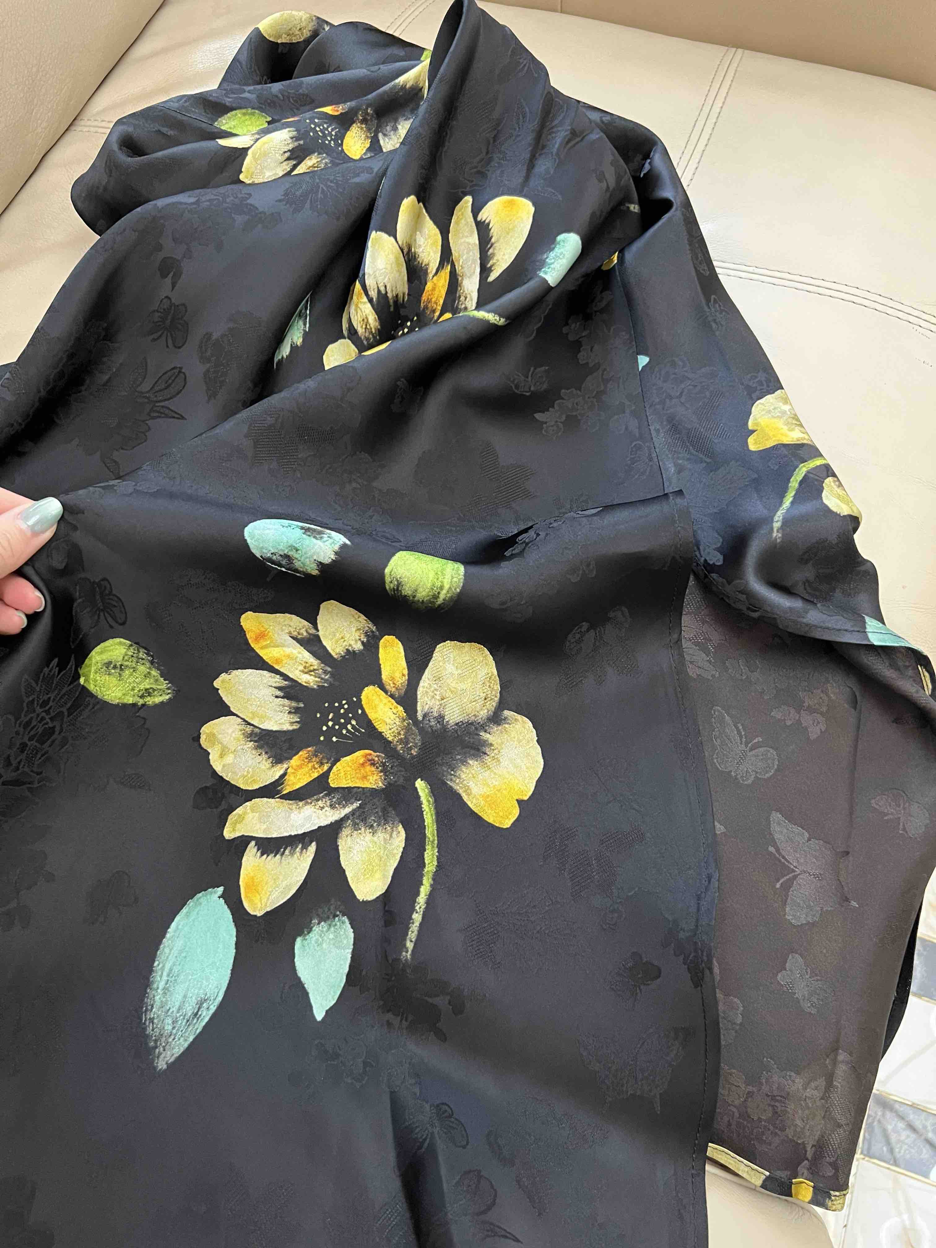 今晚就少刷几个,梧栖太美了,看我实拍足够了,都不用言语。梧栖高端新中式 基础款 夏荷 开衩半身长裙 极少量。材质是百分百人丝,质感觉着有香云纱的小滋味。仔细看,黑色也不是纯黑色,上面蝴蝶莲花,步步生莲。