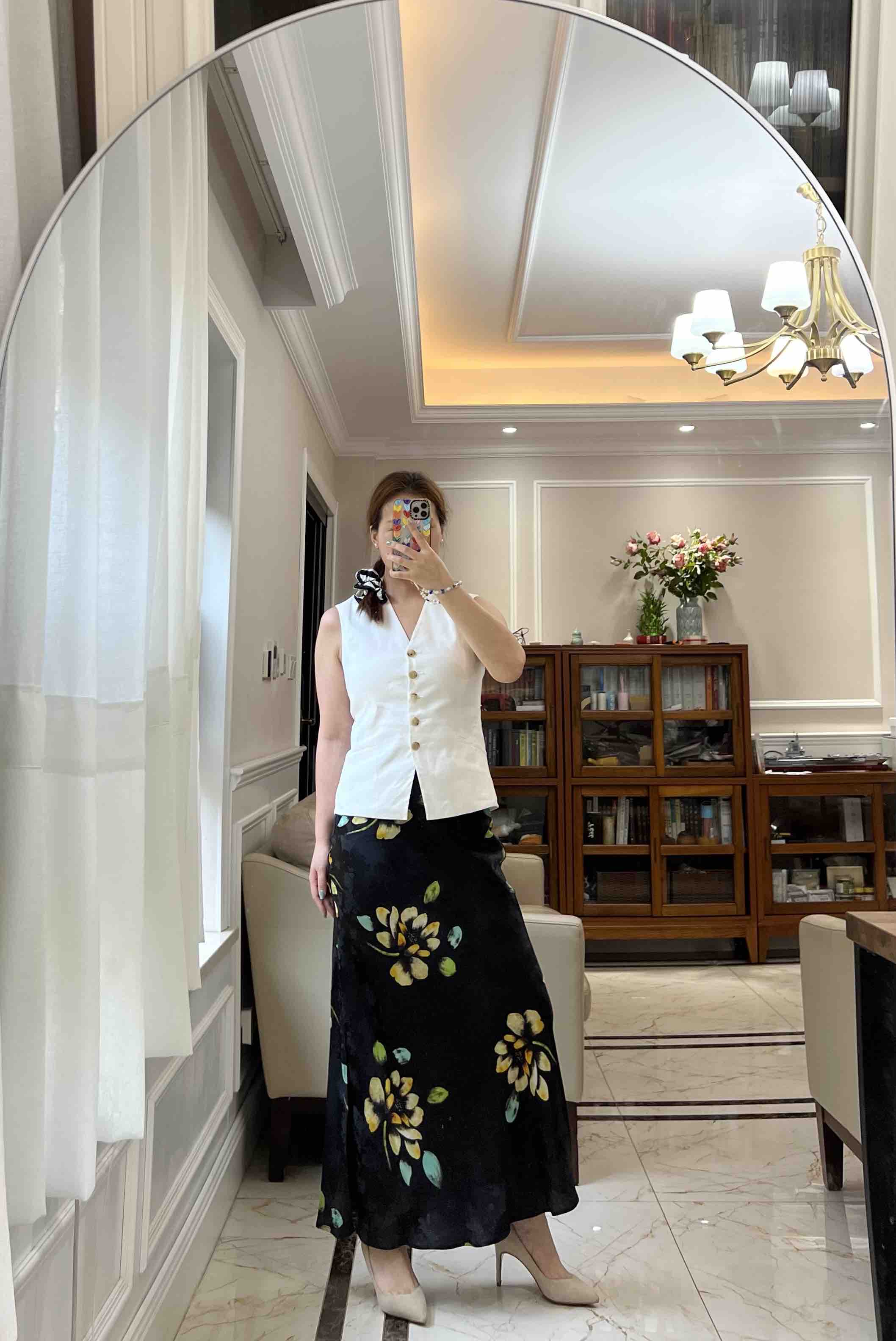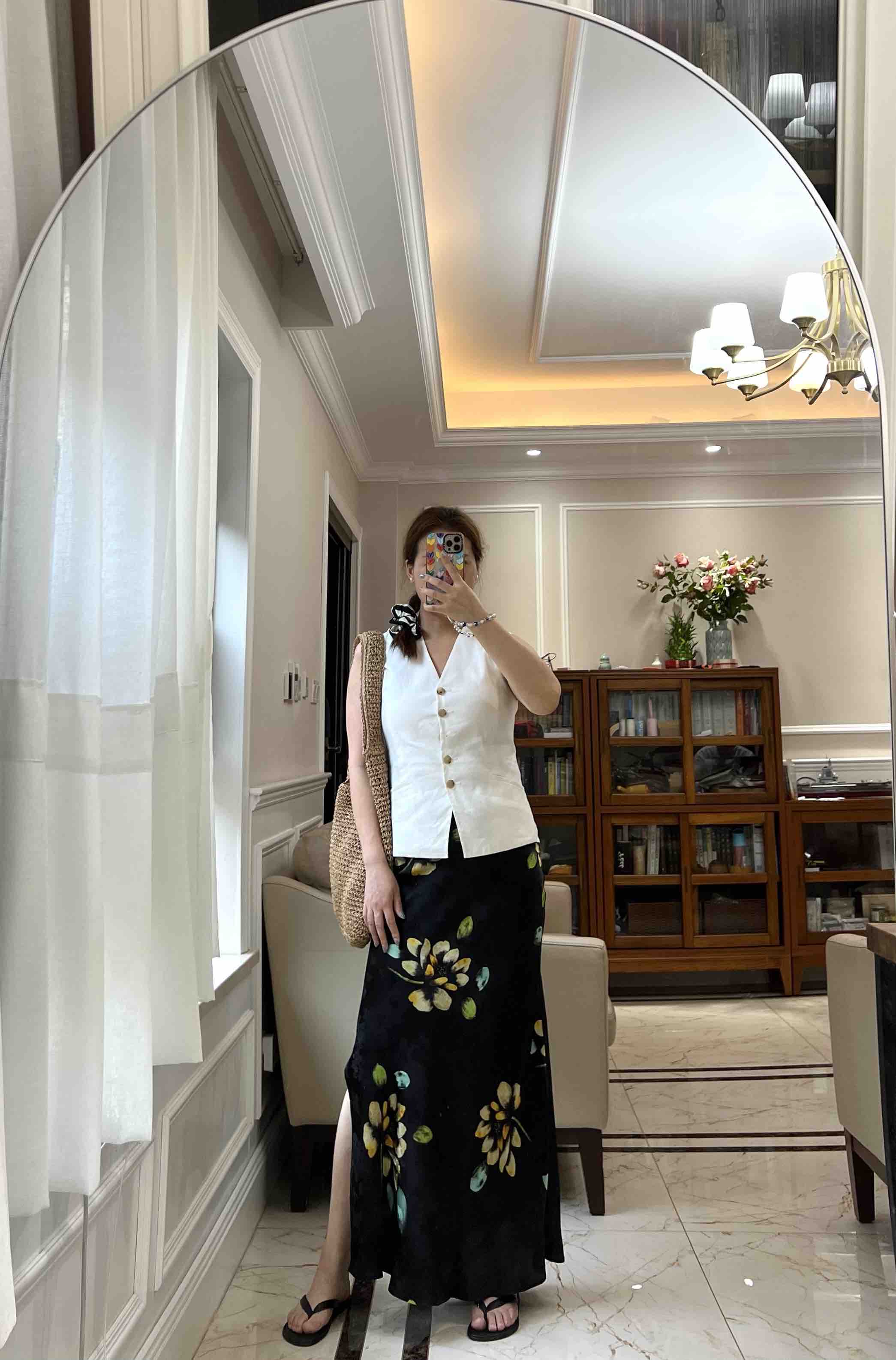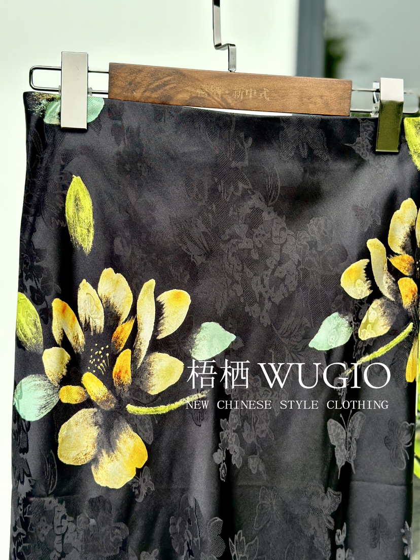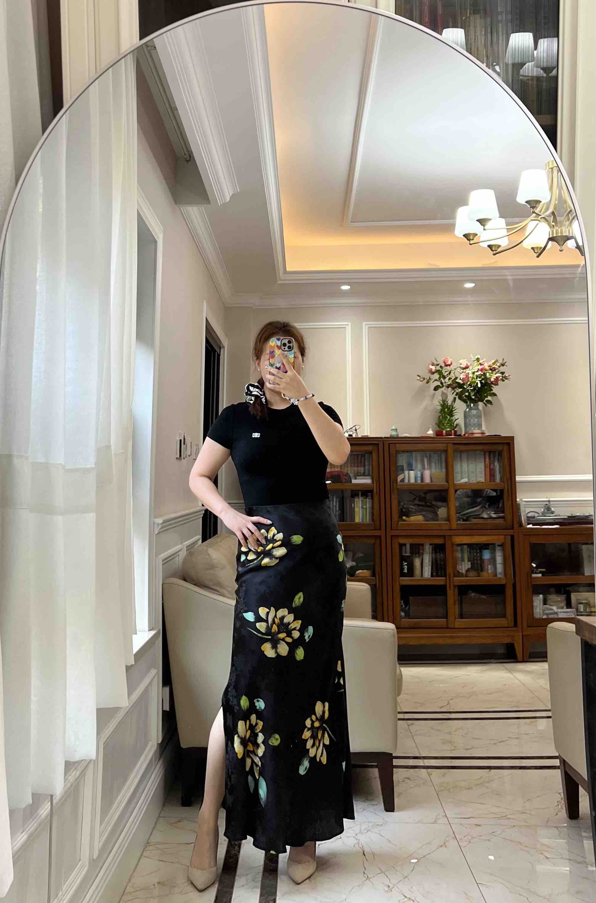轻中式,梧栖独立设计,版型太拿捏我了,侧边小开叉,五彩斑斓的黑色,活色生香的夏荷,大气优雅,浪漫高级。整体的长度,开衩的高度,都是恰到好处,极限拉长身材比例。