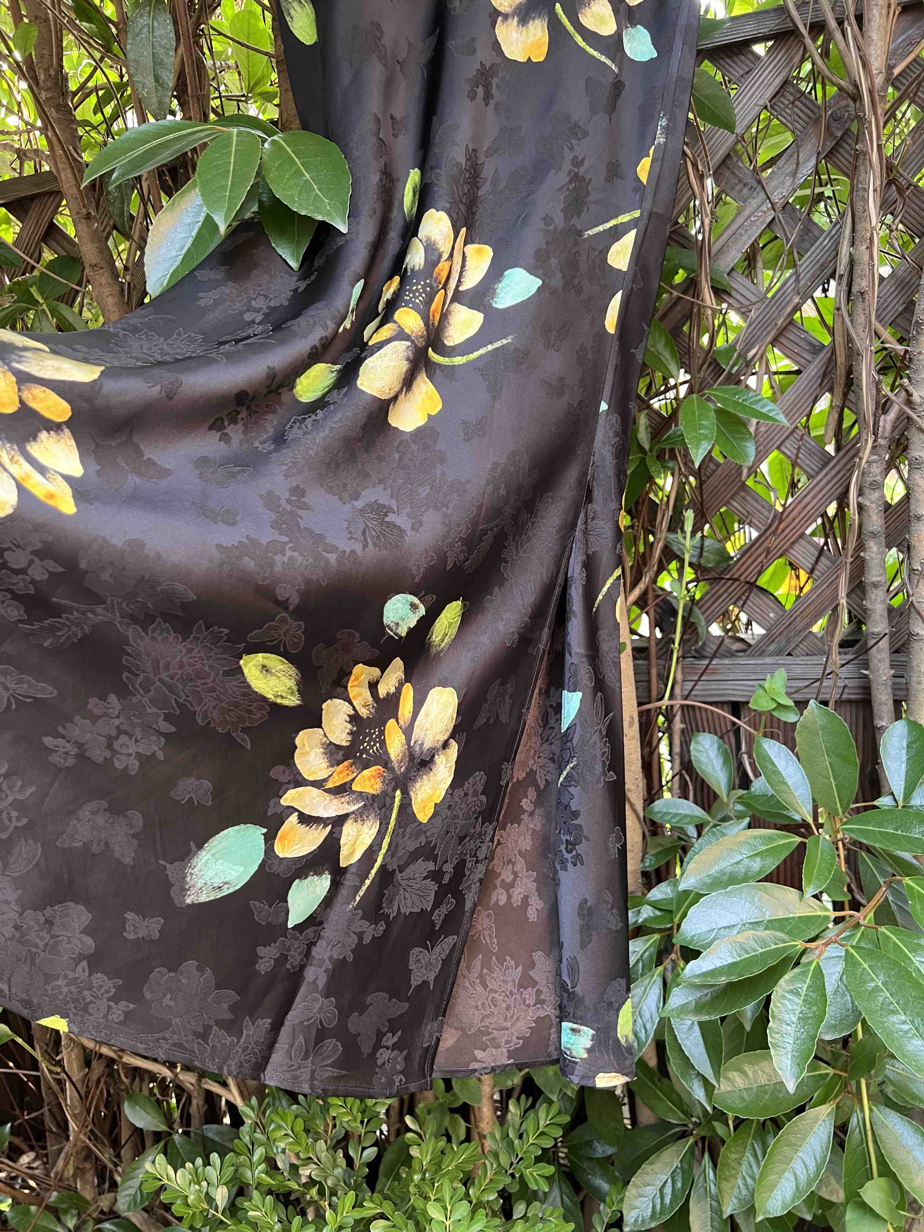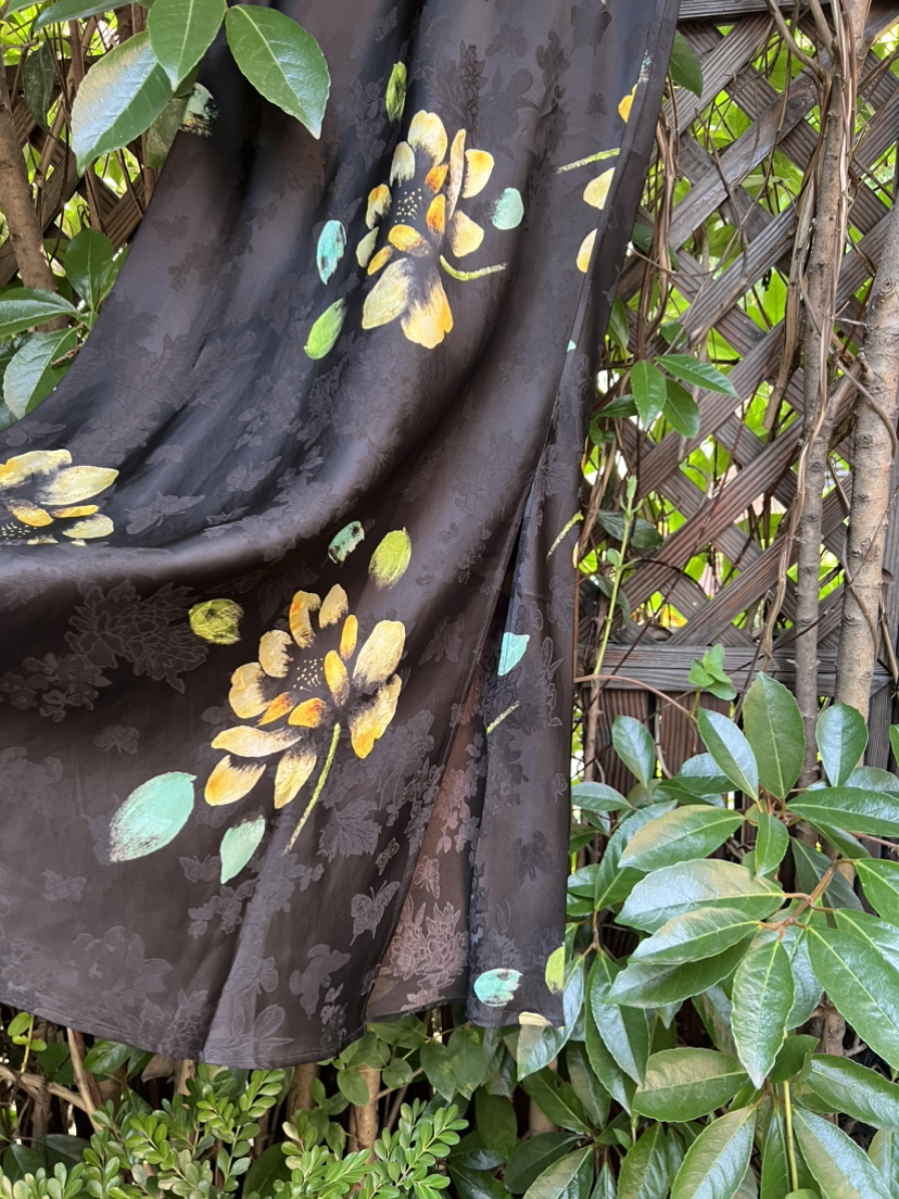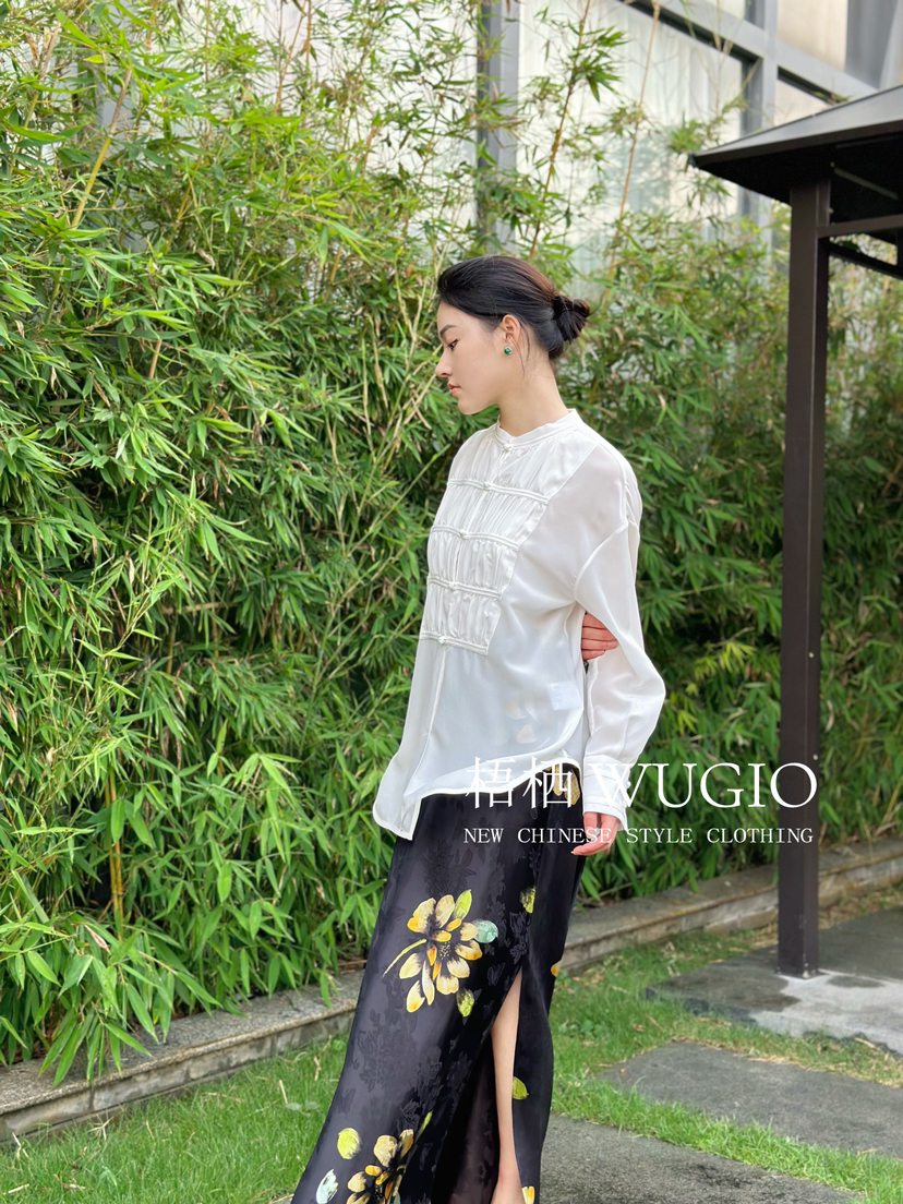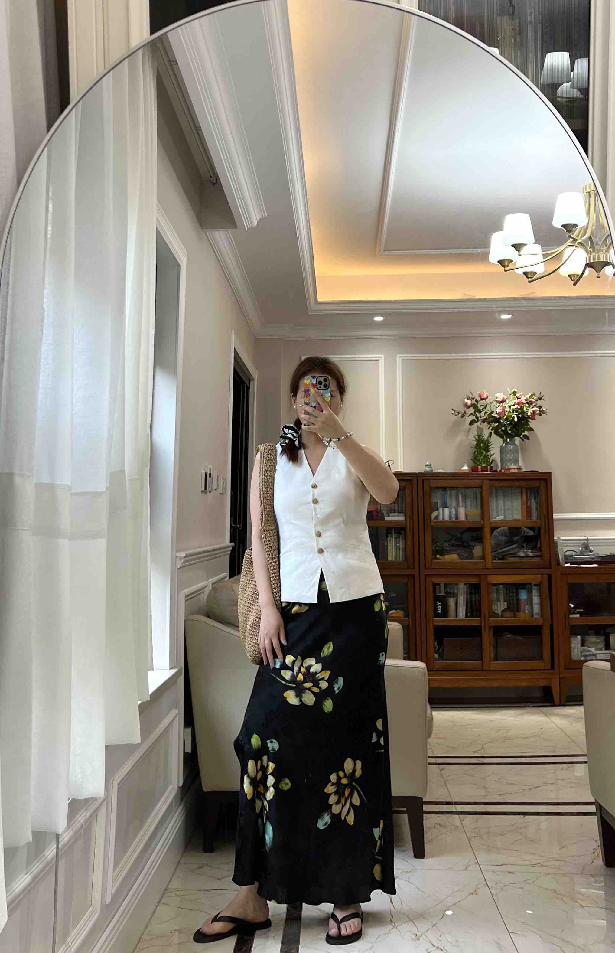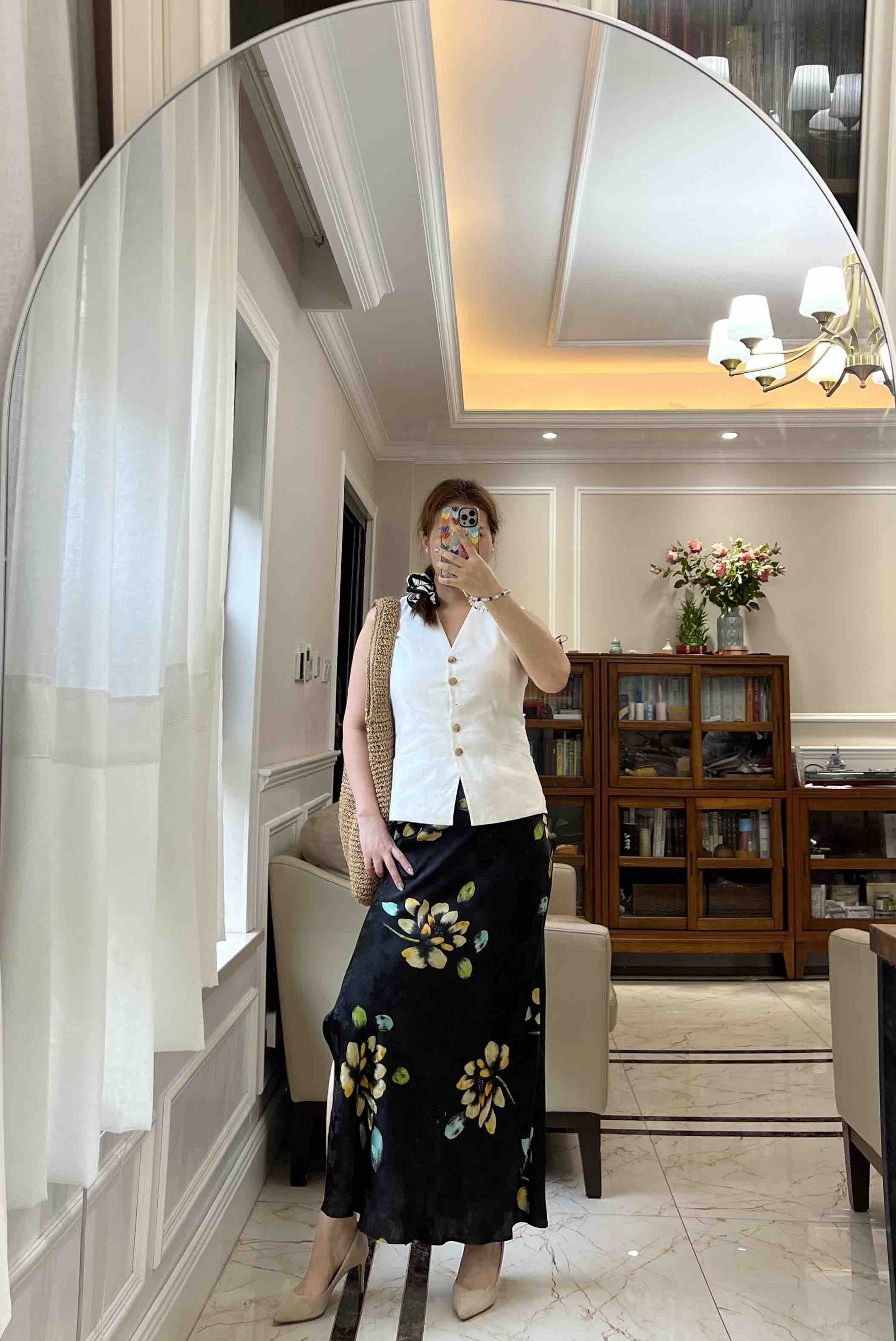 轻中式,梧栖独立设计,版型太拿捏我了,侧边小开叉,五彩斑斓的黑色,活色生香的夏荷,大气优雅,浪漫高级。整体的长度,开衩的高度,都是恰到好处,极限拉长身材比例。