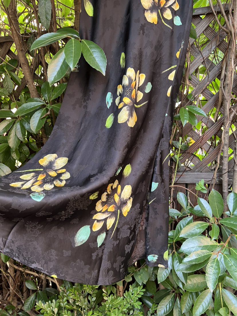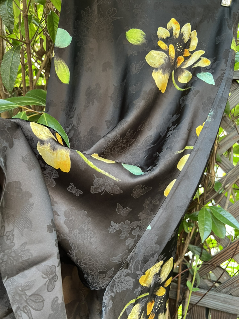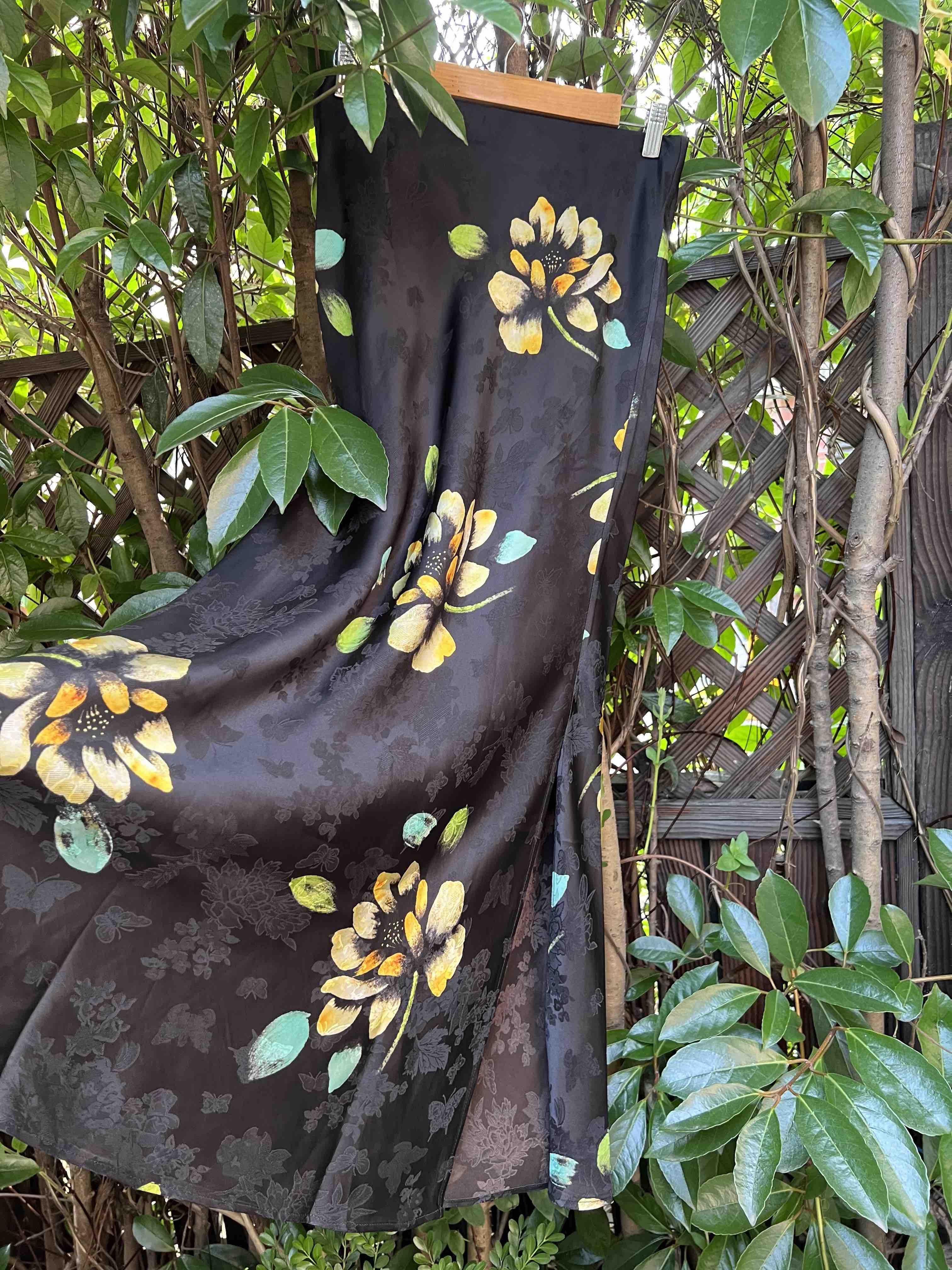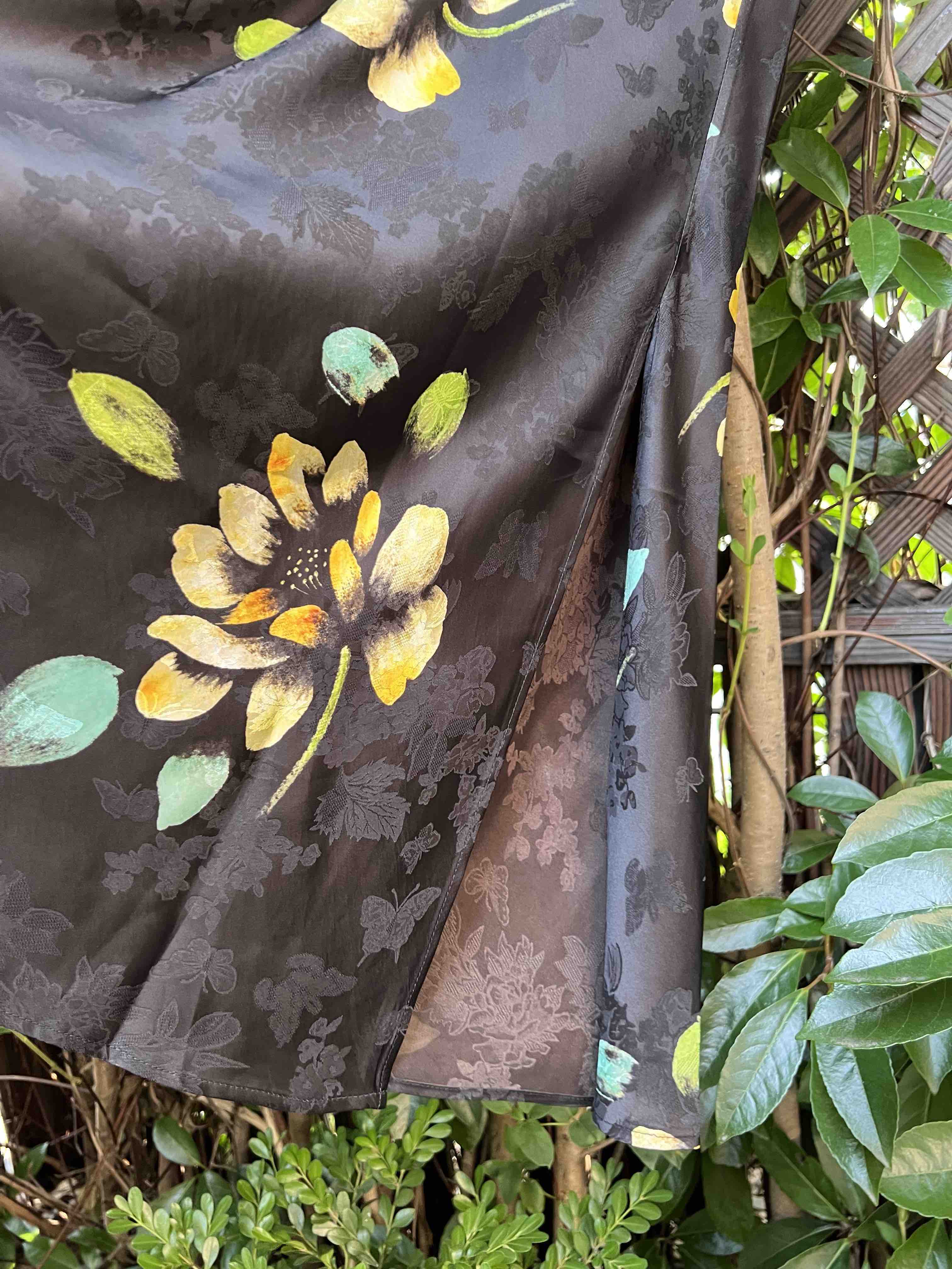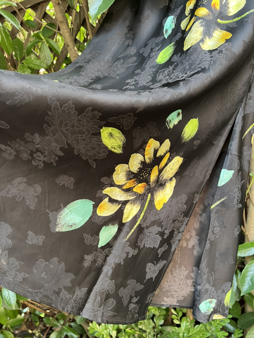 轻中式,梧栖独立设计,版型太拿捏我了,侧边小开叉,五彩斑斓的黑色,活色生香的夏荷,大气优雅,浪漫高级。整体的长度,开衩的高度,都是恰到好处,极限拉长身材比例。