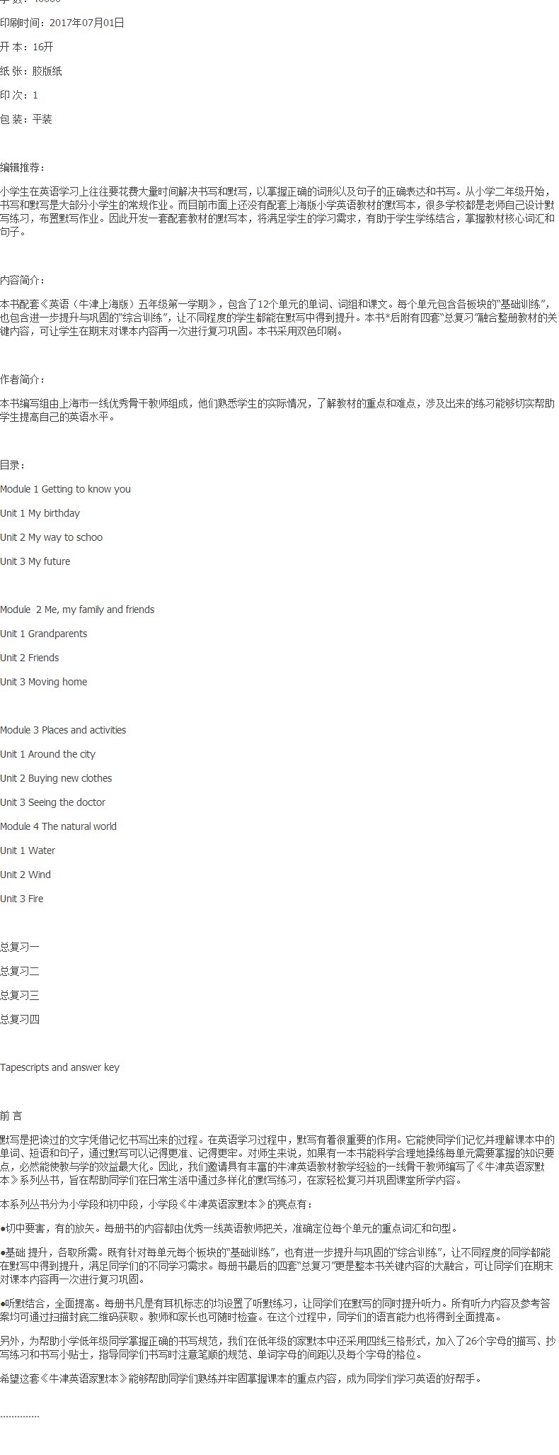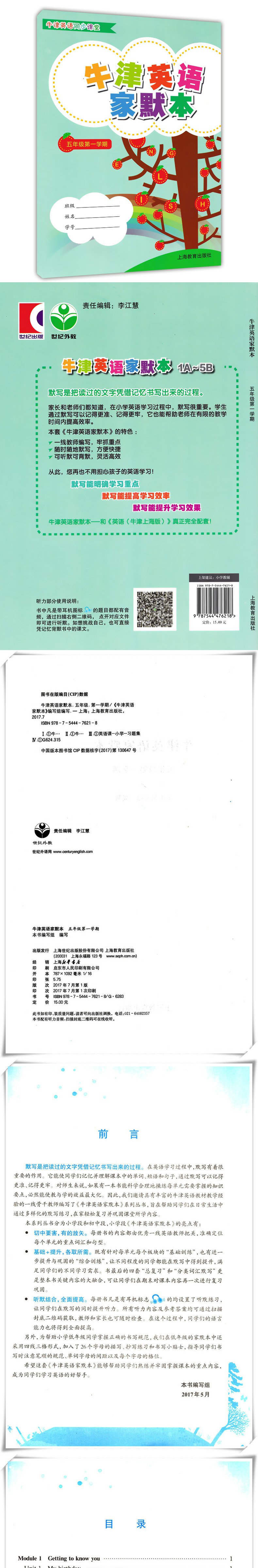 正版现货 上海小学教辅 牛津英语家默本 五年级第一学期/5年级上 5A 上海教育出版社 教材课本同步辅导书 小学生英语书写默写本