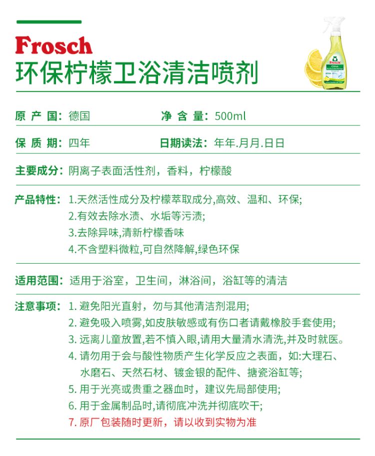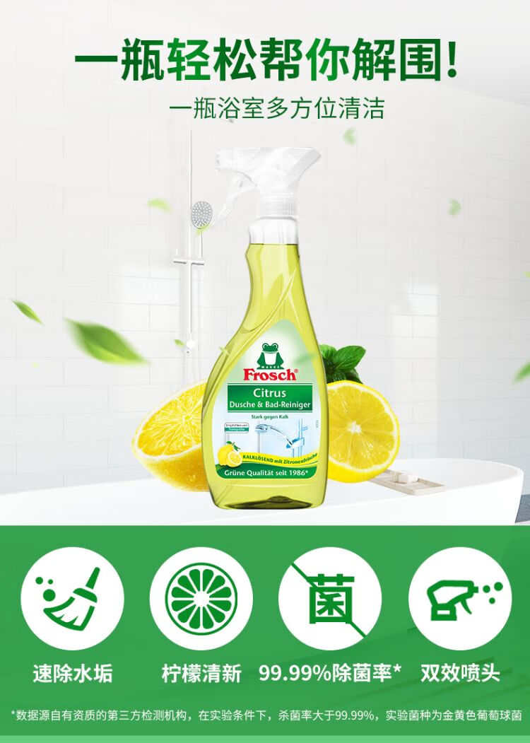 Frosch 柠檬卫浴清洁喷剂500ml+Frosch 柠檬便器清洁剂750ml/组