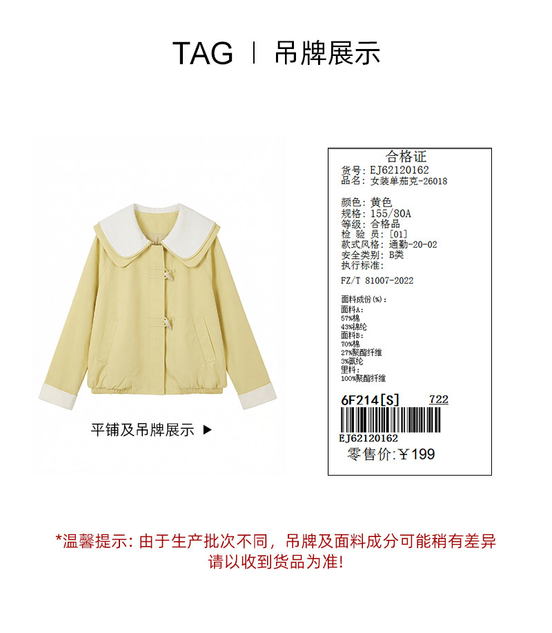 女装大翻领撞色袖口翻边外套-26018J6212016
