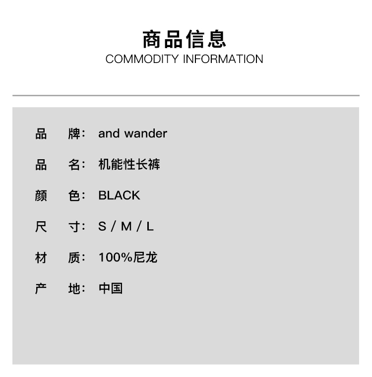 and wander Ny 塔夫绸尼龙空立体剪裁机能性长裤 可脱卸变短裤