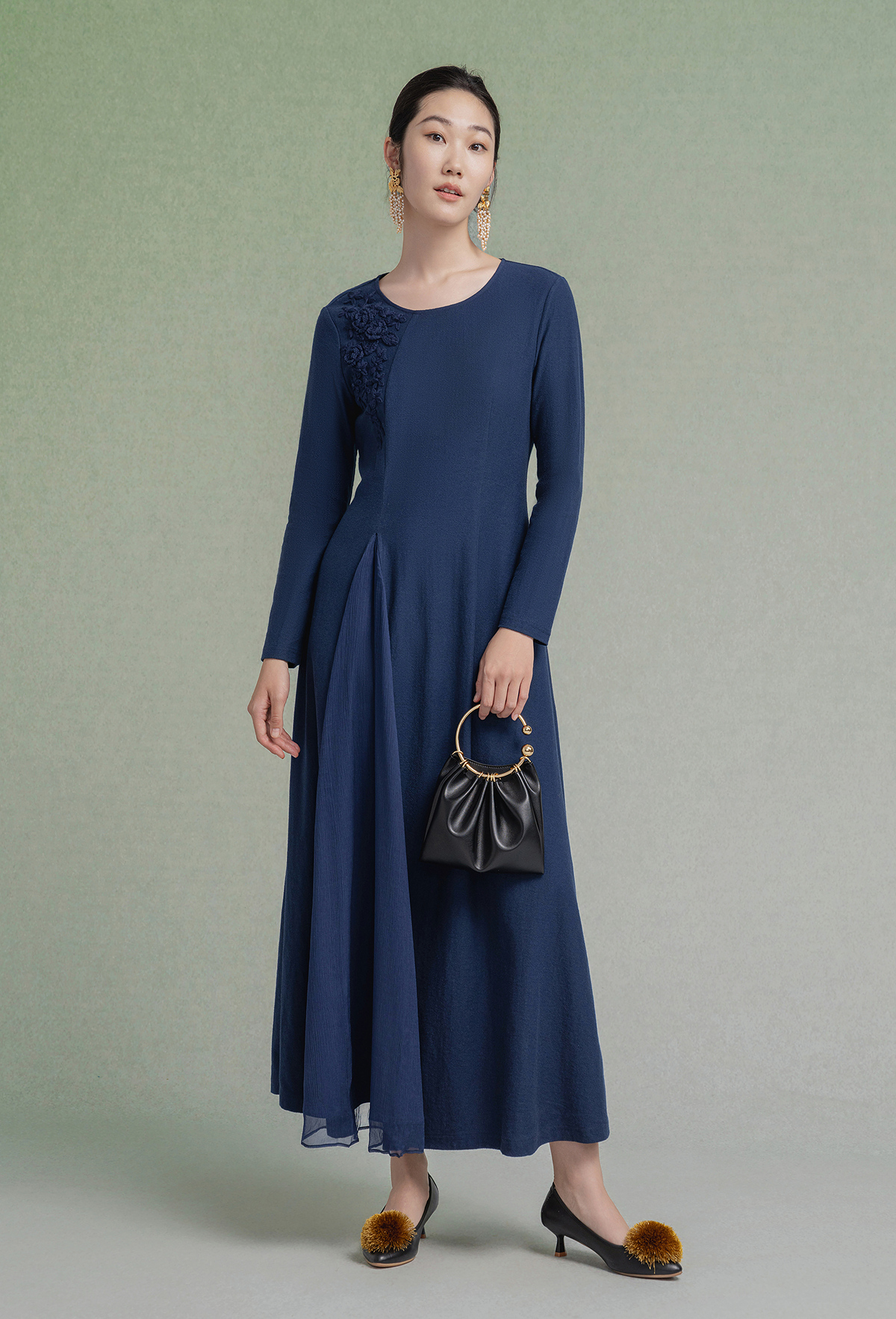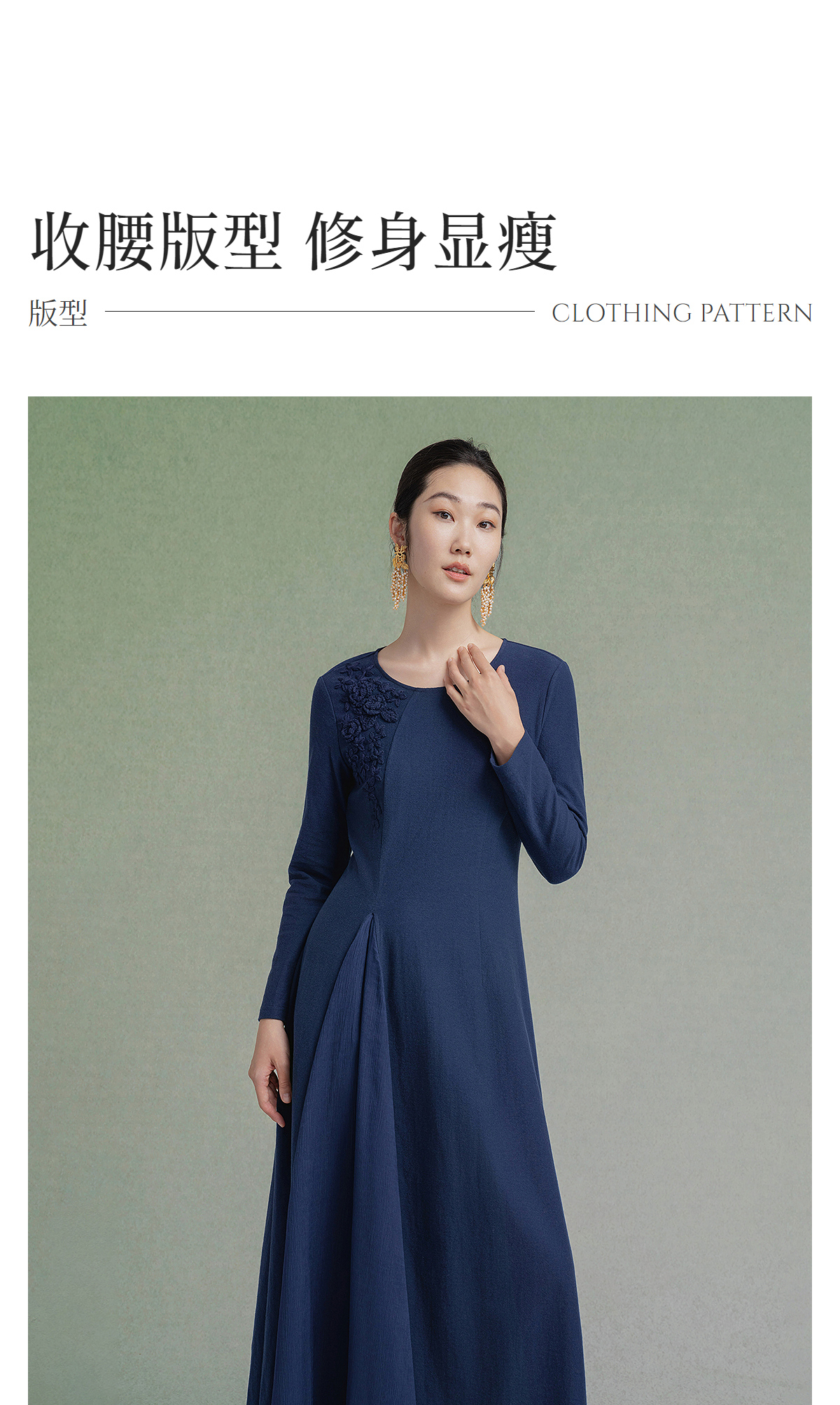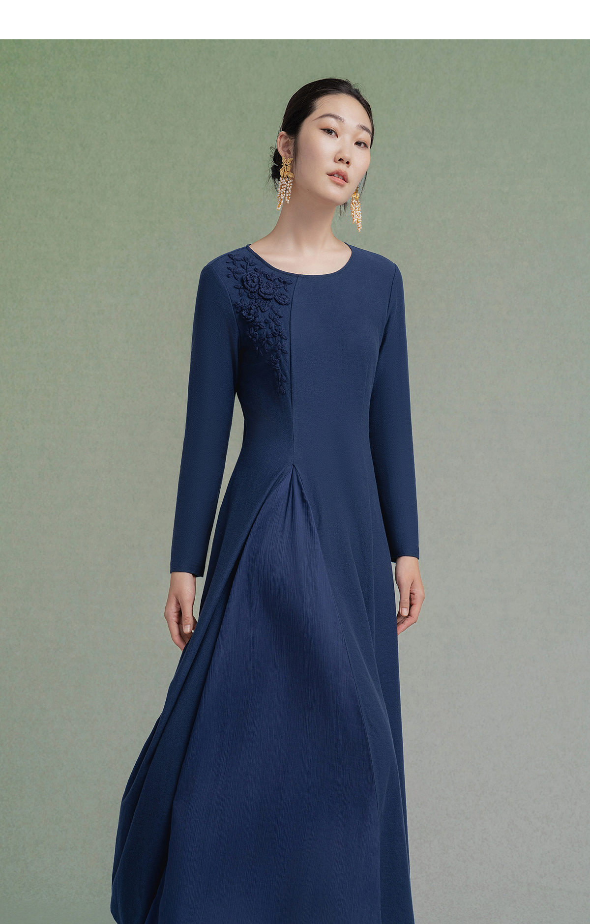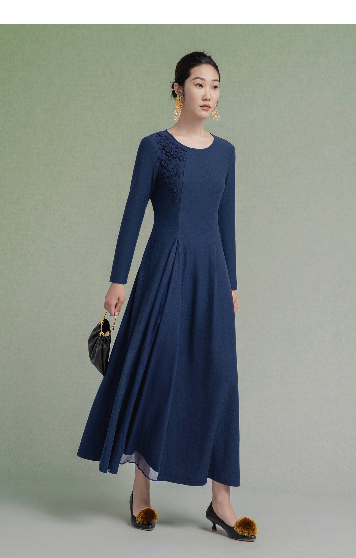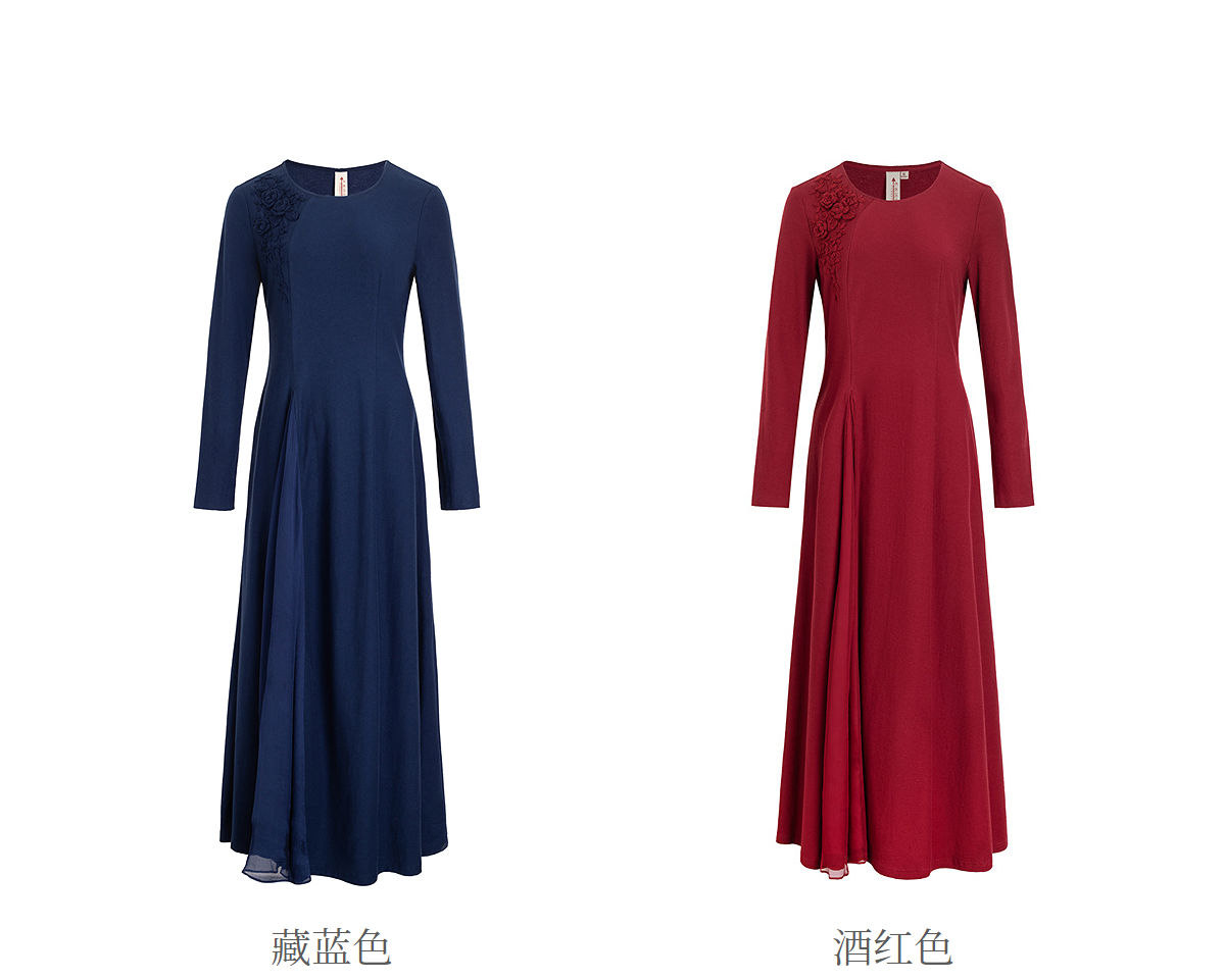 【林栖设计小店】【手工钩花】纯棉连衣裙拼飞片2025秋冬新款多色绣花长裙1954085