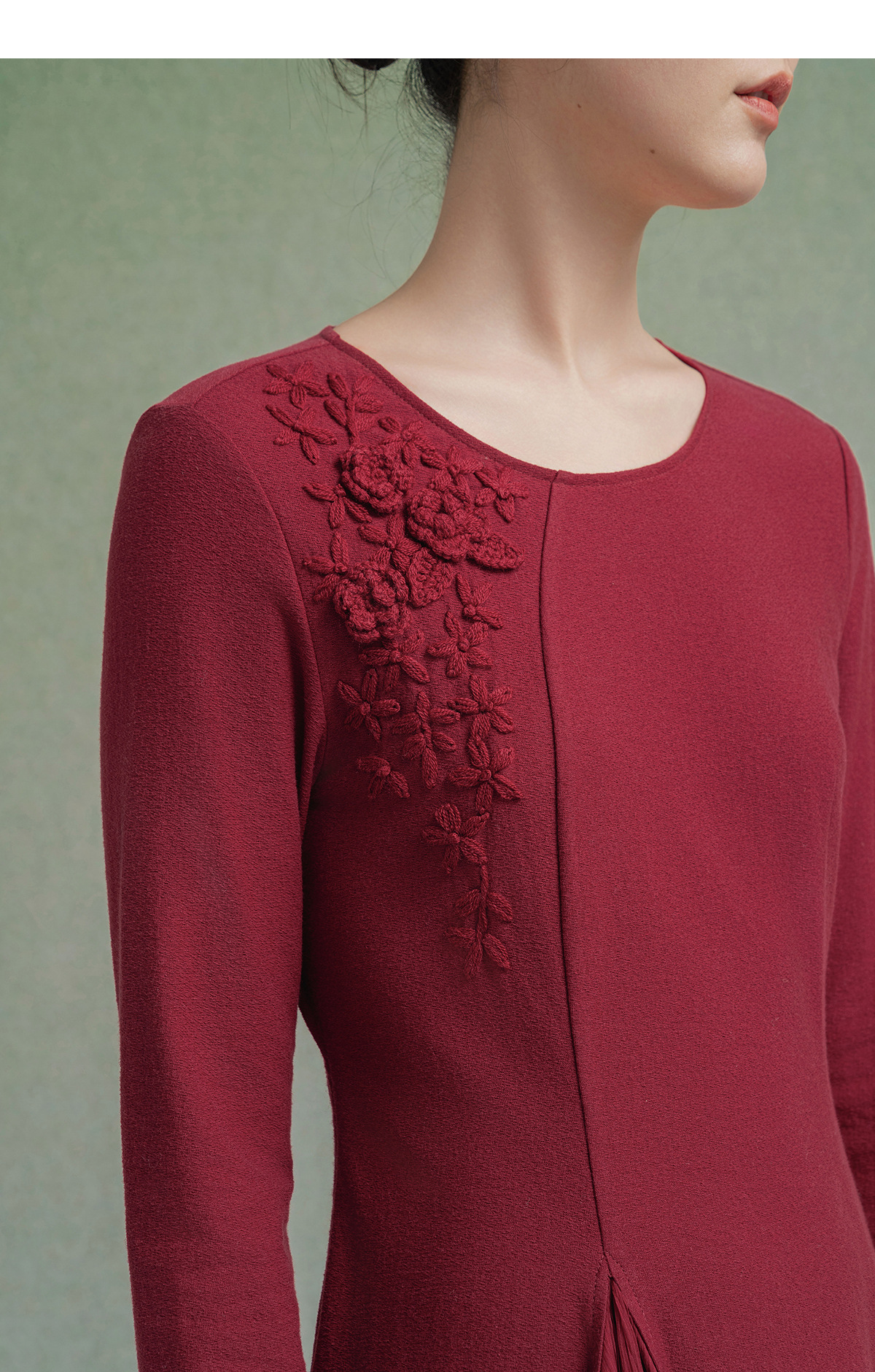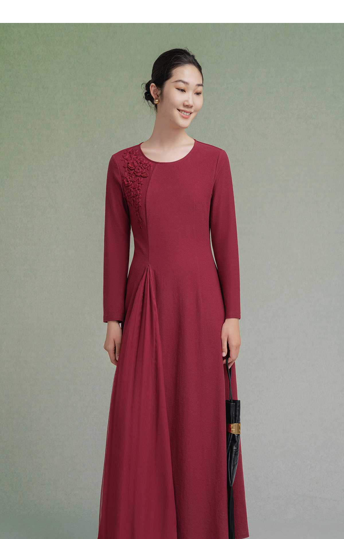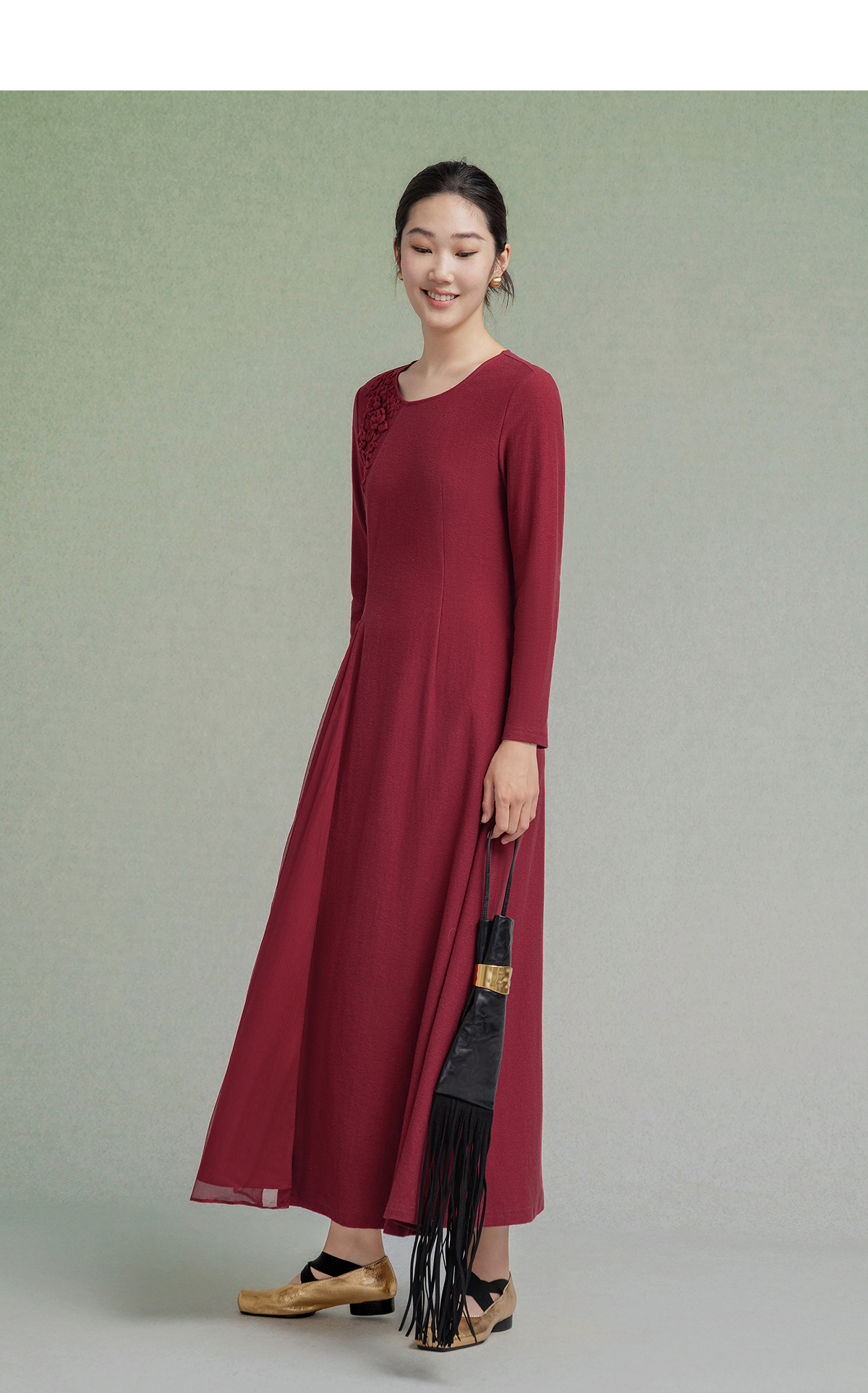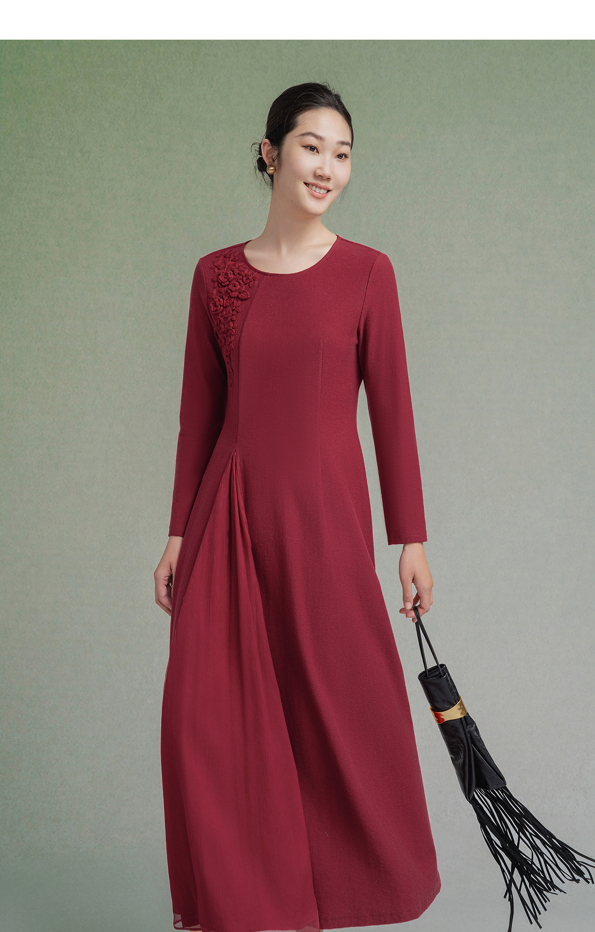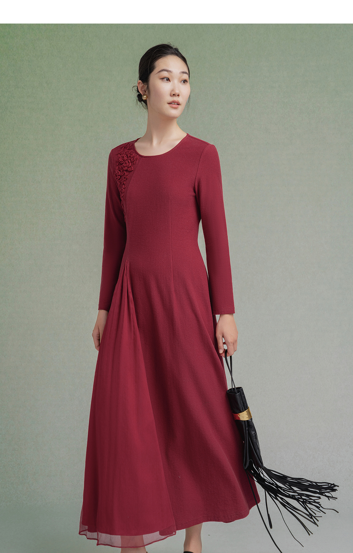 【林栖设计小店】【手工钩花】纯棉连衣裙拼飞片2025秋冬新款多色绣花长裙1954085