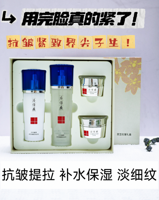 母亲节💐破价团❗到手4件套【片仔癀牌灵芝抗皱套盒】 🐱旗舰店💰329元❗ 😎我们开团💰258元❗✅套盒含:水+乳液+面霜+眼霜 质地清爽细腻,不黏腻