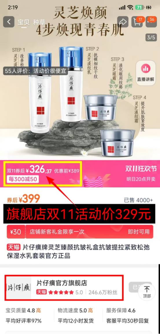 旗舰店双11活动券后售价💰329的套盒 我们破价开团💰258元❗ 仅此一批库存!限量!遇到直接撸! 片仔癀老牌国货。品质一直在线 自留送人都高端大气,极致性价比❗ 女人什么时候都得抗老, 买来送妈妈、婆婆超级合适!