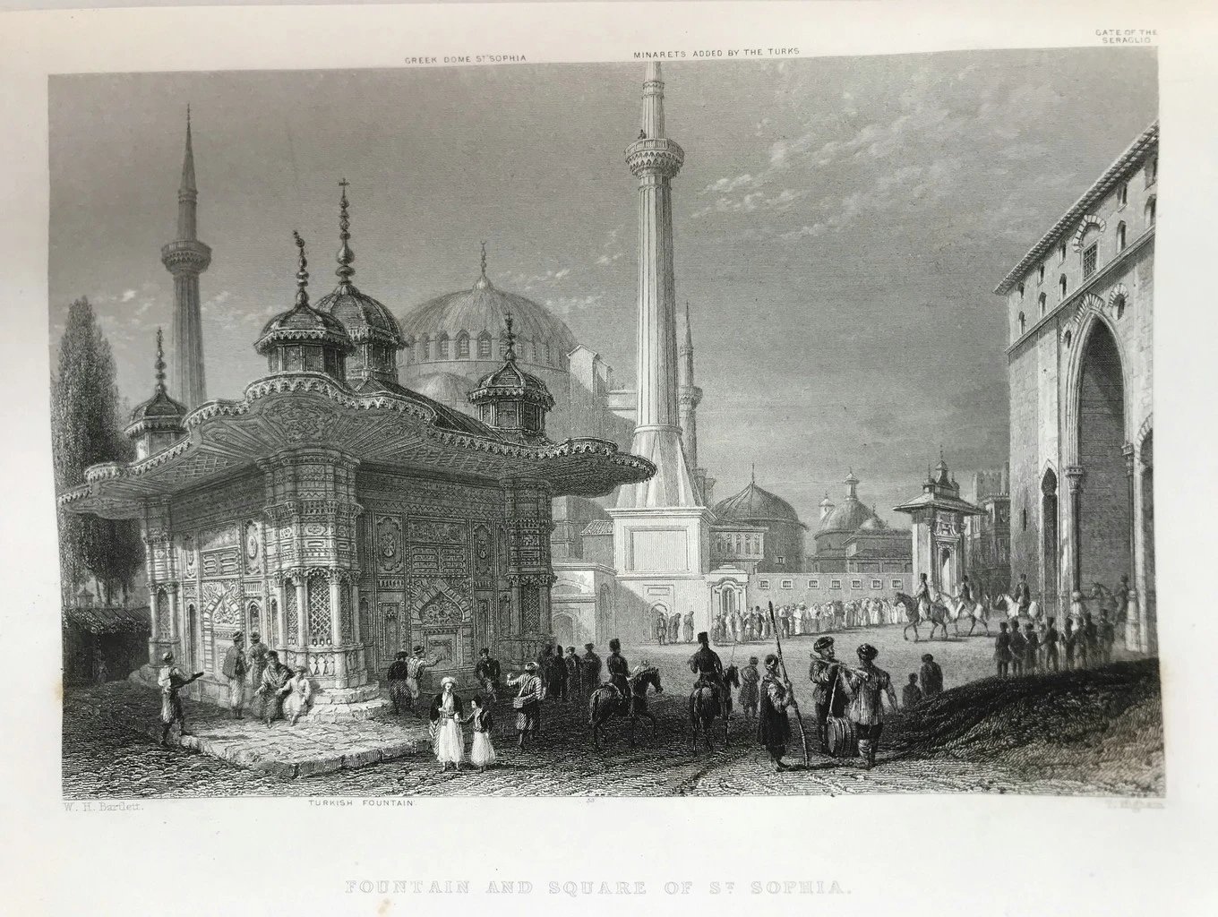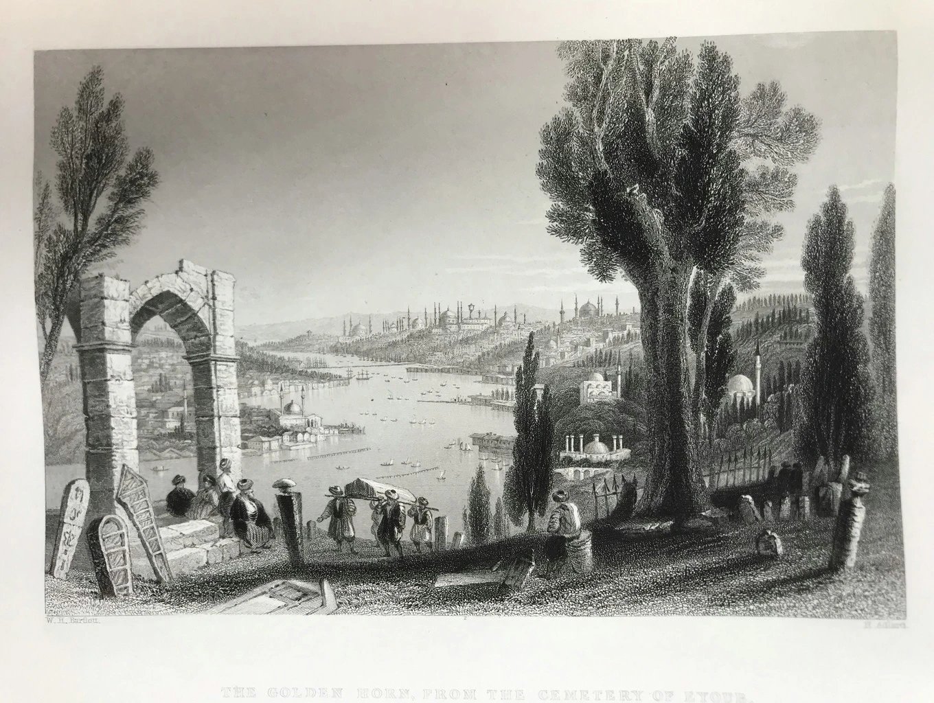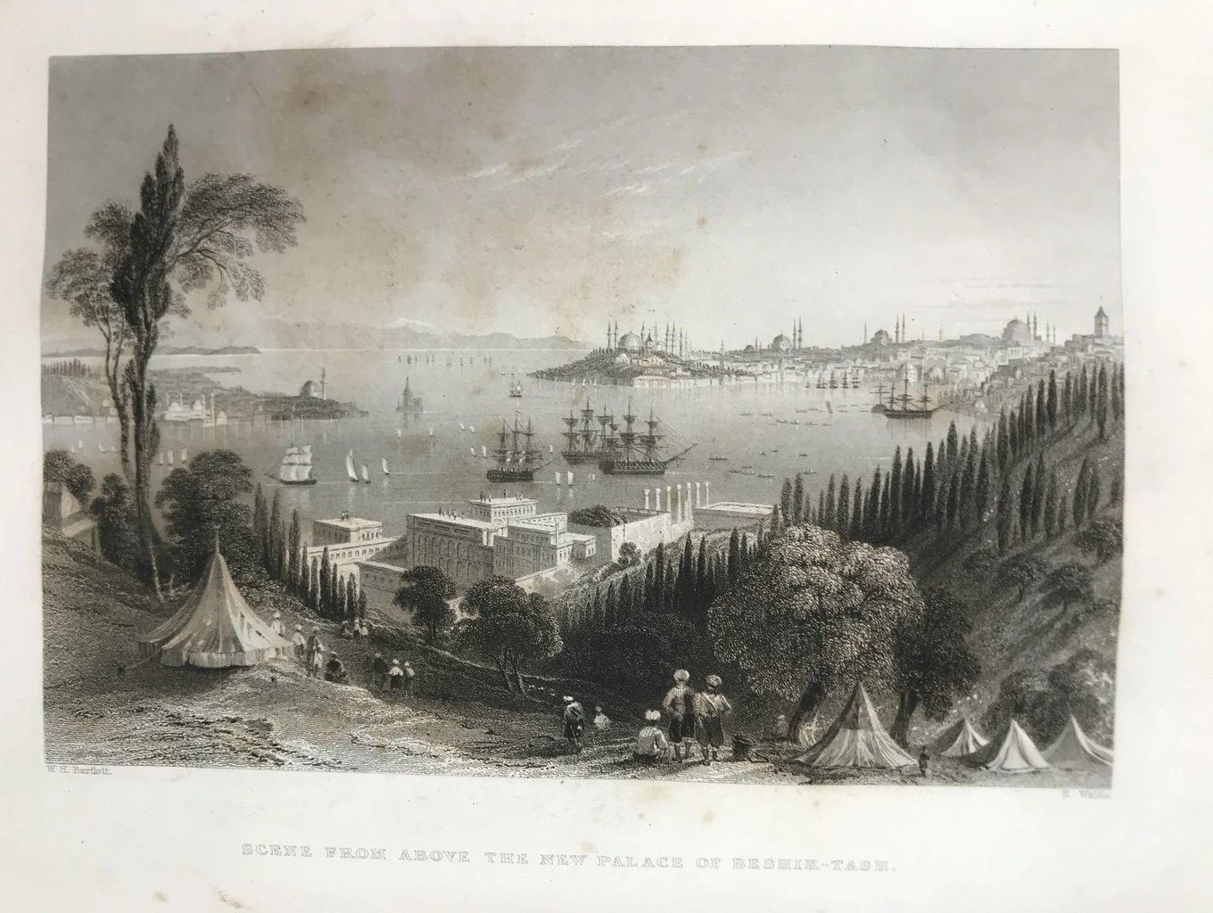 约19世纪中期 博斯普鲁斯之美 巴特利特近百幅风景版画 真皮精装16开