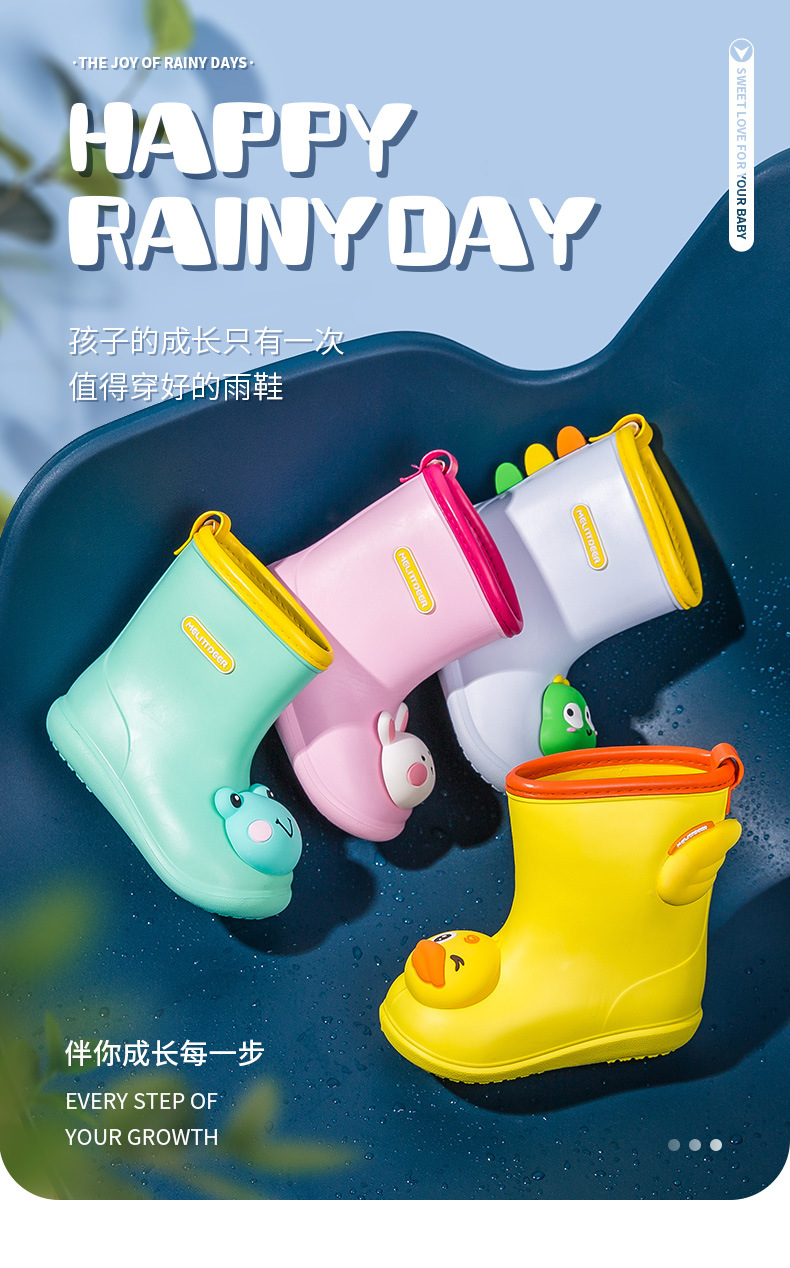 【防水防滑不易摔】小鹿米利儿童雨鞋新款防水防滑软底可爱卡通男童女童室外宝宝雨靴。rh