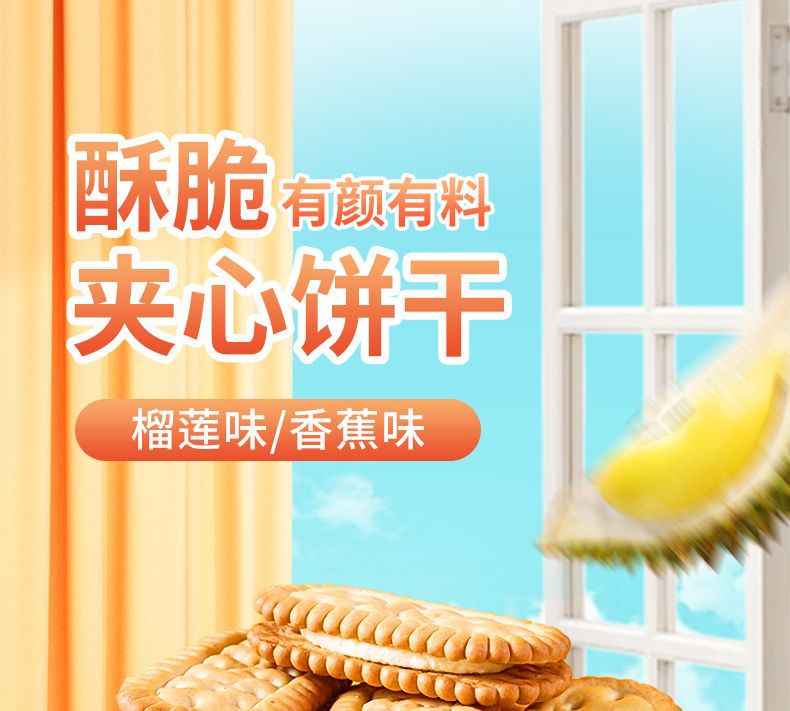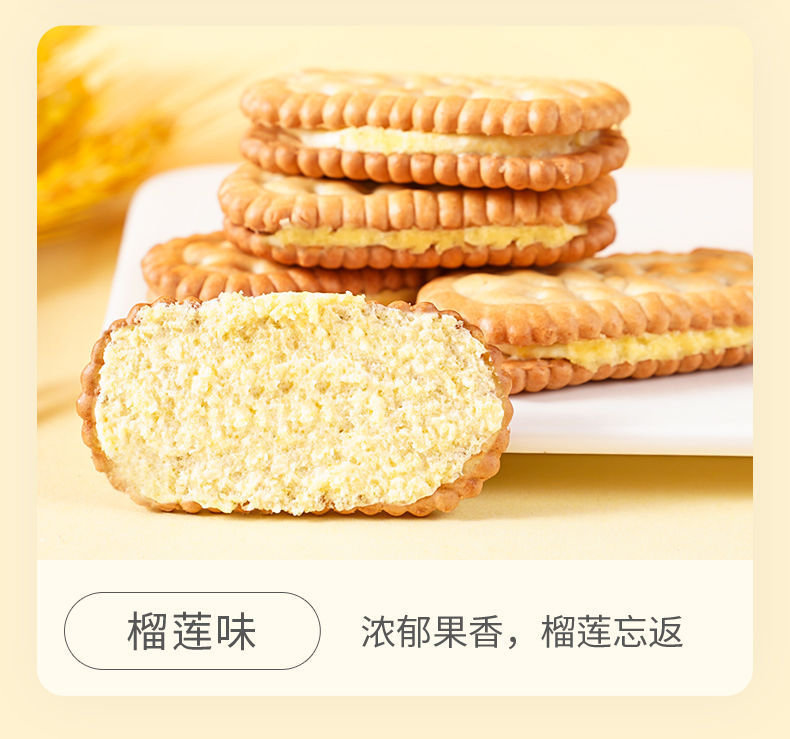 【水果与饼干的碰撞!榴莲香蕉夹心饼干休闲零食】酥酥脆脆唇齿留香,色泽金黄嚼劲十足,浓郁果香口感丰富,传统怀旧休闲儿童年零食早餐儿童营养品健康
