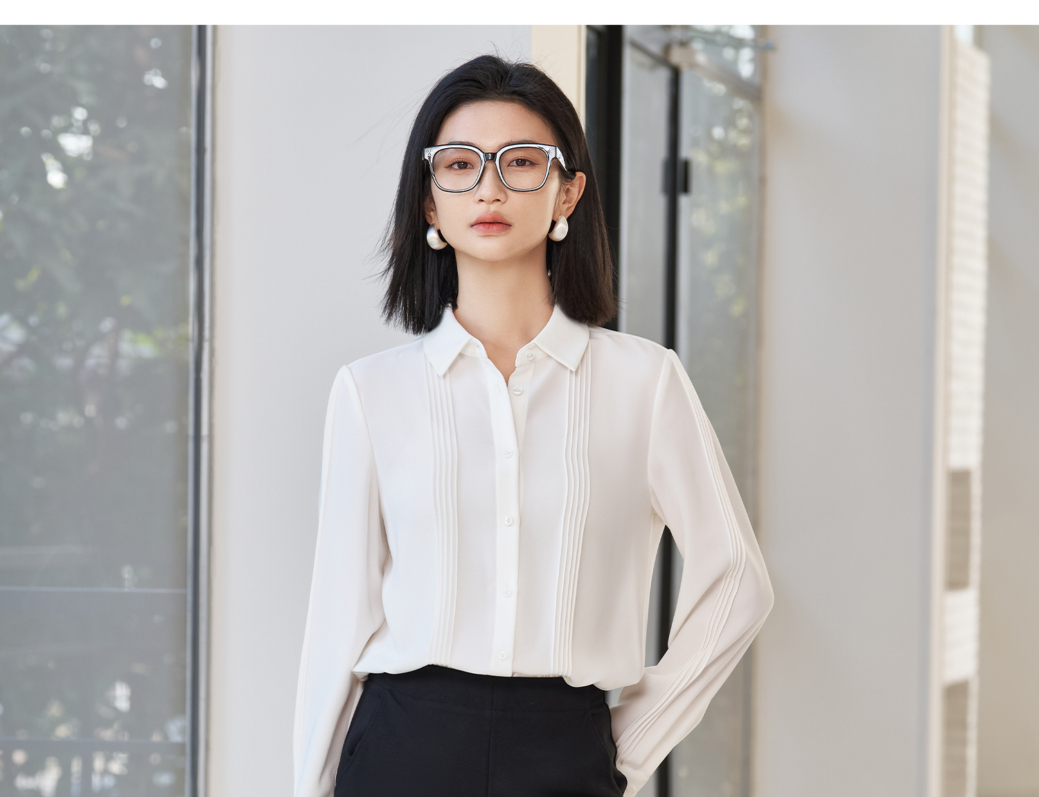 「风琴褶皱」压褶衬衫 前幅立体压褶 百搭不出错气质单品 米思阳2026春季新款时尚轻奢衬衫简约压褶设计感休闲上衣女款5177