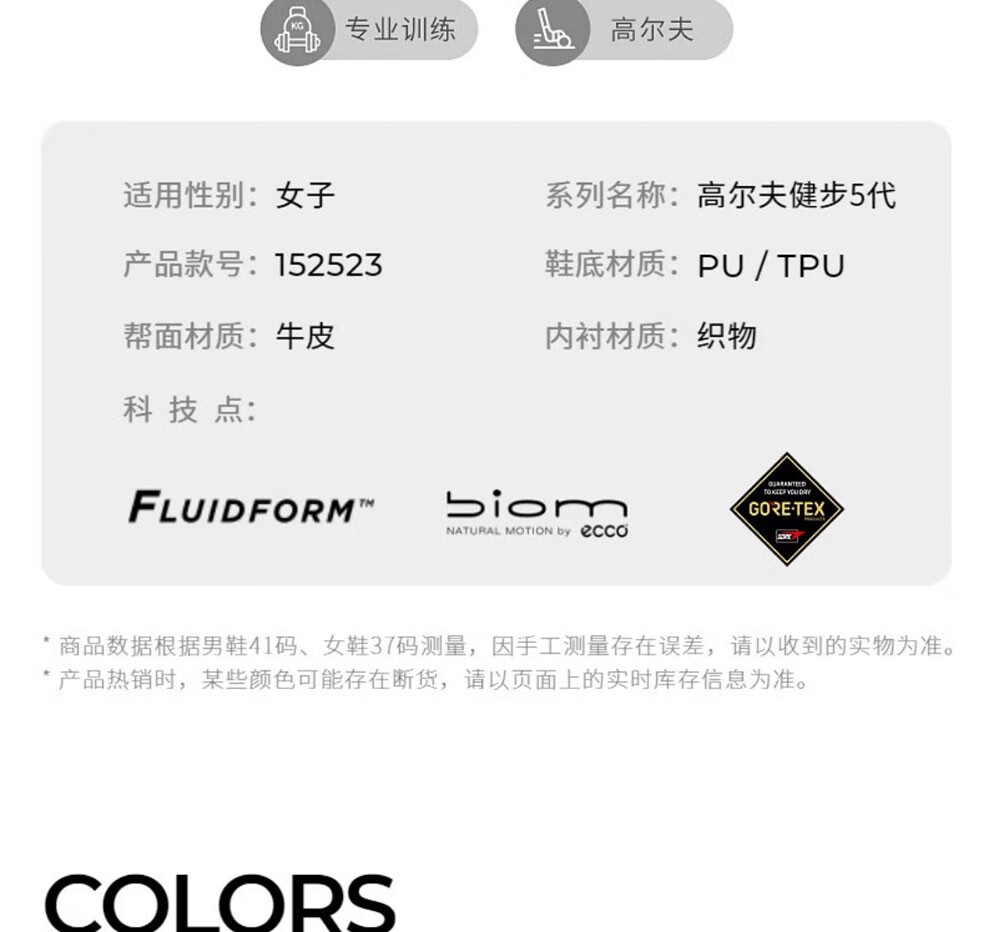 【高尔夫健步G5】ECCO爱步女子高尔夫球鞋有钉152523透气排湿