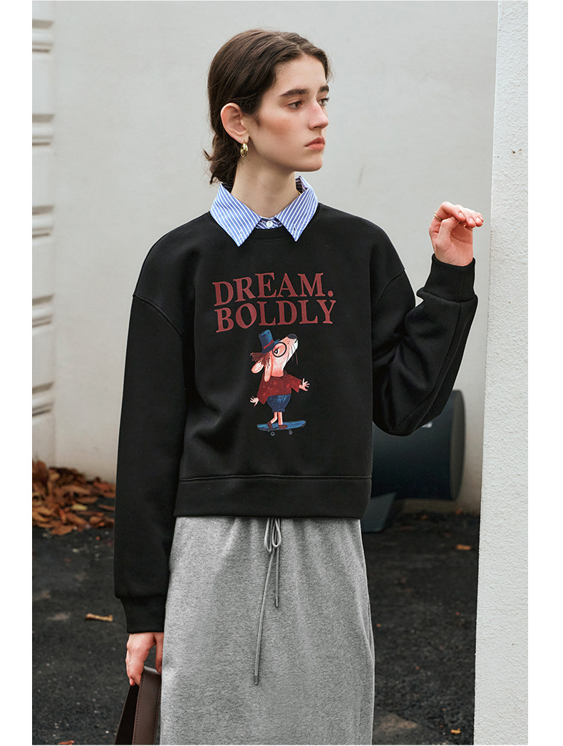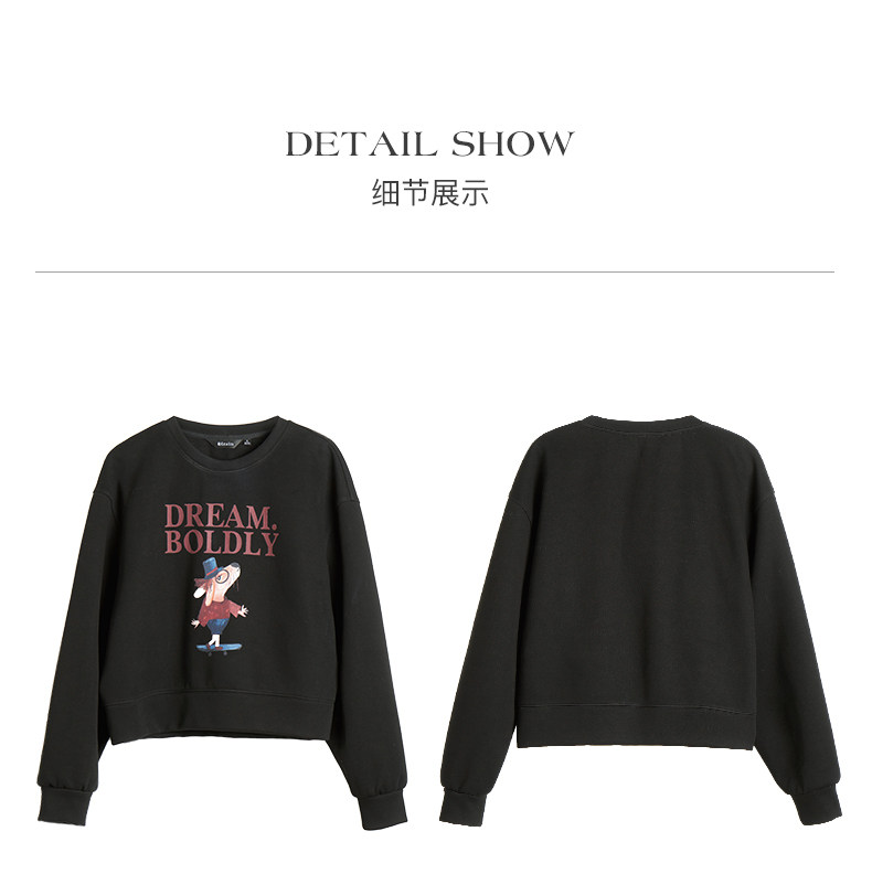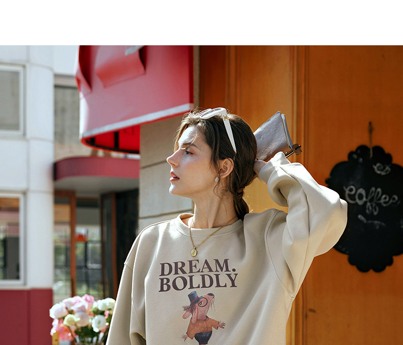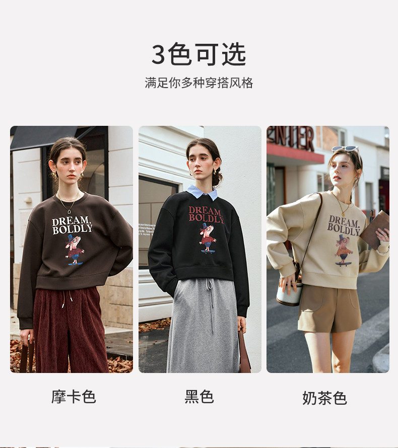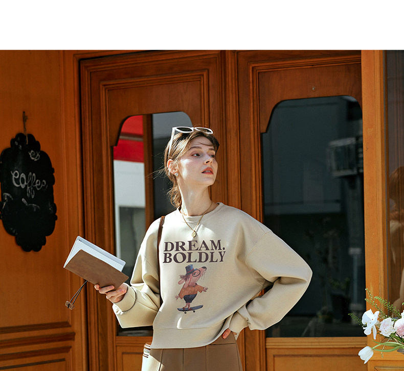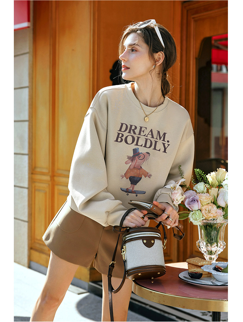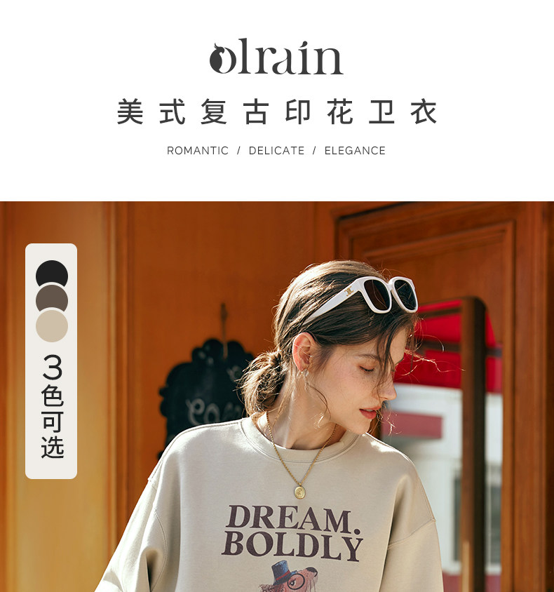 OLrain欧芮儿美式复古卫衣女早秋2024年新款宽松印花小个子上衣