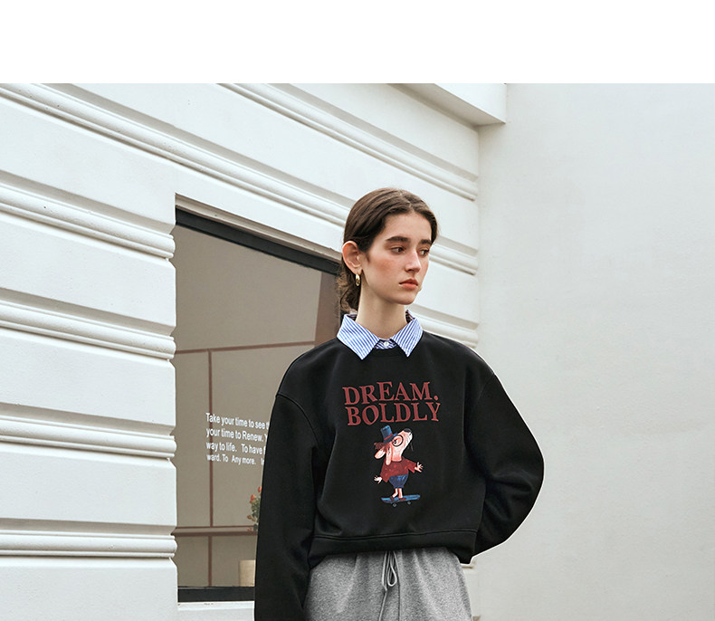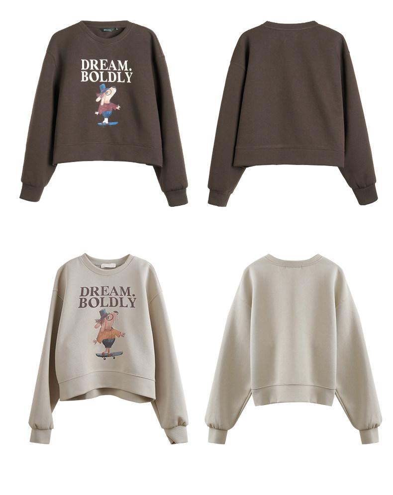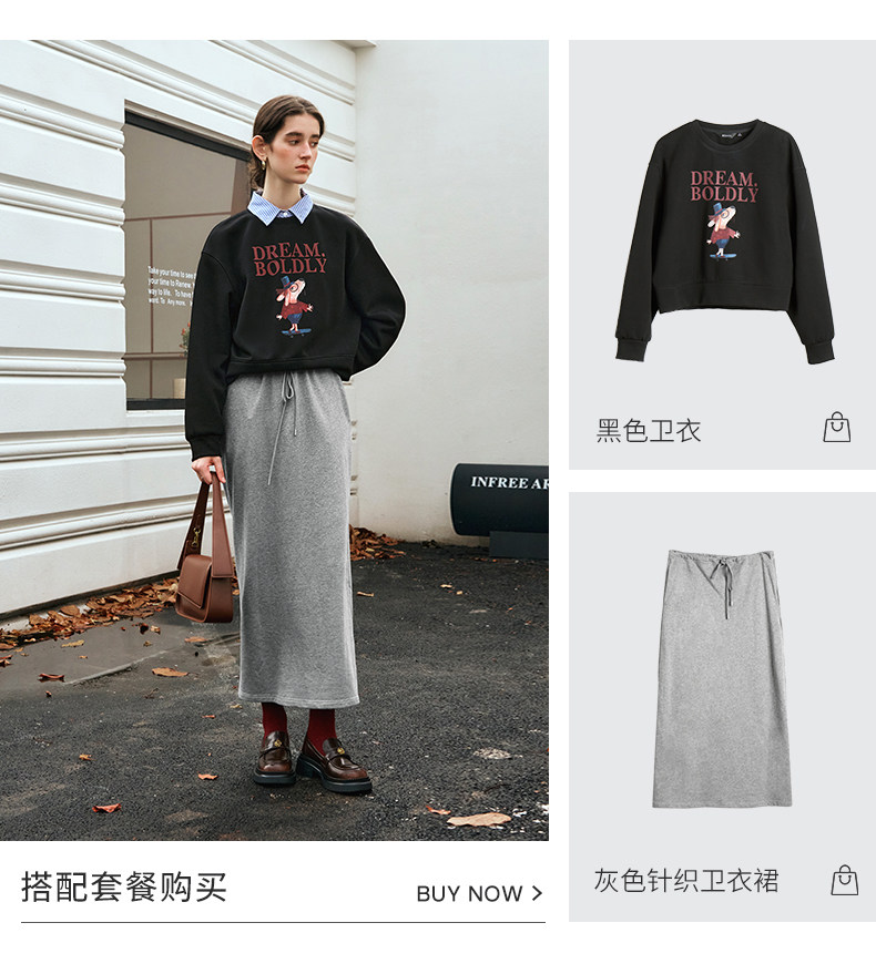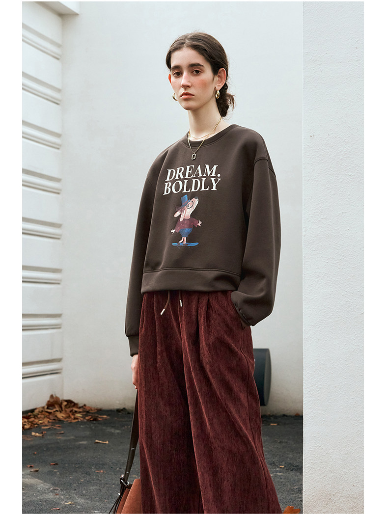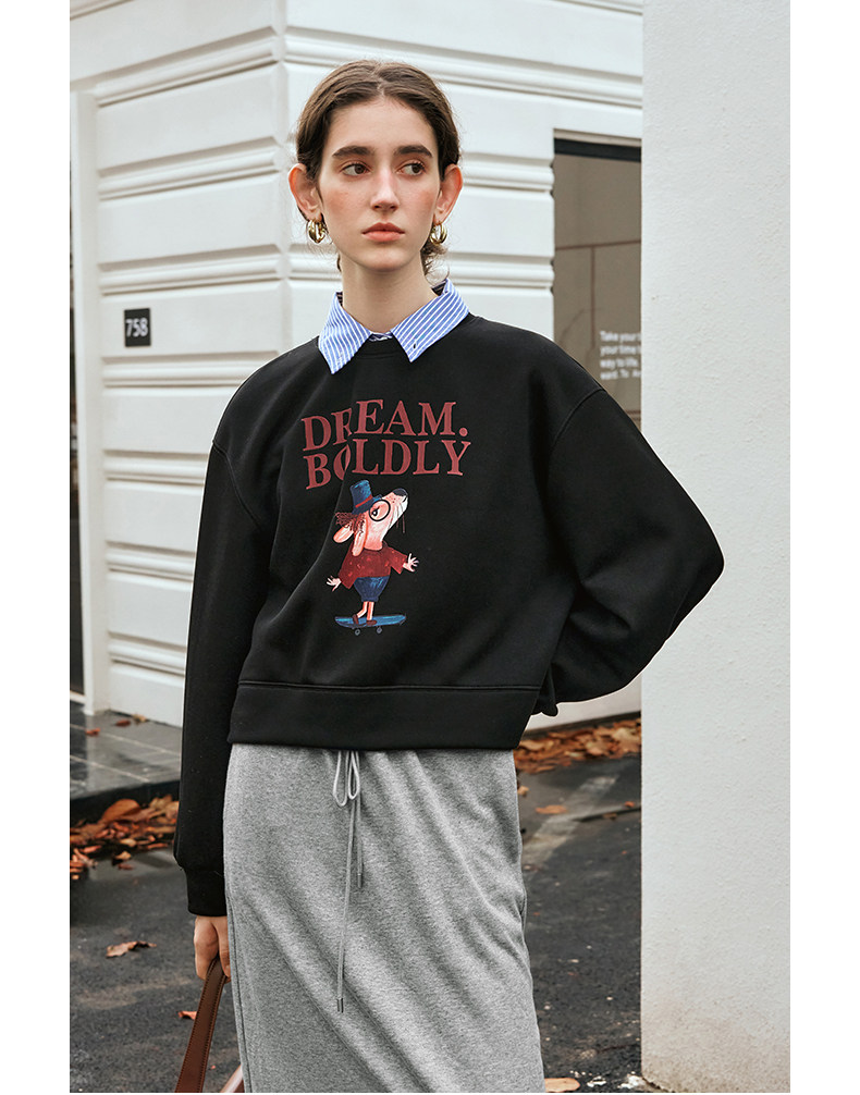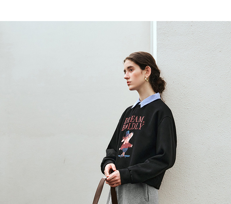 OLrain欧芮儿美式复古卫衣女早秋2024年新款宽松印花小个子上衣