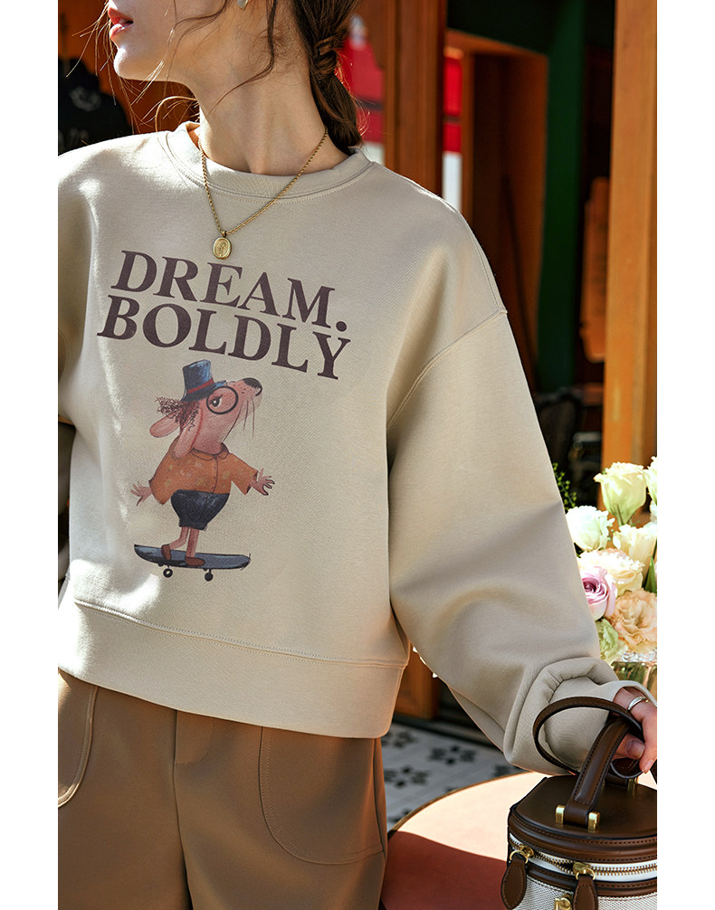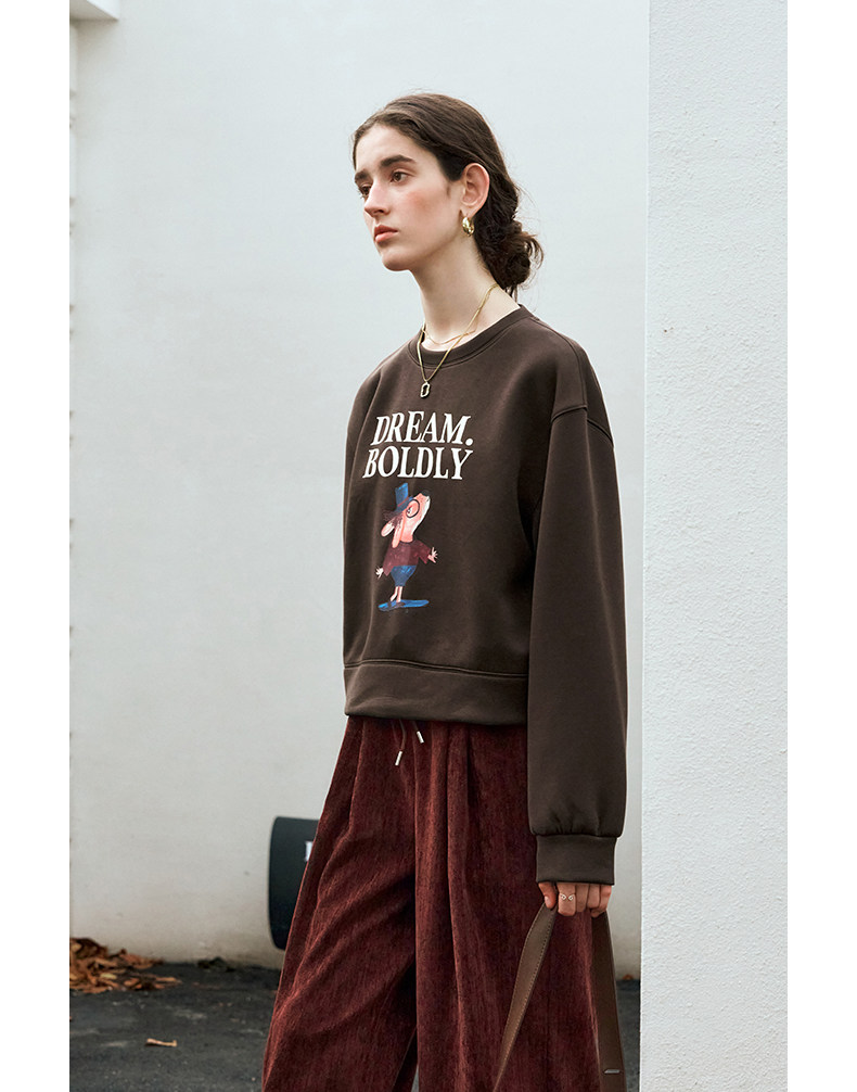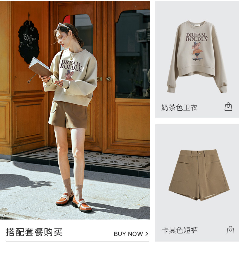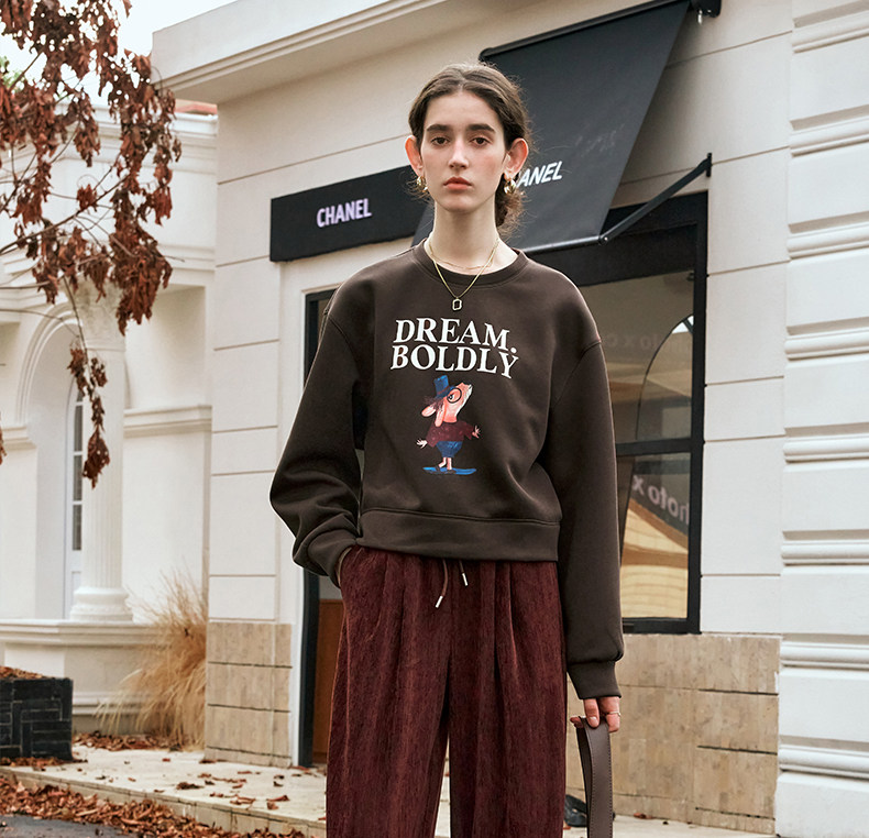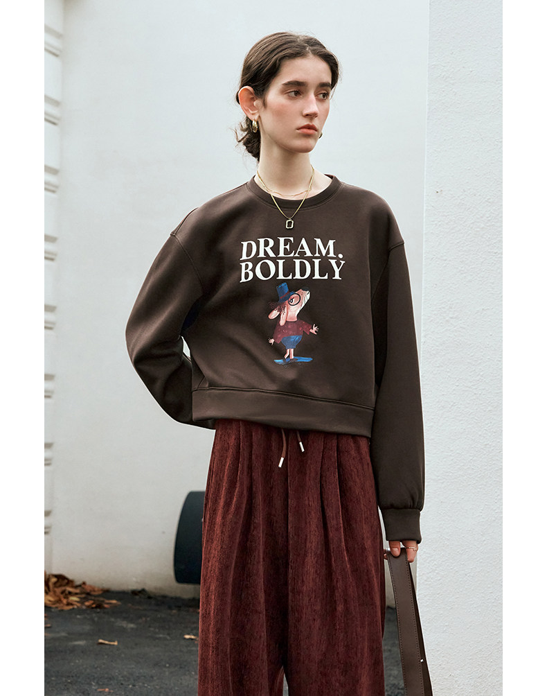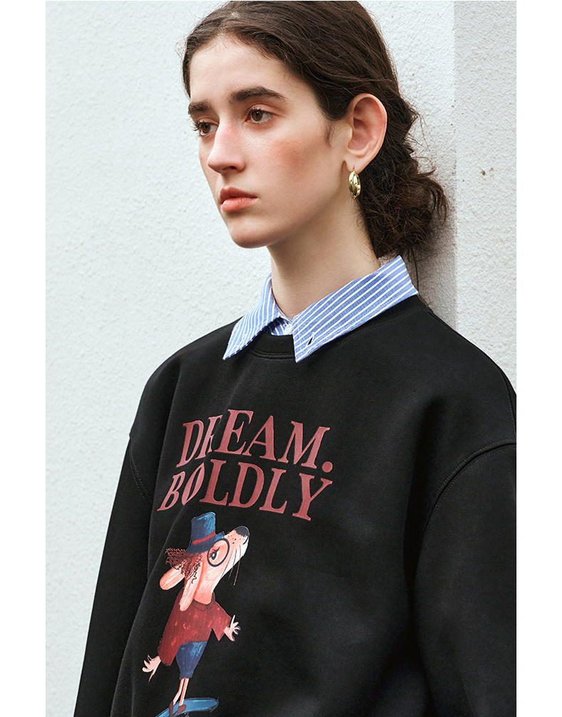 OLrain欧芮儿美式复古卫衣女早秋2024年新款宽松印花小个子上衣