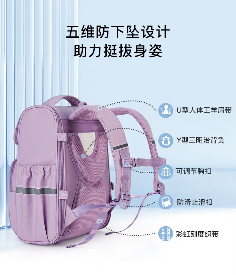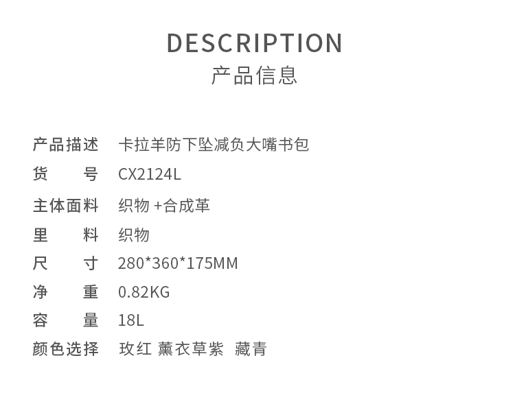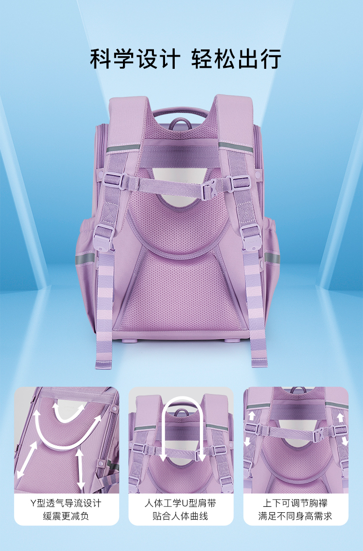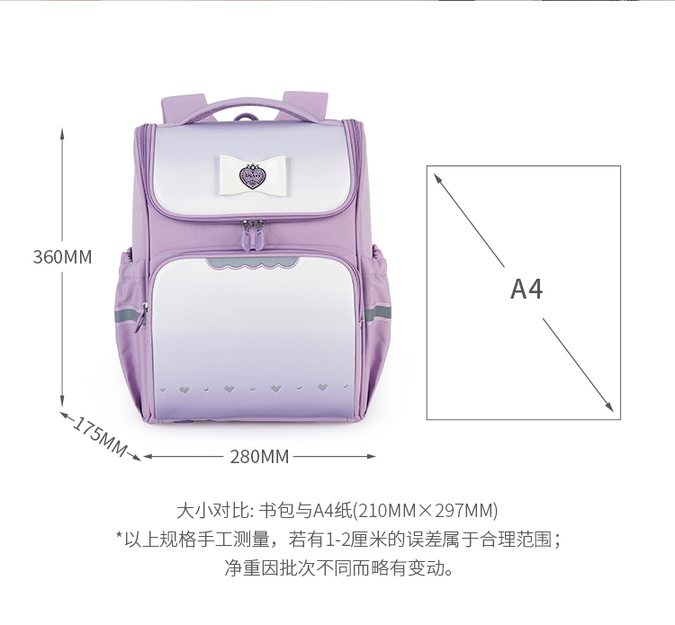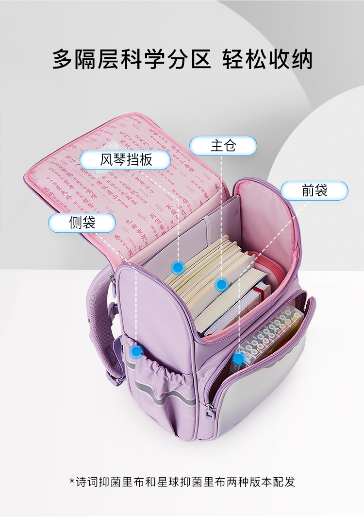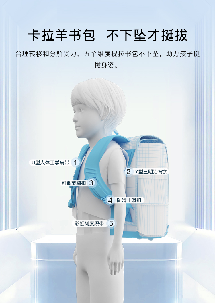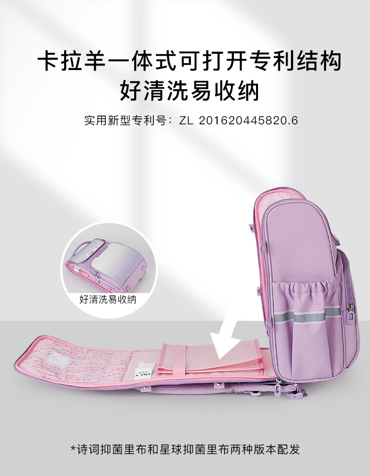 卡拉羊1-4年级18L小学生防下坠减负男女大容量防水双肩大嘴书包星梦缘系列CX2124L