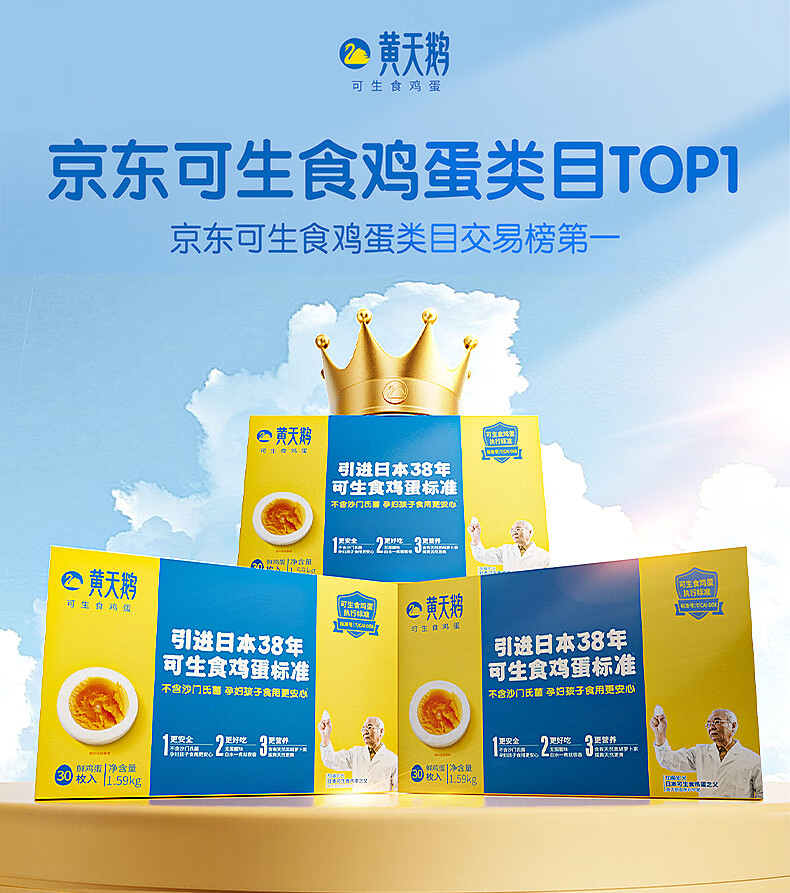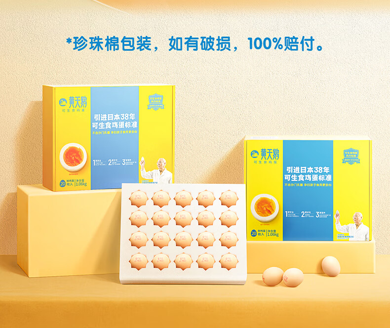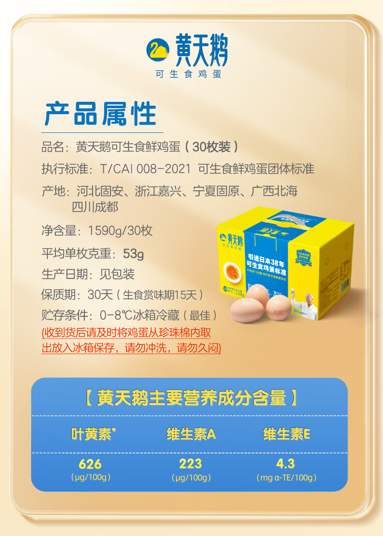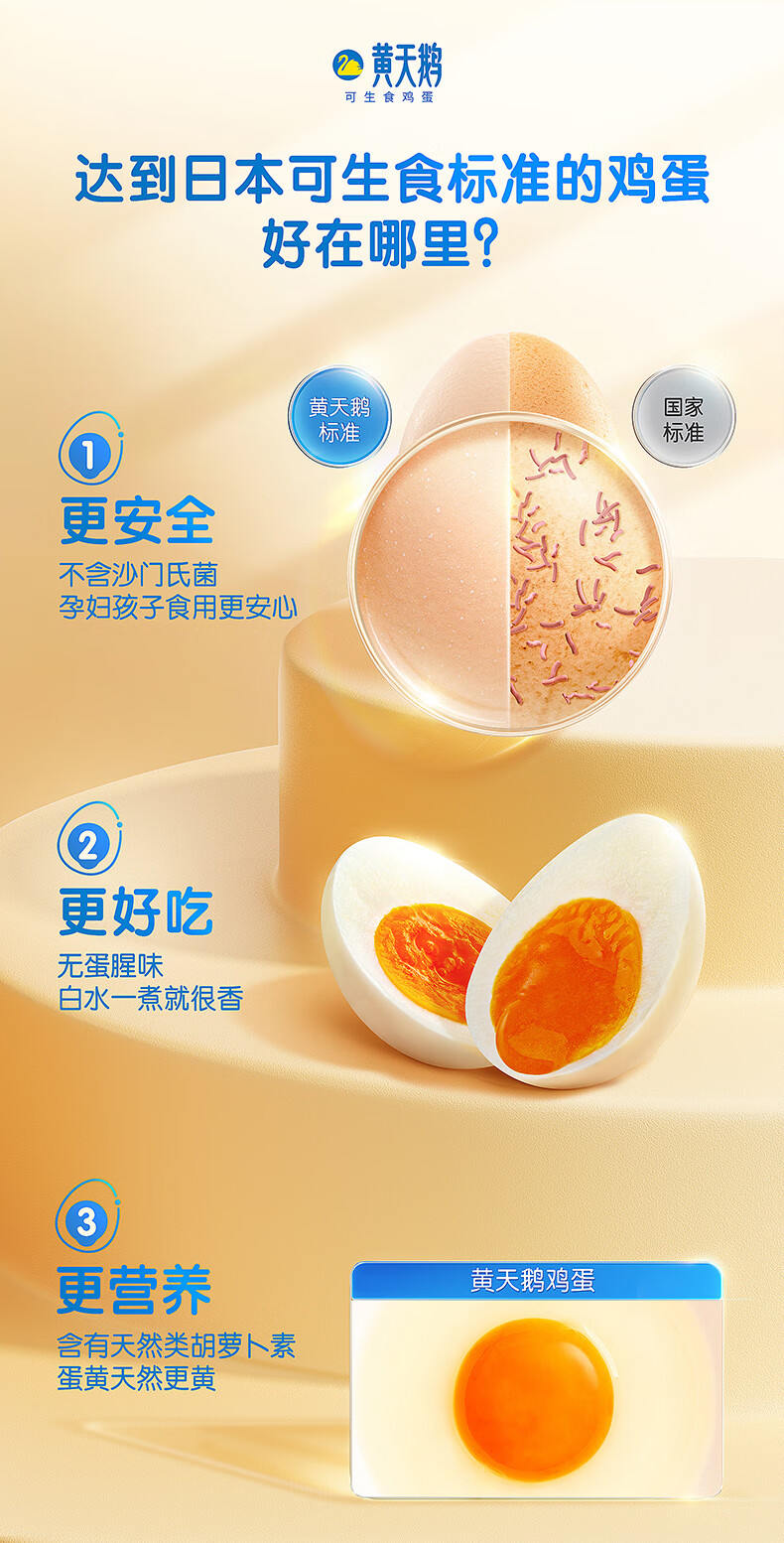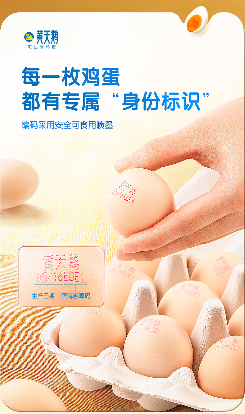 黄天鹅达到可生食鸡蛋标准 不含沙门氏菌健康轻食1.59kg/盒 30枚礼盒装