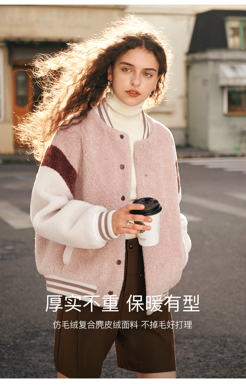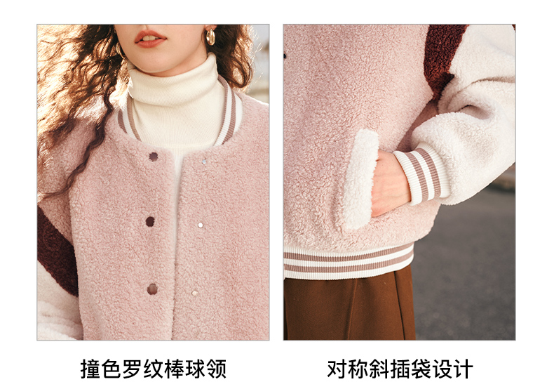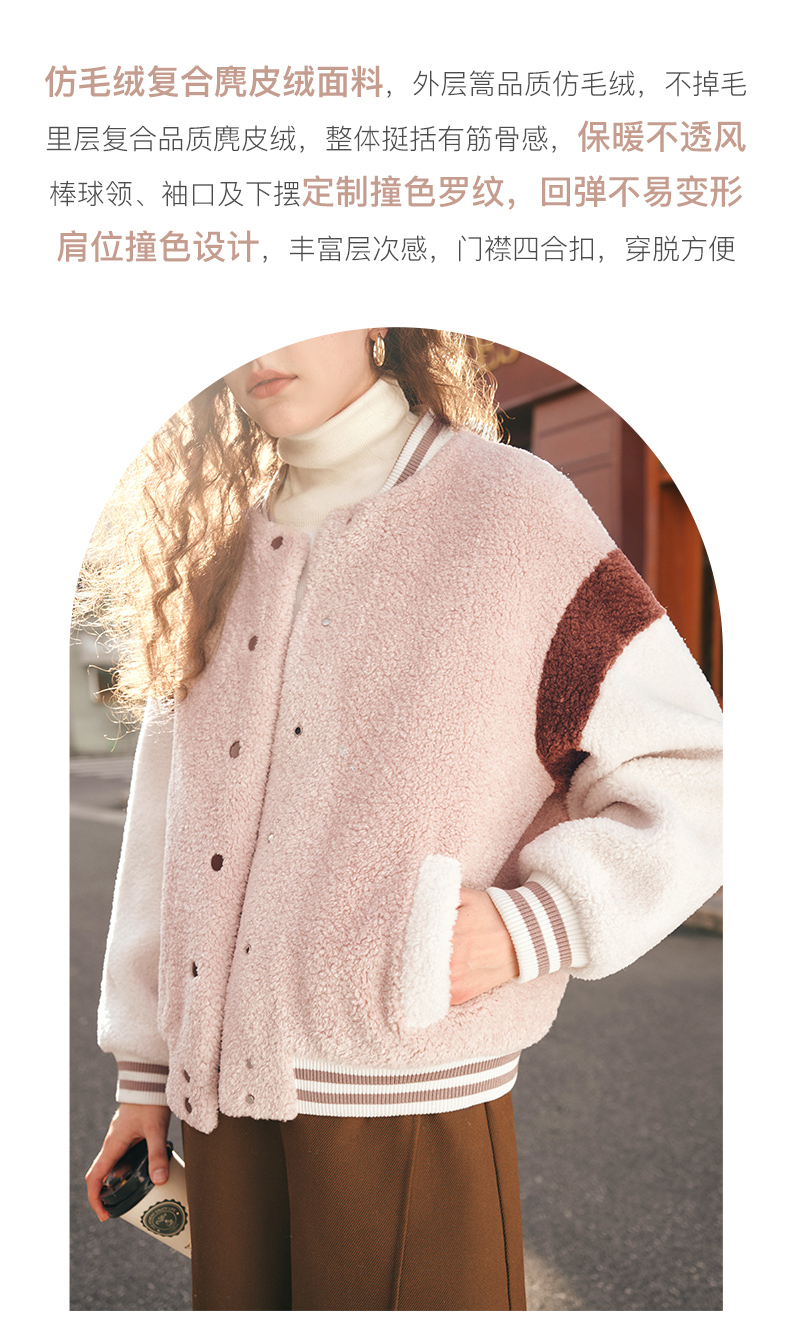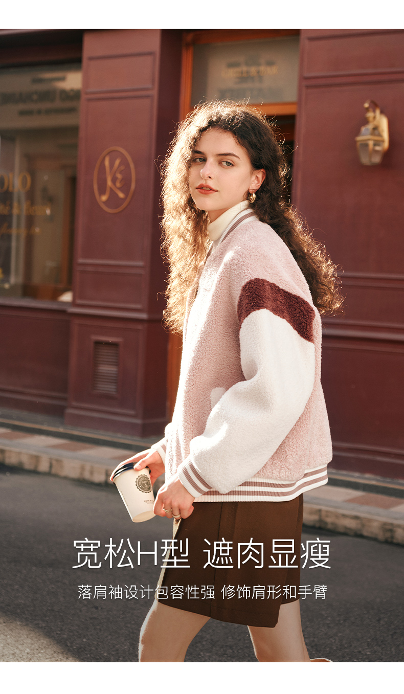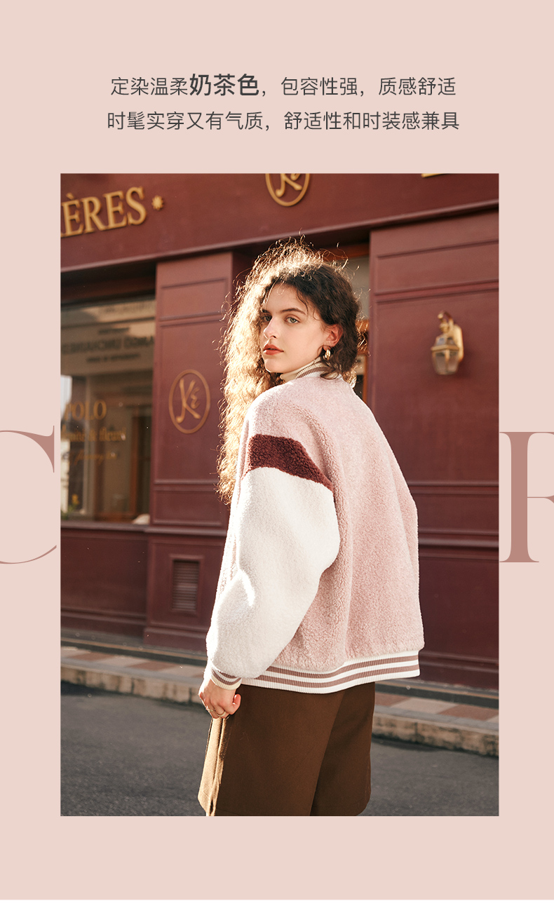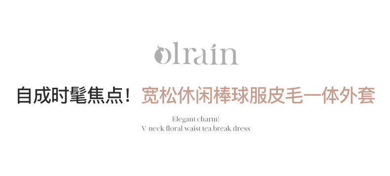 OLrain欧芮儿奶茶色皮草外套女秋冬2023新款休闲皮毛一体棒球服
