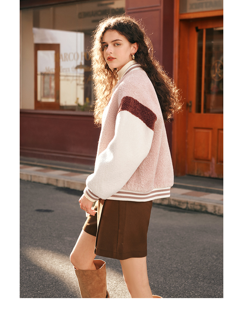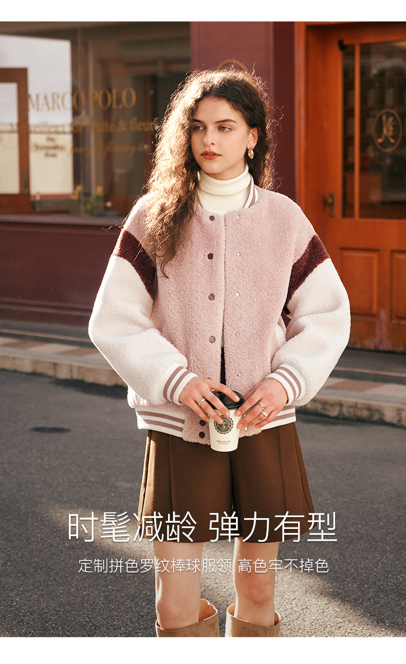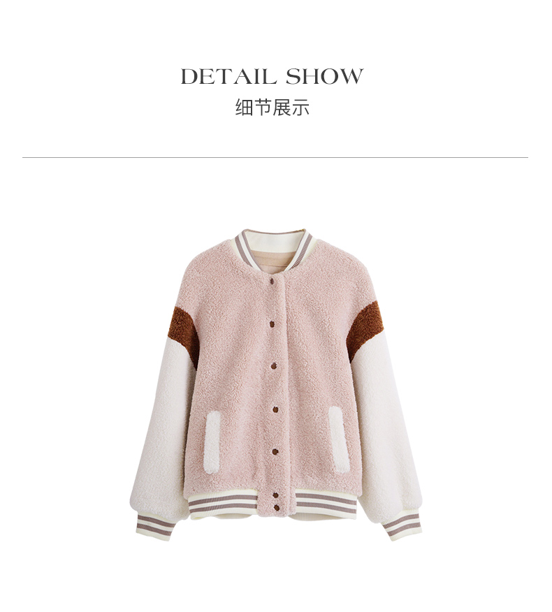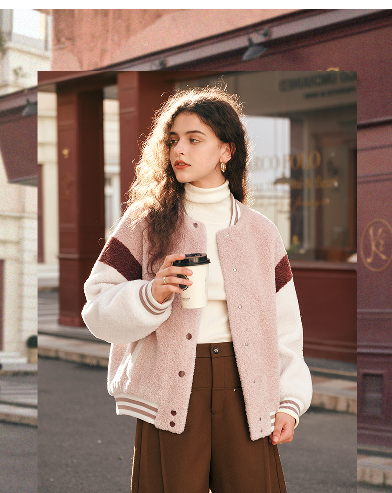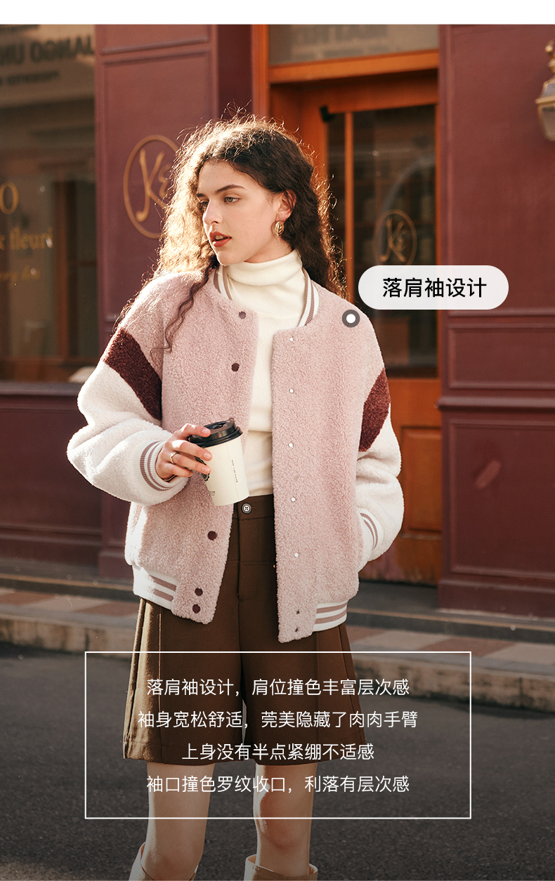 OLrain欧芮儿奶茶色皮草外套女秋冬2023新款休闲皮毛一体棒球服