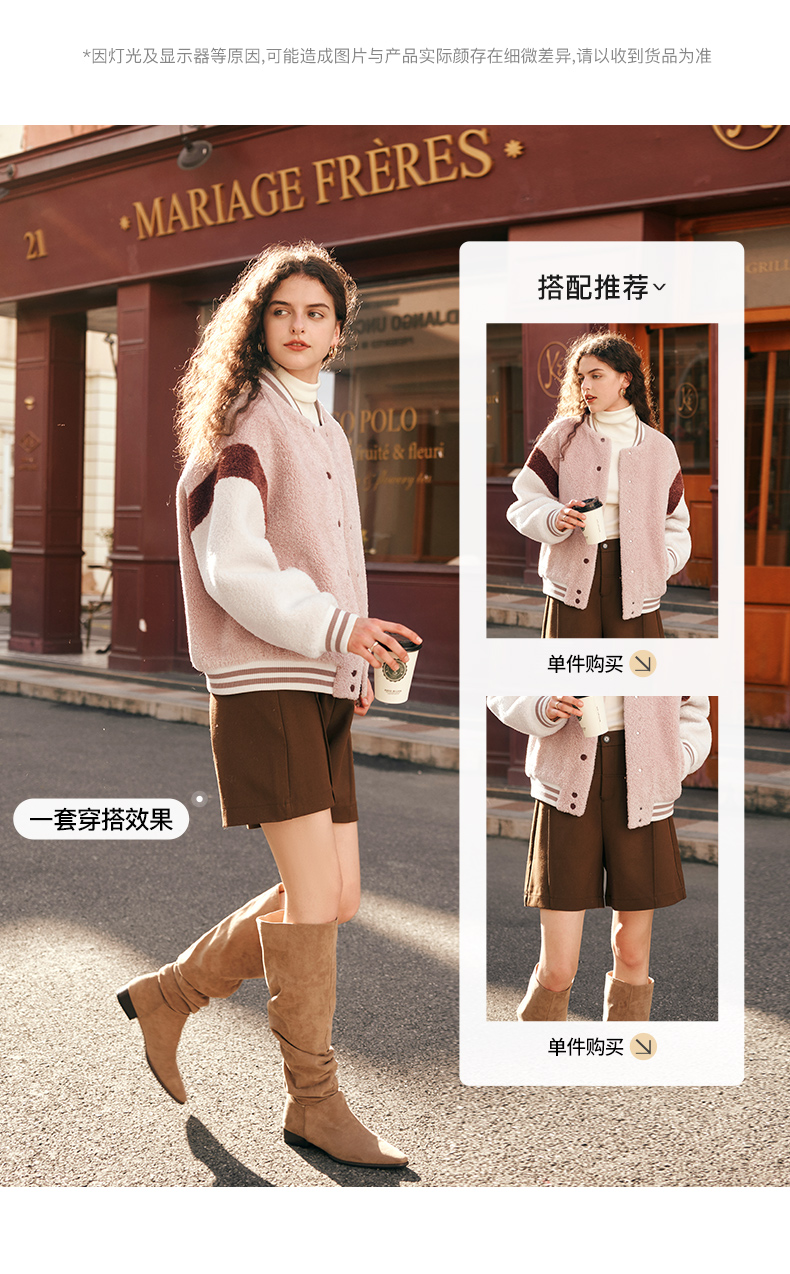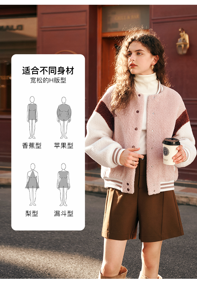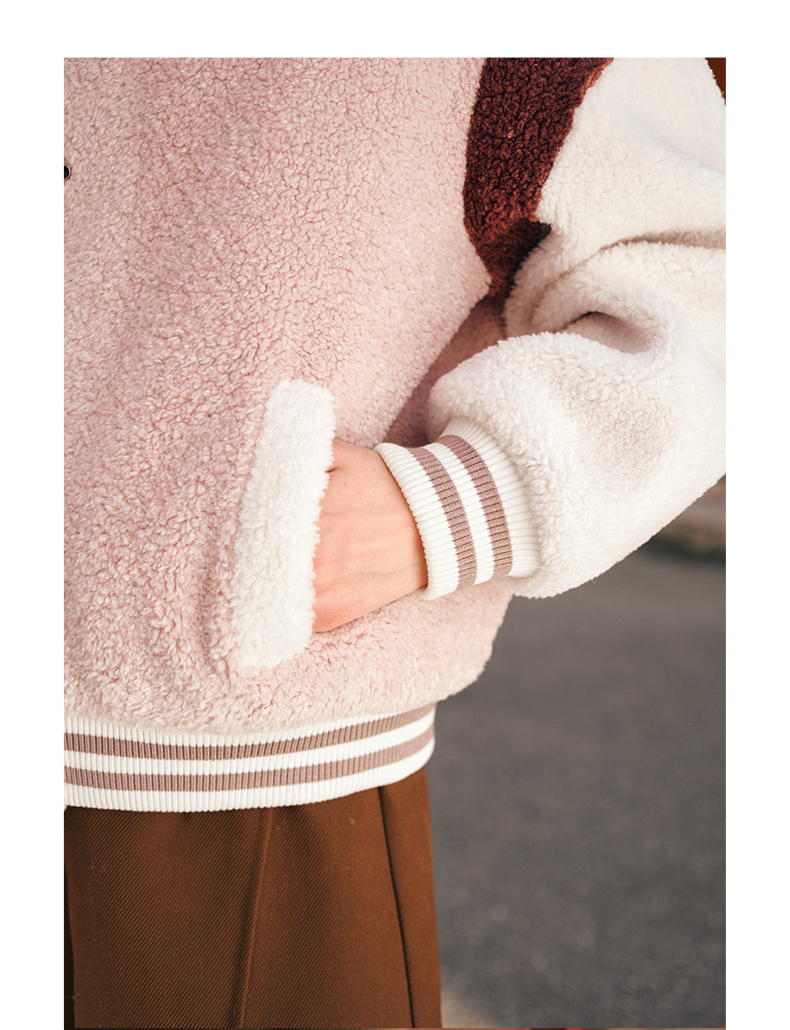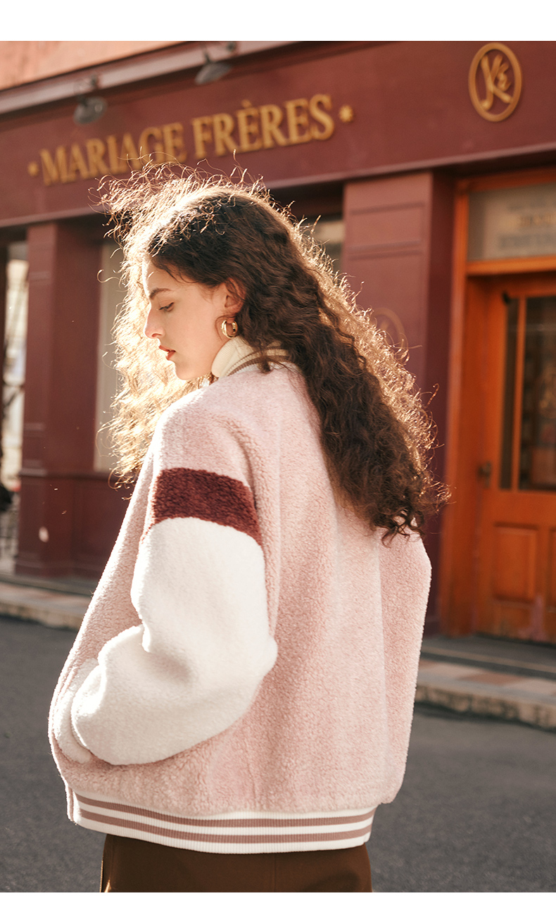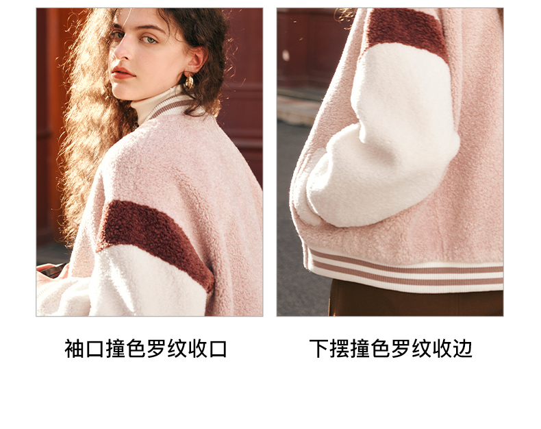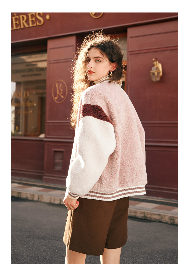 OLrain欧芮儿奶茶色皮草外套女秋冬2023新款休闲皮毛一体棒球服