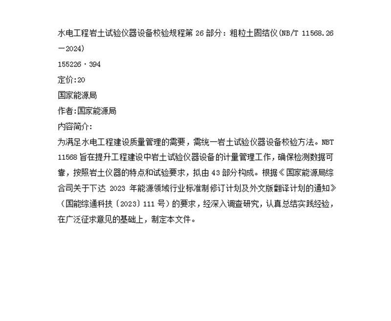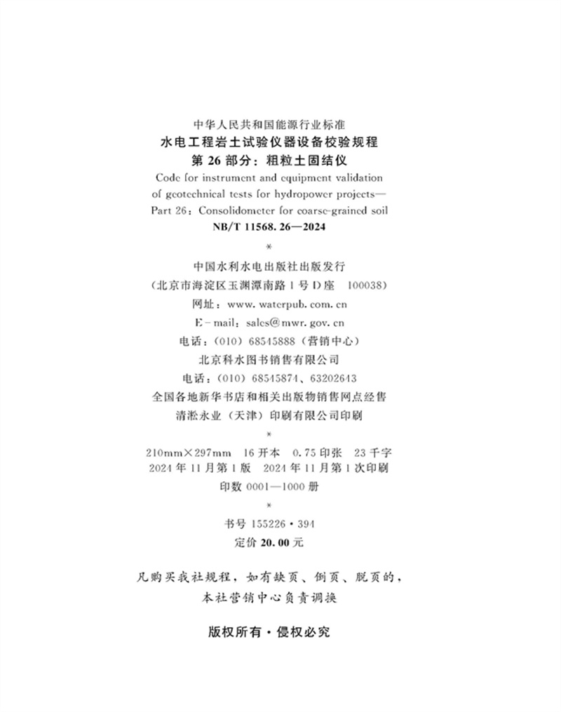 水电工程岩土试验仪器设备校验规程第26部分:粗粒土固结仪(NB/T 11568.26—2024)