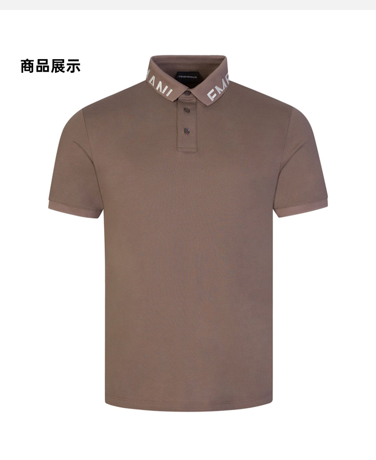 EMPORIO ARMANI 阿玛尼 男士标志衣领丝光珠地布短袖 Polo 衫 浅咖色 3R1FG4 1JTKZ 01F0