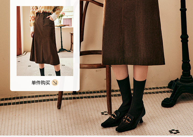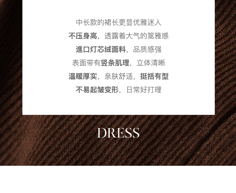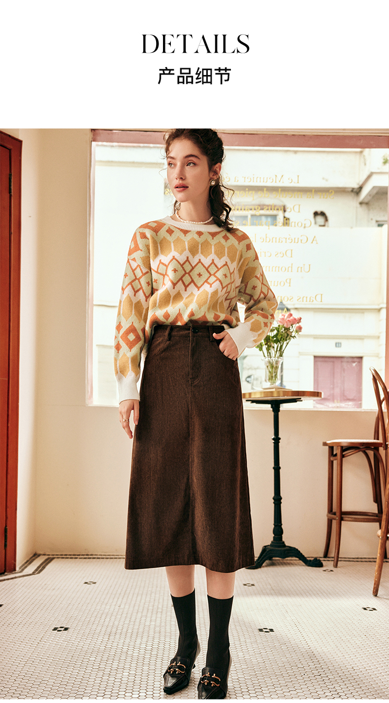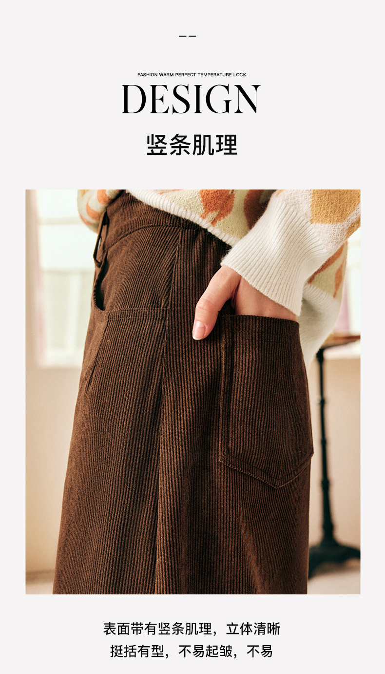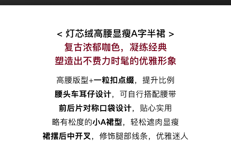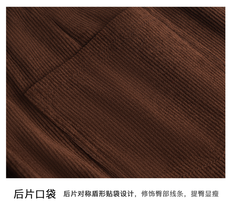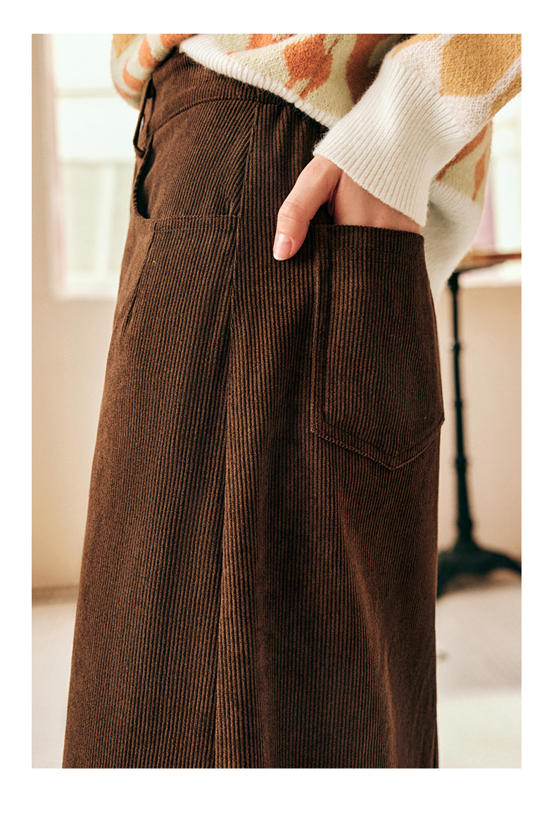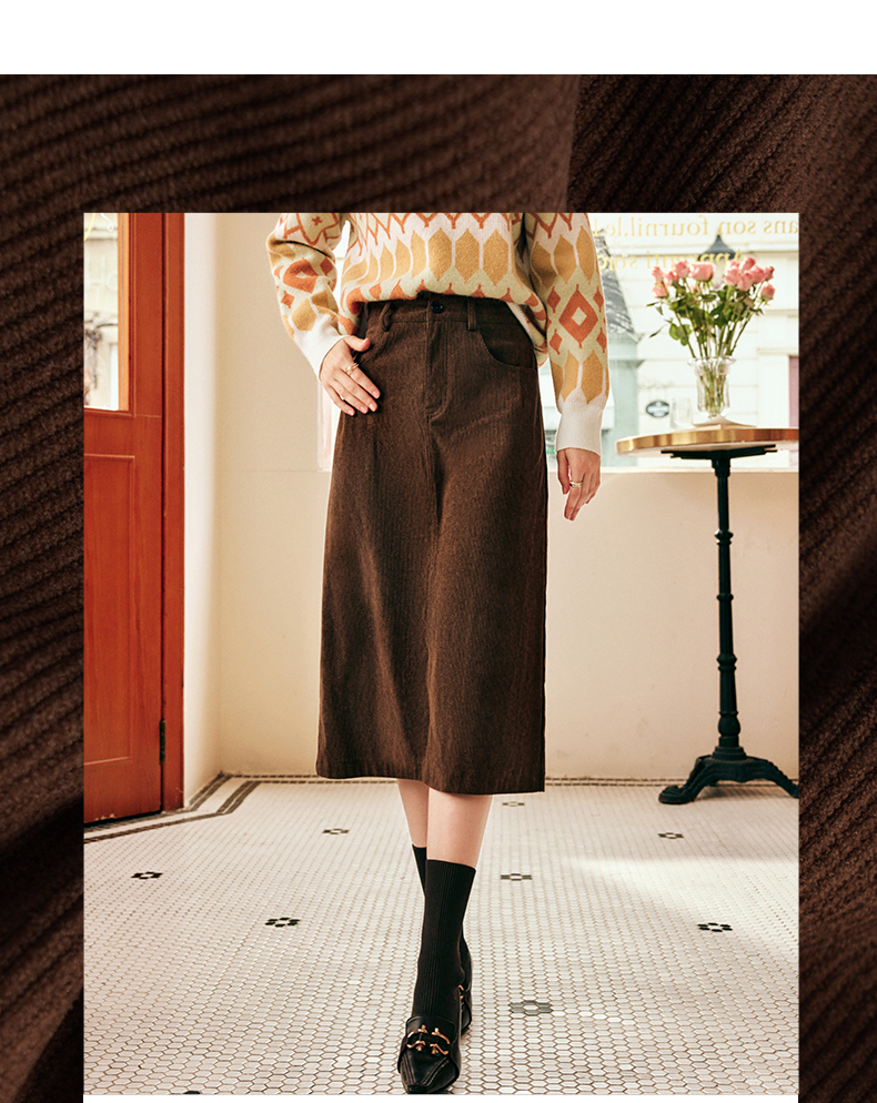 OLrain欧芮儿法式咖色灯芯绒半身裙女秋冬2022新款高腰开叉A字裙