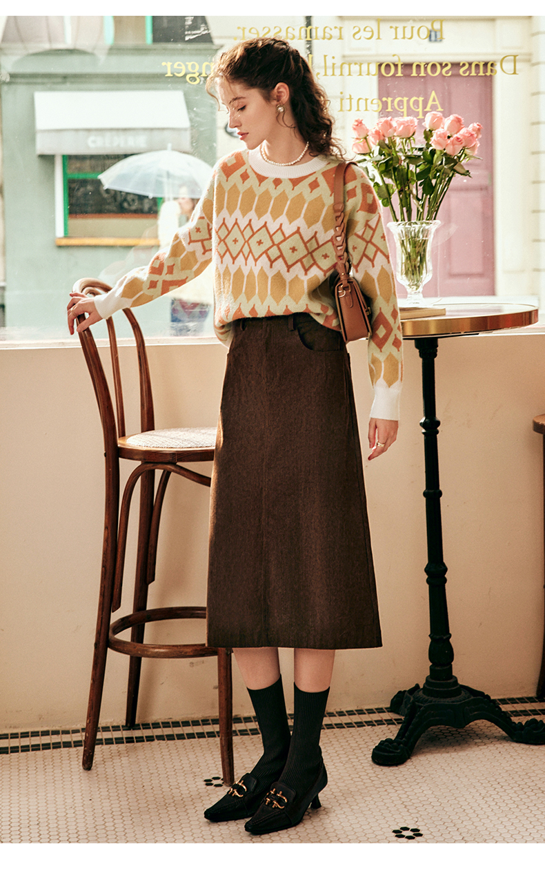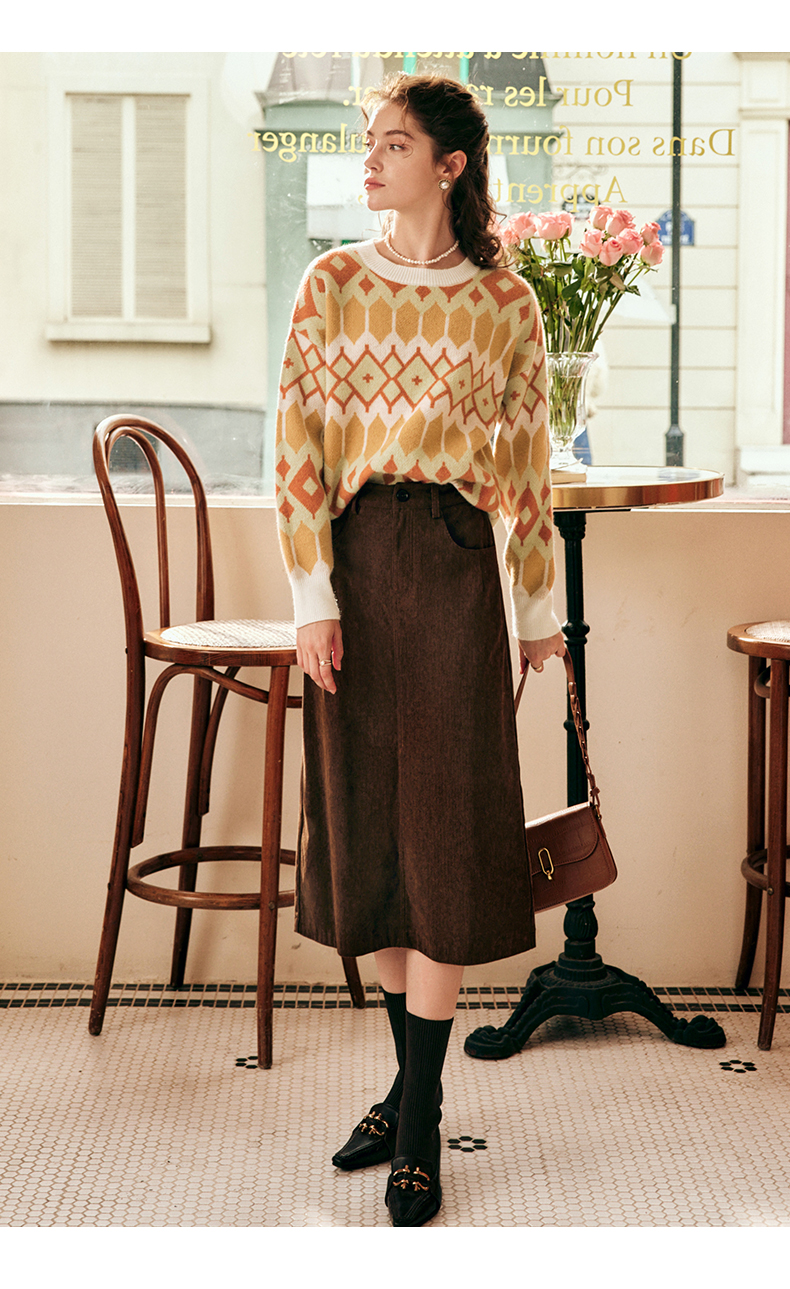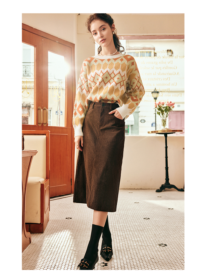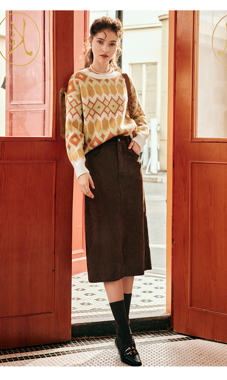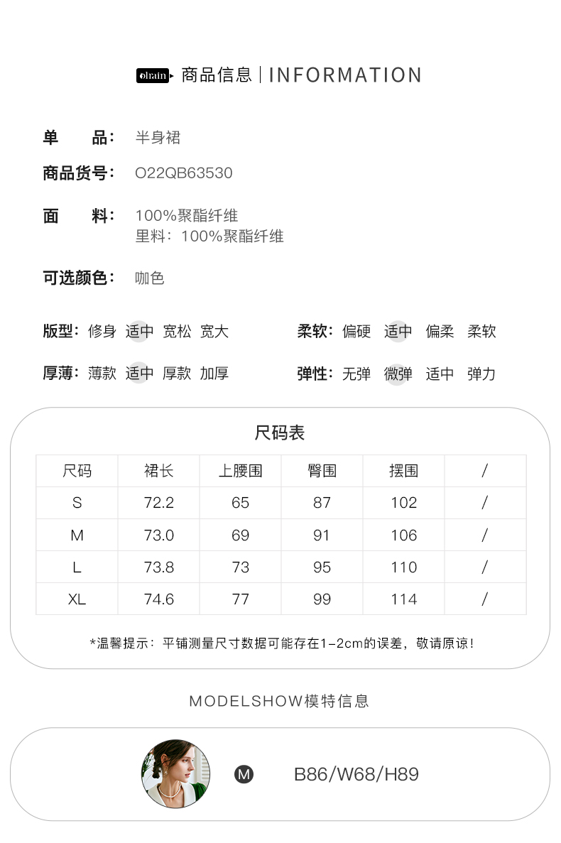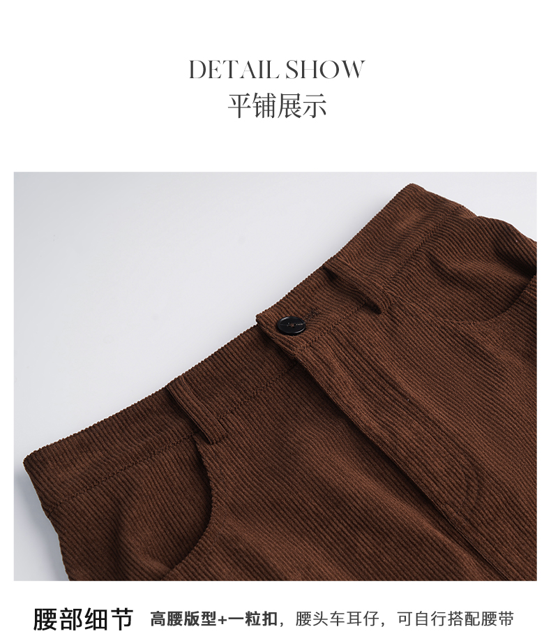 OLrain欧芮儿法式咖色灯芯绒半身裙女秋冬2022新款高腰开叉A字裙