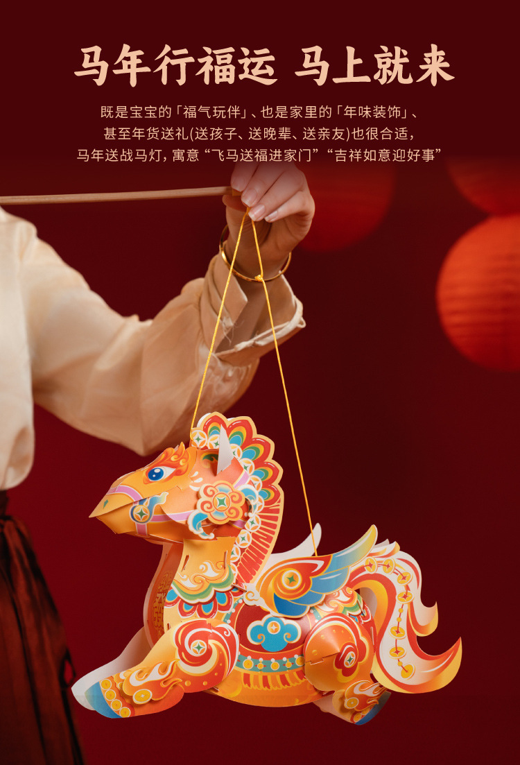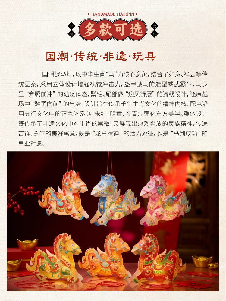 【非遗国潮❗️马年手提战马灯】送灯送杆,传统底蕴,文化传承,灵动仙气,守护福气!手工DIY材料幼儿园益智手持发光花灯笼马年闹元宵2026