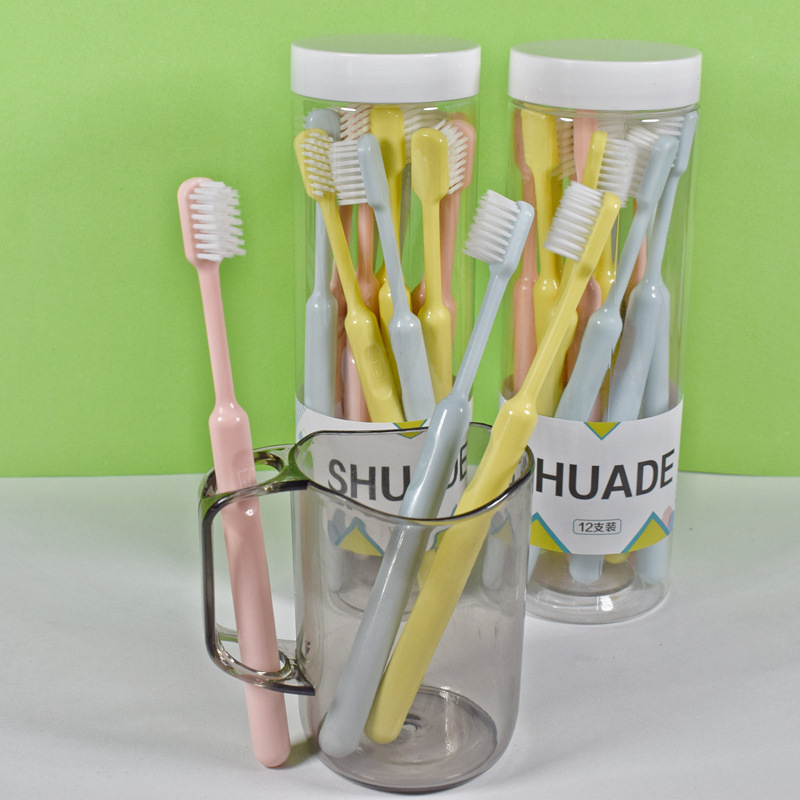 「12支桶装!9.9元包邮」收纳盒糖果色颜值成人家用家庭装小头牙刷软毛口腔护理