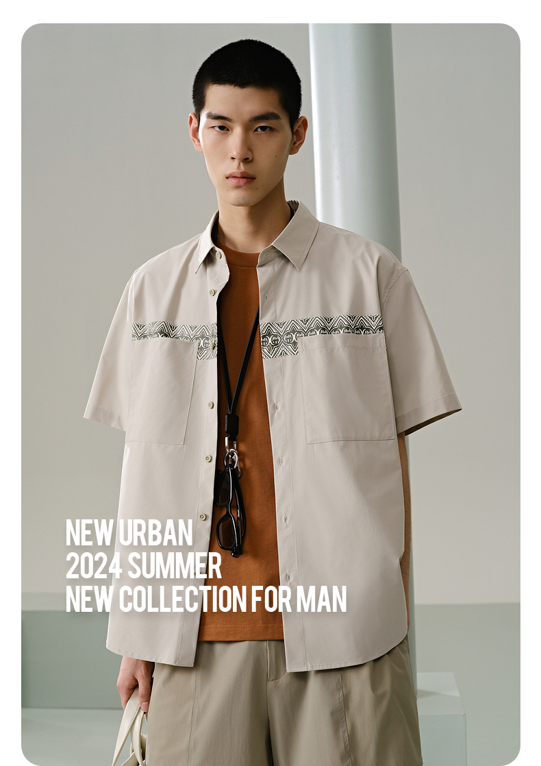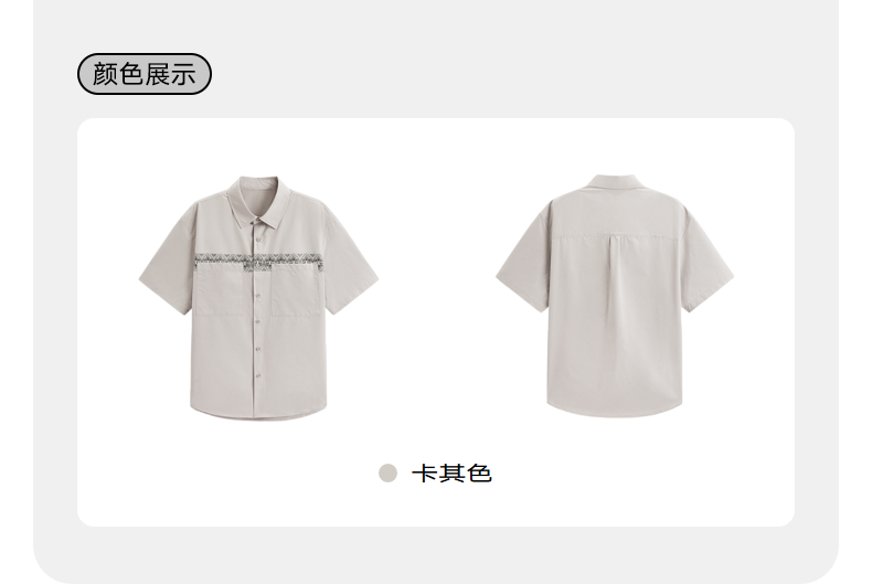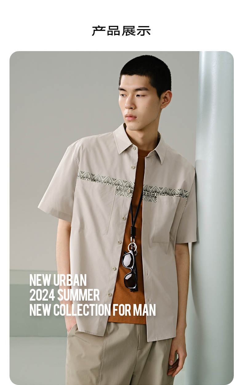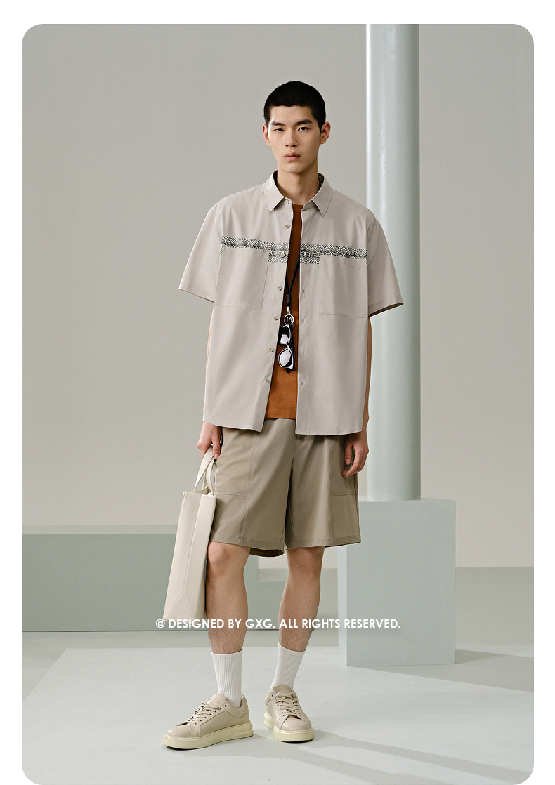GXG男装 卡其色简约图案短袖衬衫24年夏热卖衬衫G24X232002