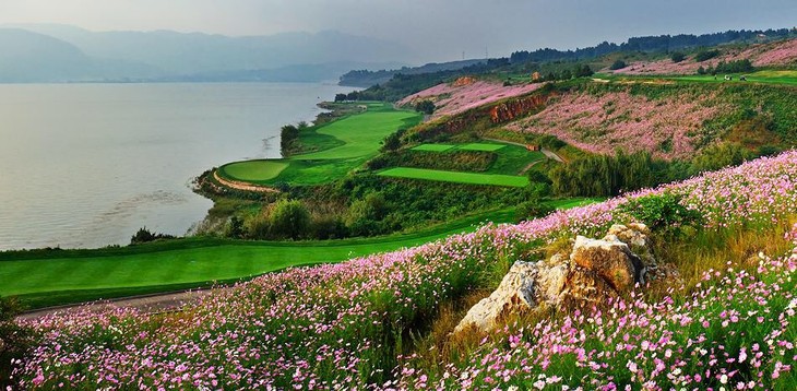 春城湖畔度假村,坐落于清澈迷人的昆明阳宗海湖畔,距离昆明市中心60公里。度假村群山怀抱,湖水清丽,昆明一年四季的明媚春光赋予了春城湖畔度假村得天独厚的优势,使之成为亚洲的高尔夫天堂及世界最优美的高尔夫球度假村之一。度假村由Jack Nicklaus设计,在99年6月刊的美国 《Golf Digest 》杂志中被评为中国及香港地区高尔夫球度假村中的冠军,并连续8年保持"亚洲最好球场"称号。春城湖畔度假村拥有山景和湖景两个著名的18洞高尔夫球场,春天来时,满山遍野的报春花、紫罗兰、八仙花含苞怒放,朵朵的花儿盈盈点点,散落在场内,整个球场如同镶嵌在湖畔山坡上的一块块绣花地毯,美丽的令人炫目。球场提供的是世界级的挥杆享受。