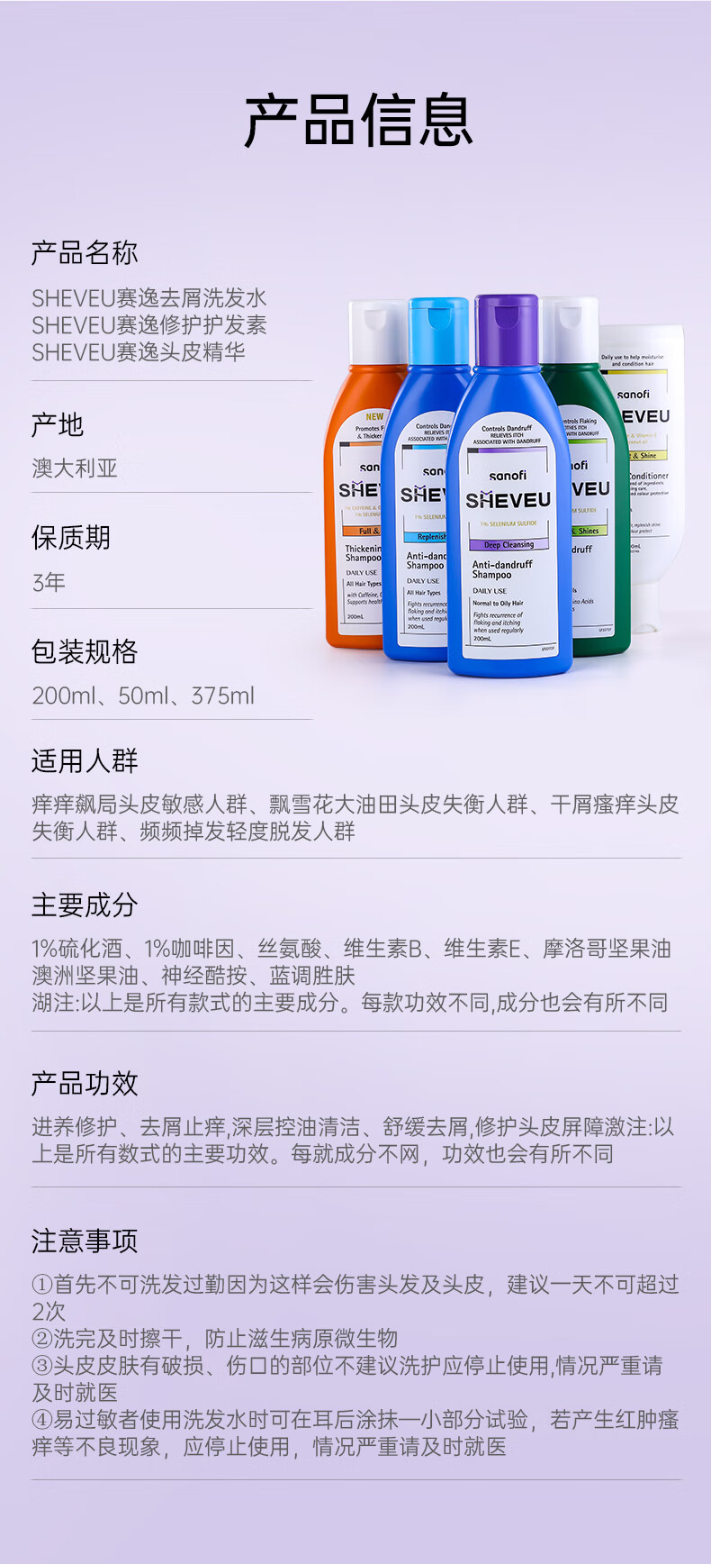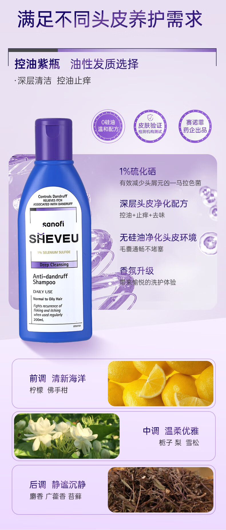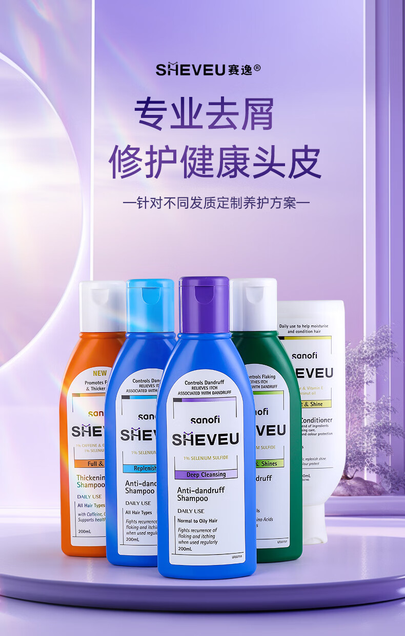 【跨境】赛逸Sheveu去屑控油紫瓶洗发水200ml/瓶(效期:2028-05)