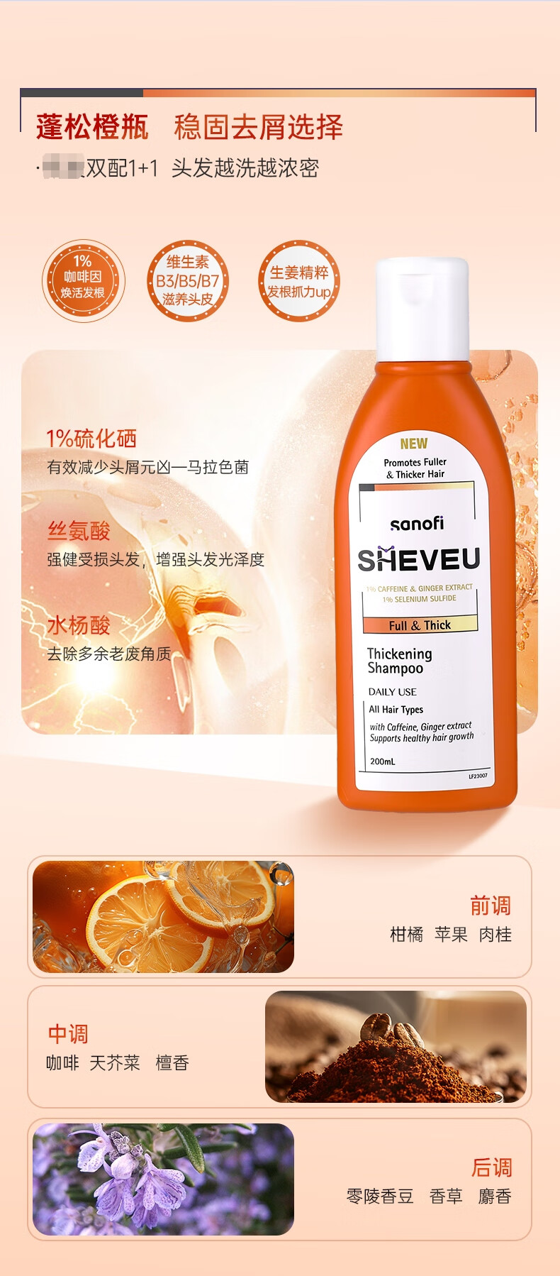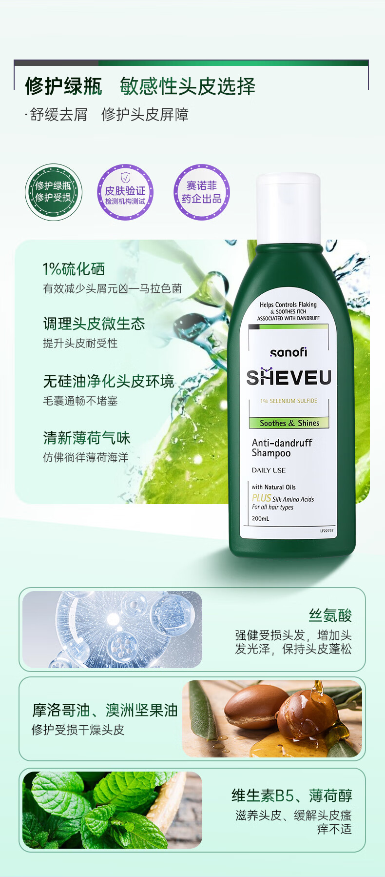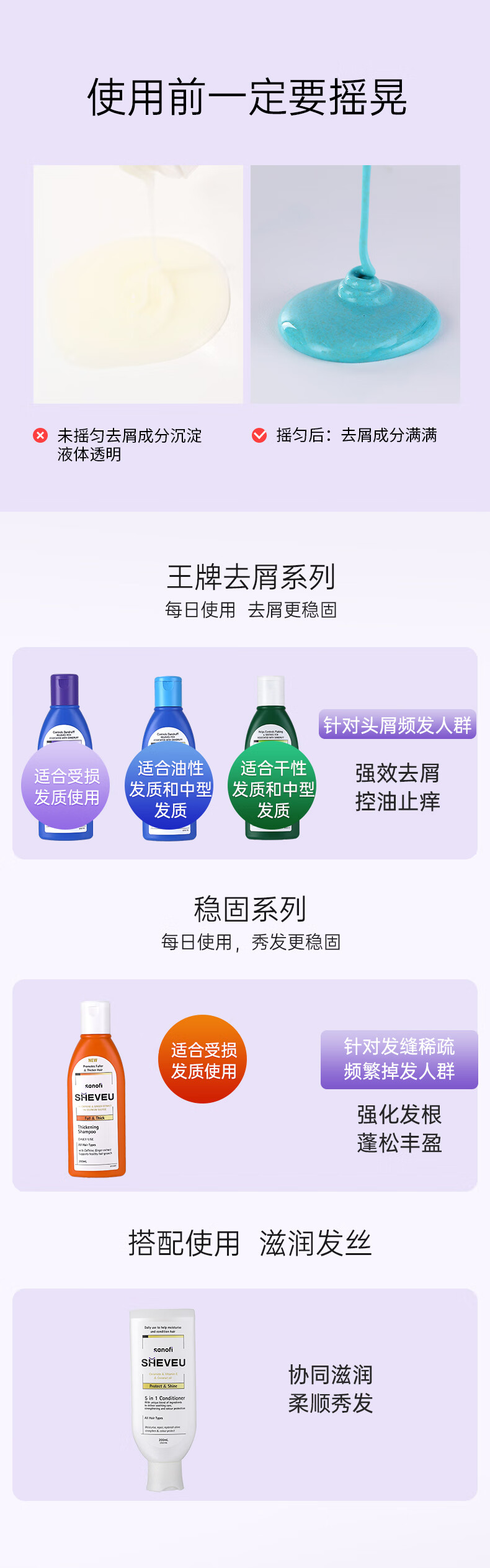 【跨境】赛逸Sheveu去屑控油紫瓶洗发水200ml/瓶(效期:2028-05)