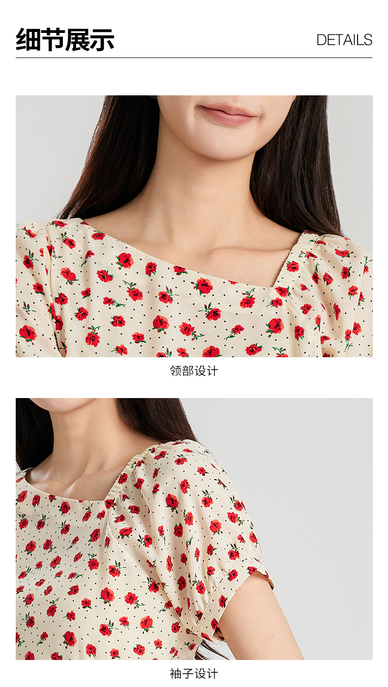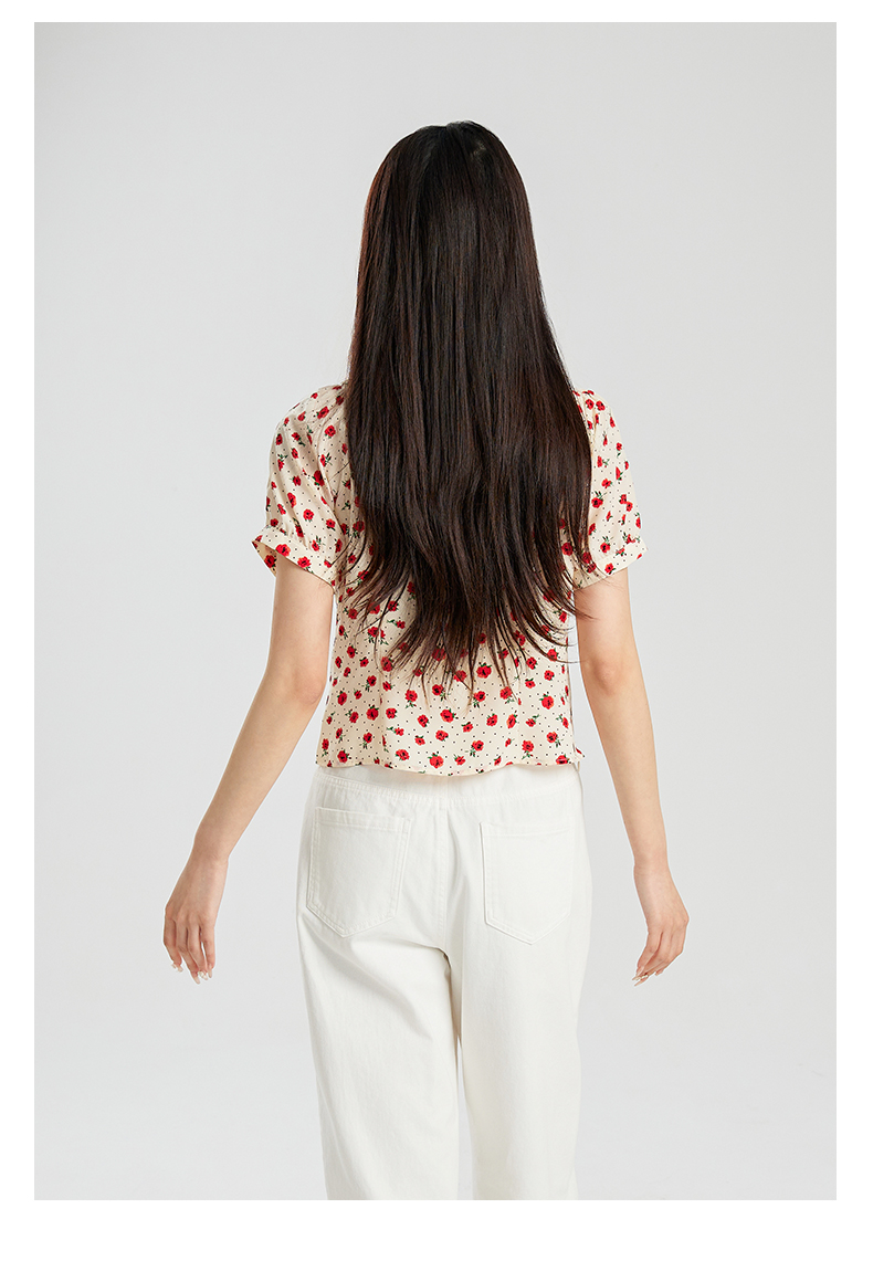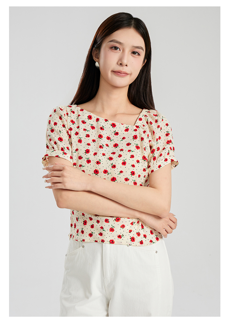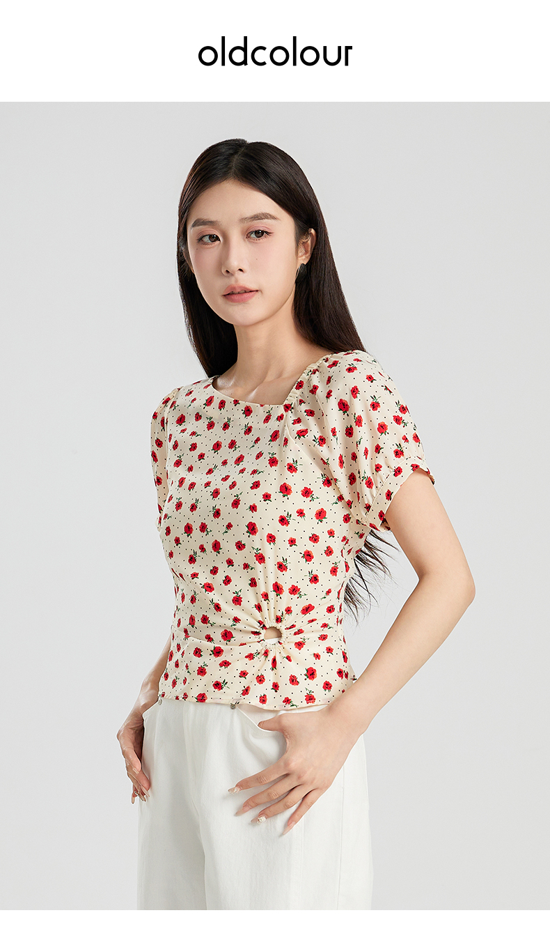 oldcolour夏季新款设计感气质收腰短袖套头碎花衬衫女Q280106A1